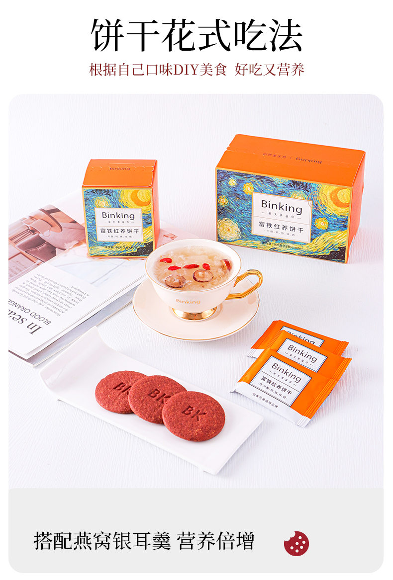 【中国农业大学刘萍教授研发】Binking富铁红养饼干+海藻燕窝银耳羹 营养早餐