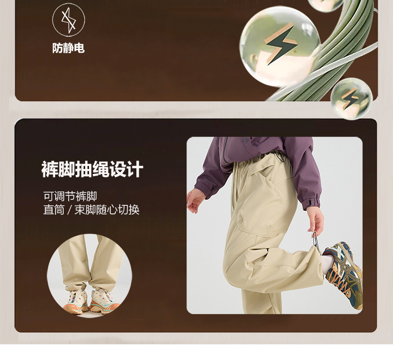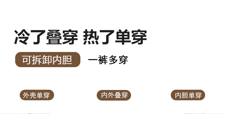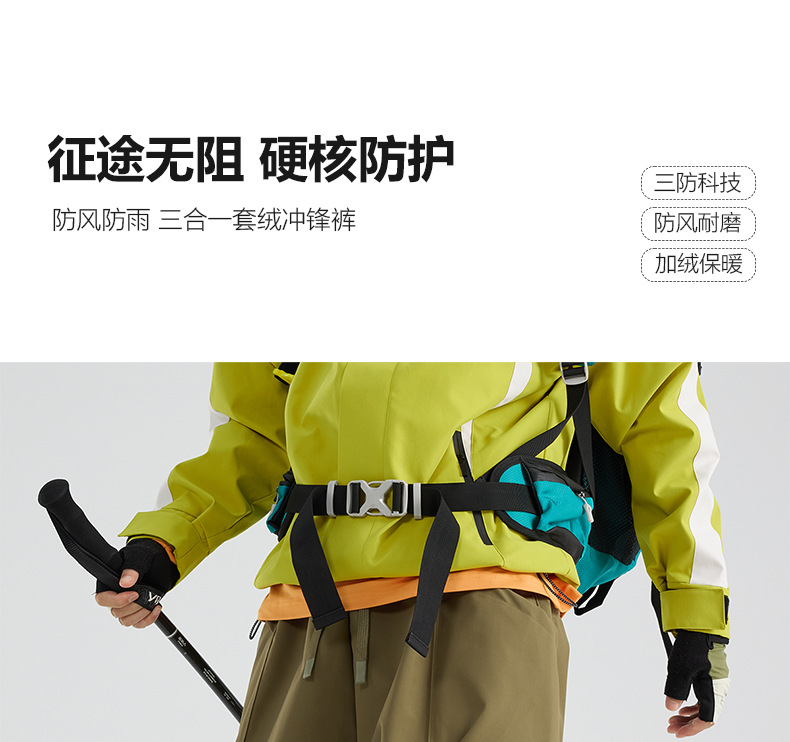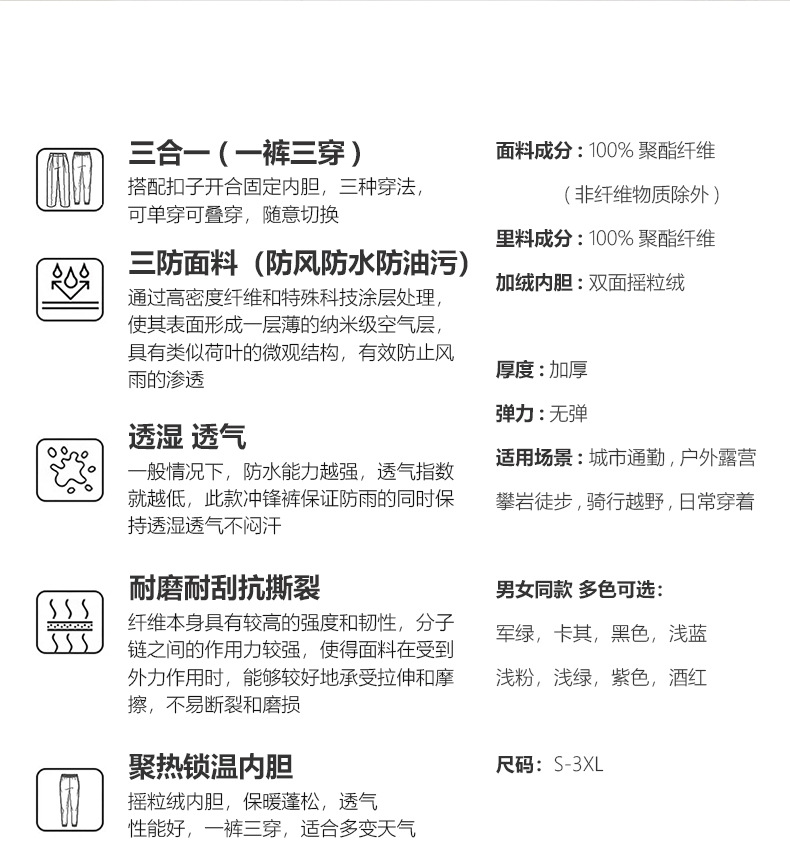 雀说户外冲锋裤女三合一抓绒内胆可拆卸防风防水休闲裤保暖裤子AL25179