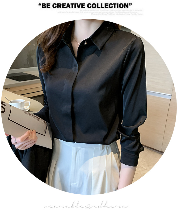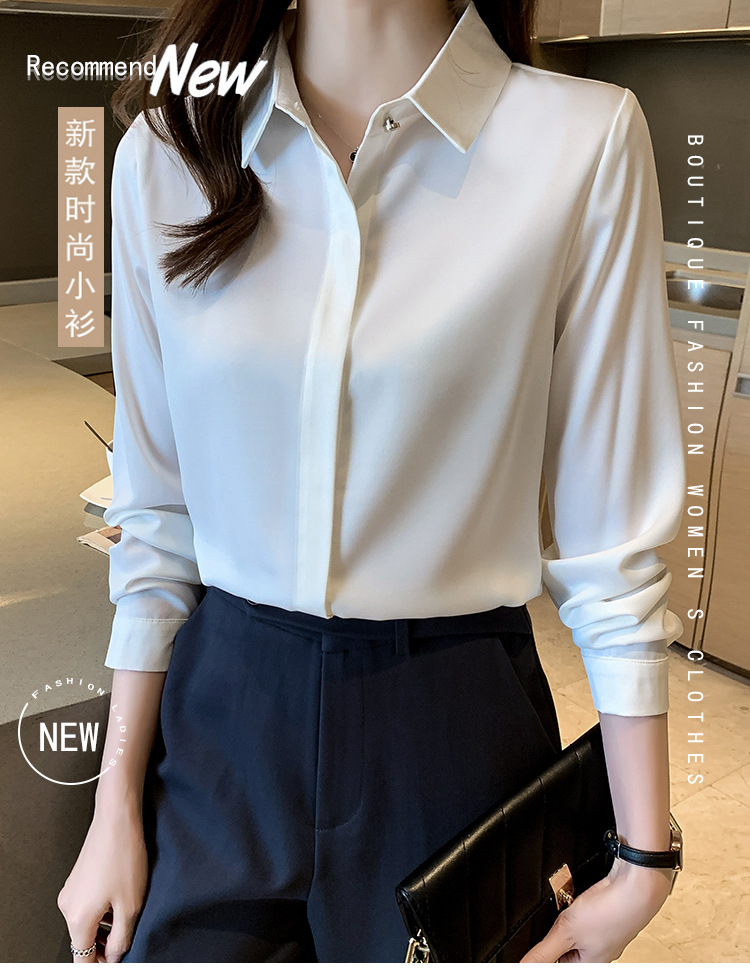 设计感OL职业,长袖洋气百搭上衣加绒加厚保暖仿真丝衬衫AYL-8226