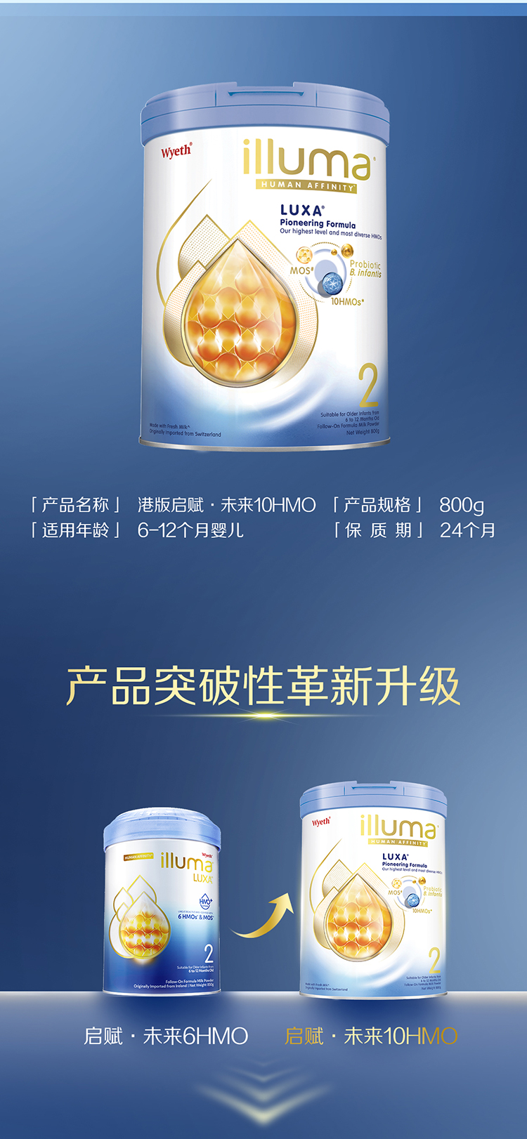 【不含税价跨境】Wyeth惠氏启赋未来10HMO婴幼儿配方奶粉2段6-12月800g