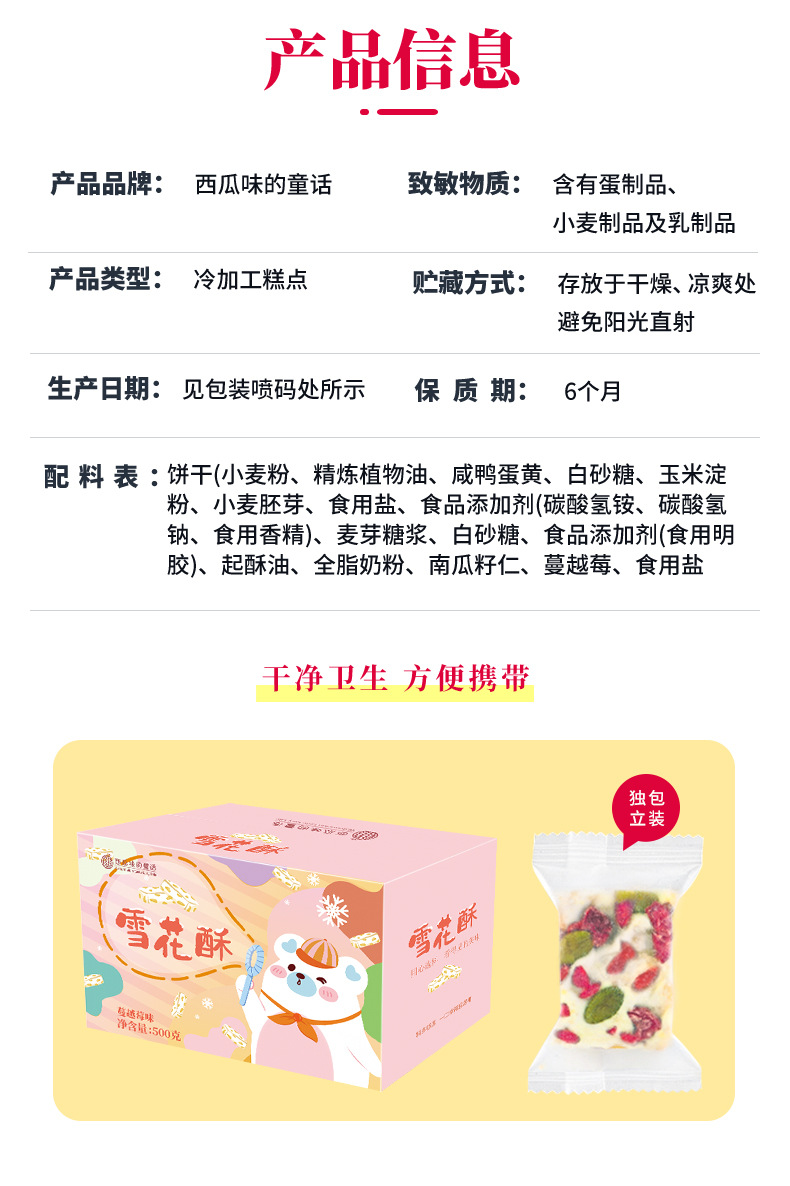 【XG味道】网红零食 蔓越莓雪花酥 多口味手工糕点休闲零食