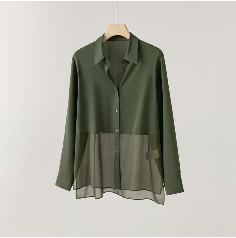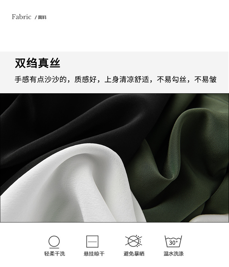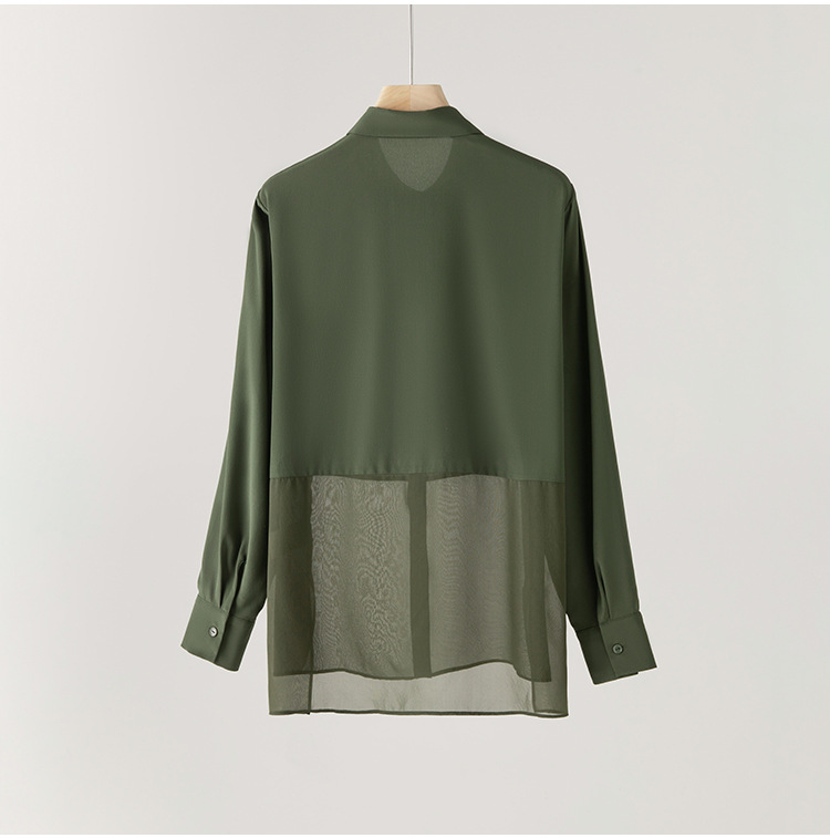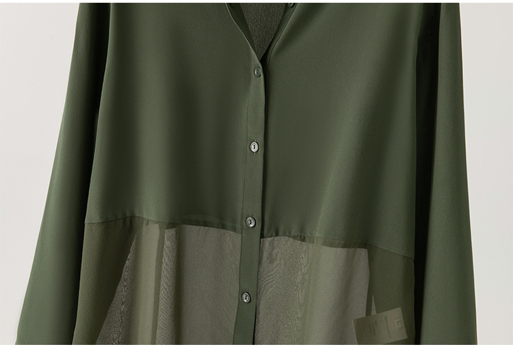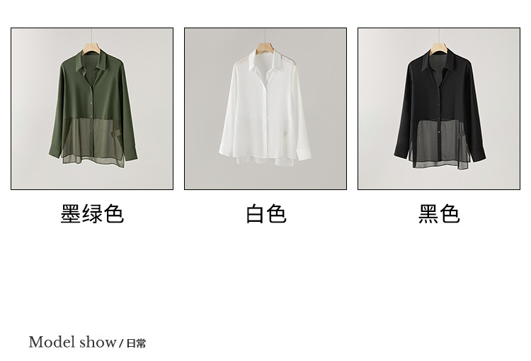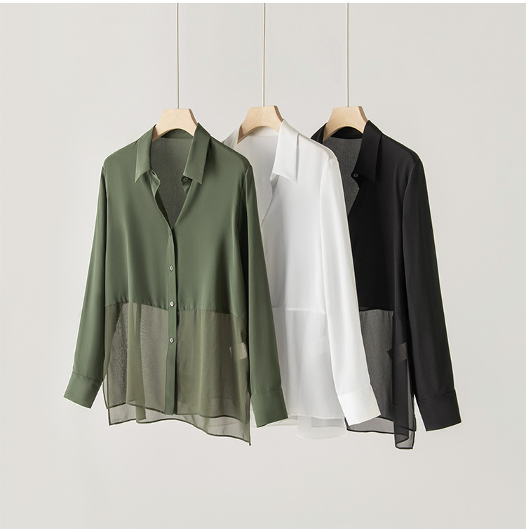 丁摩设计感长袖真丝衬衫女新品拼接防晒衬衣通勤桑蚕丝方领上衣AL1000606