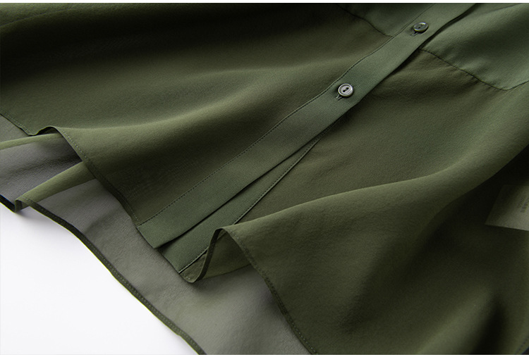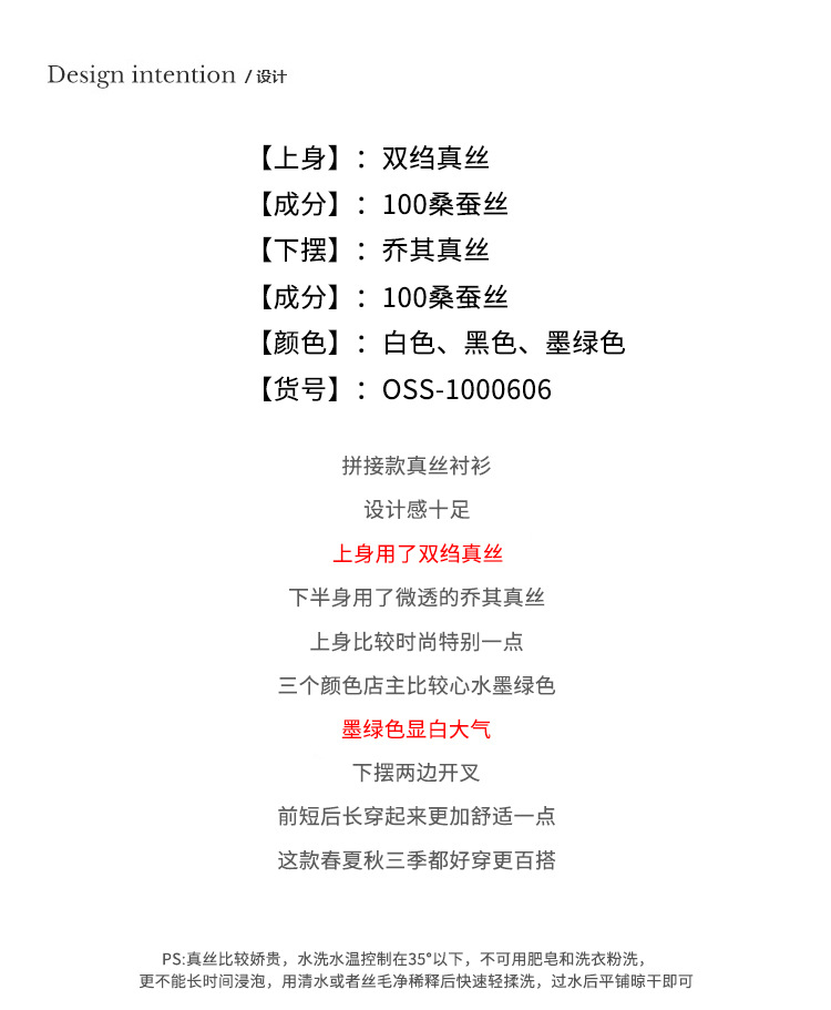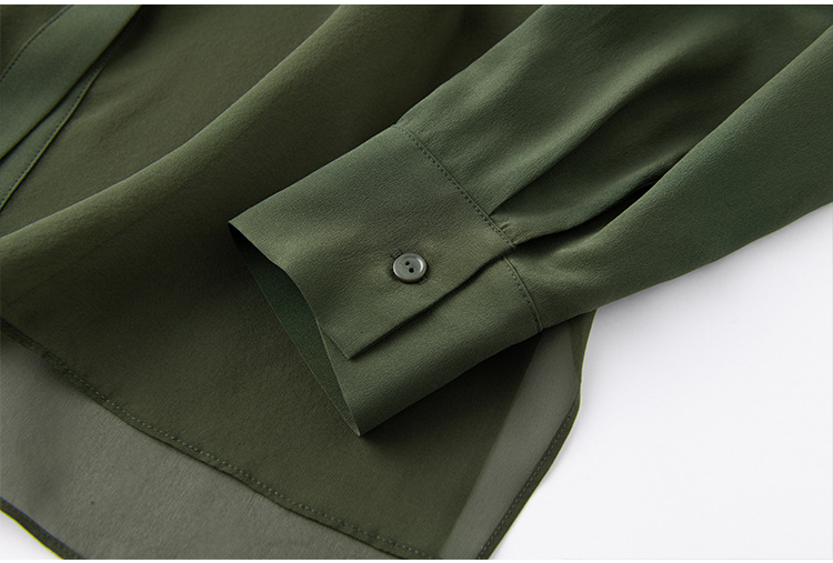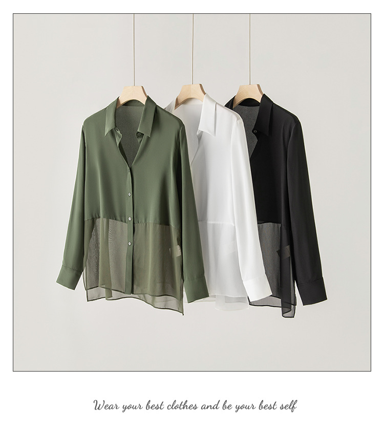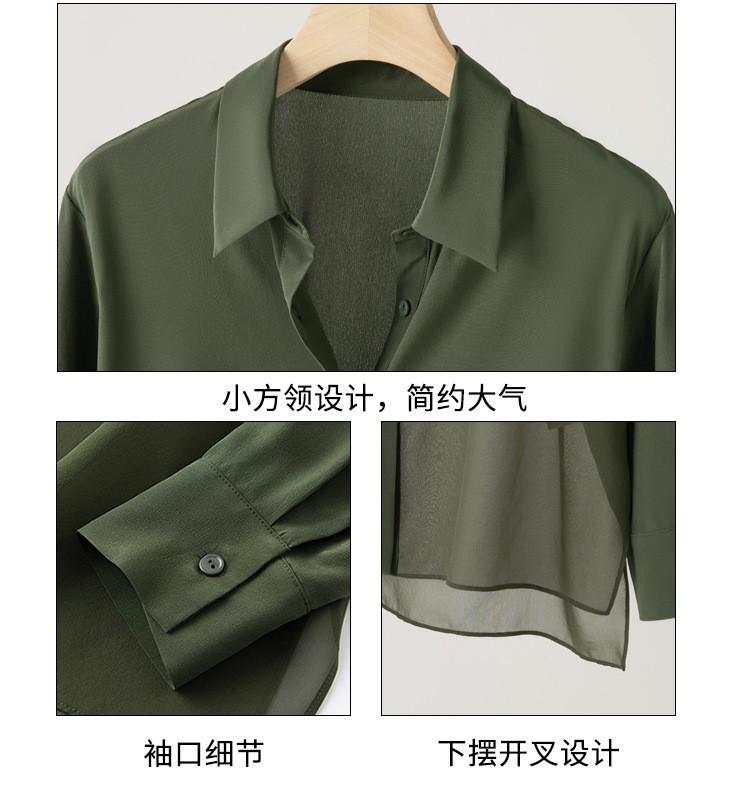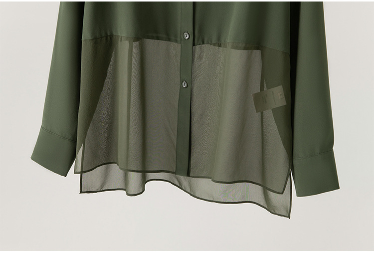 丁摩设计感长袖真丝衬衫女新品拼接防晒衬衣通勤桑蚕丝方领上衣AL1000606