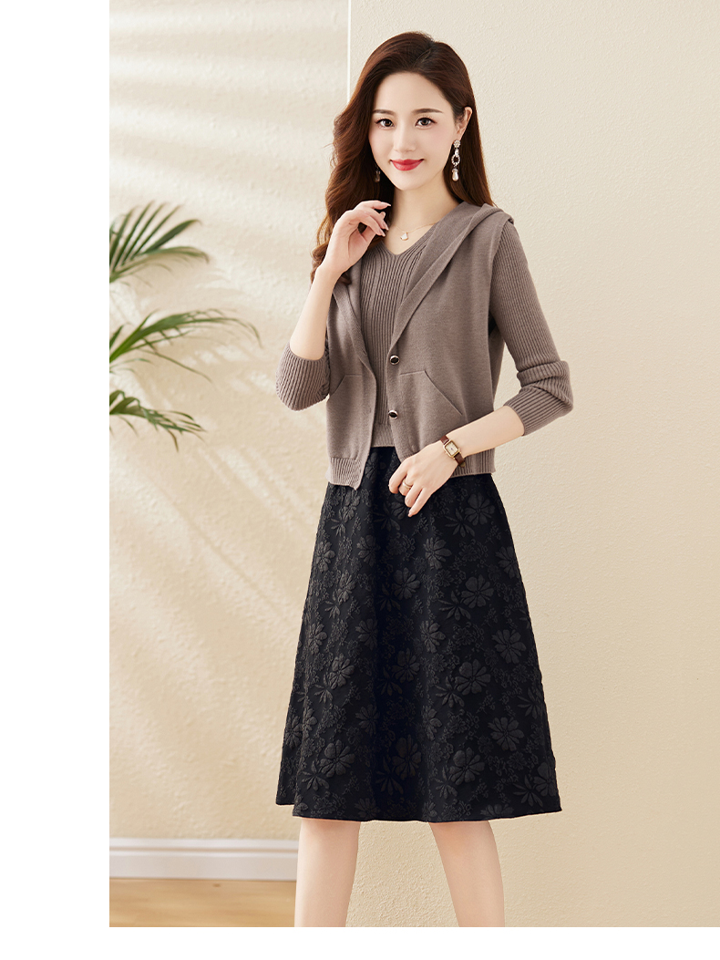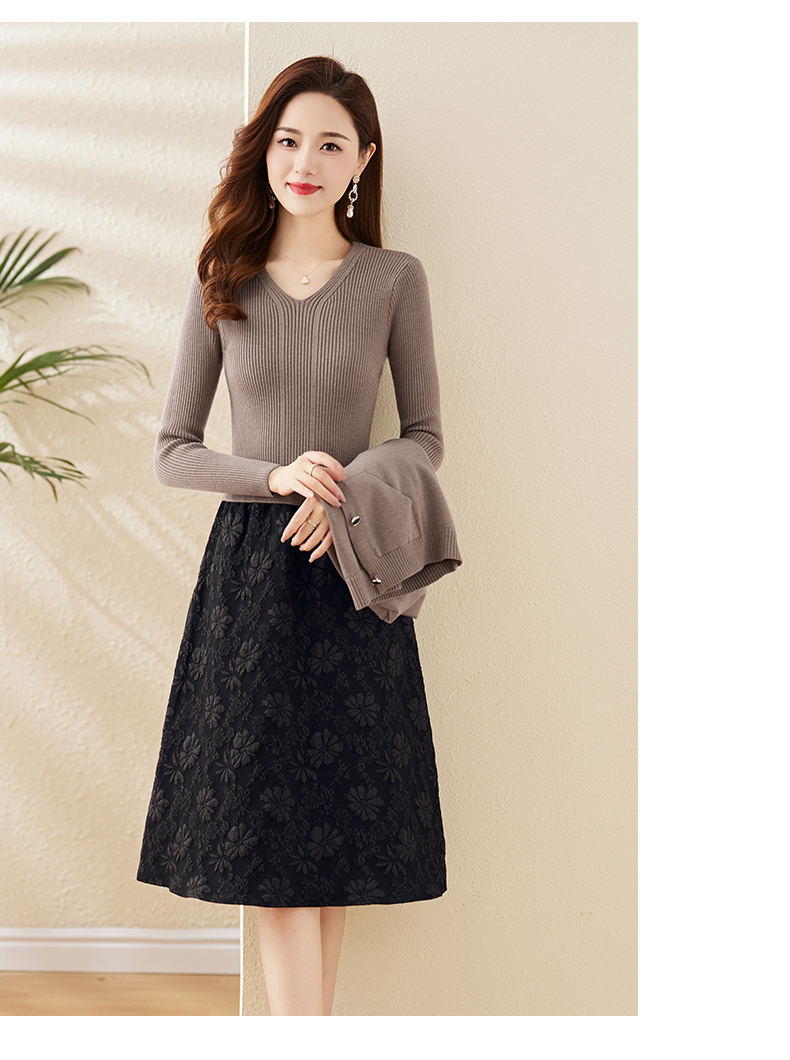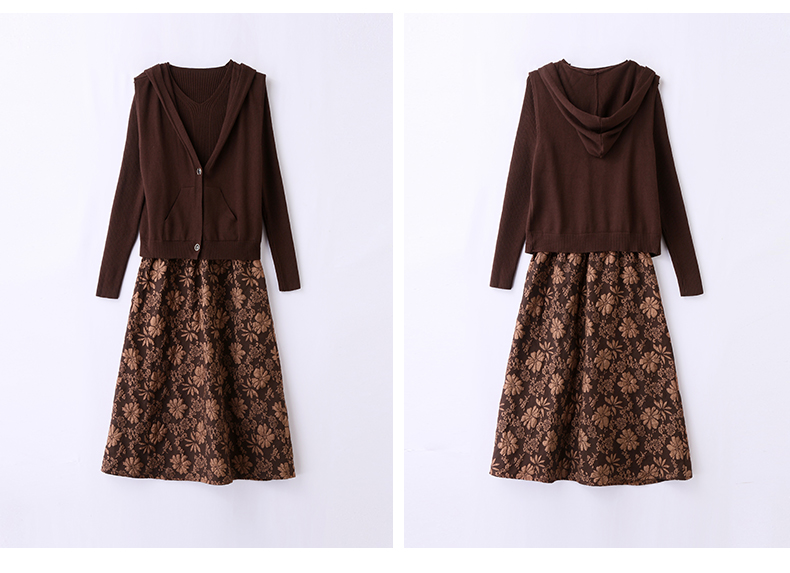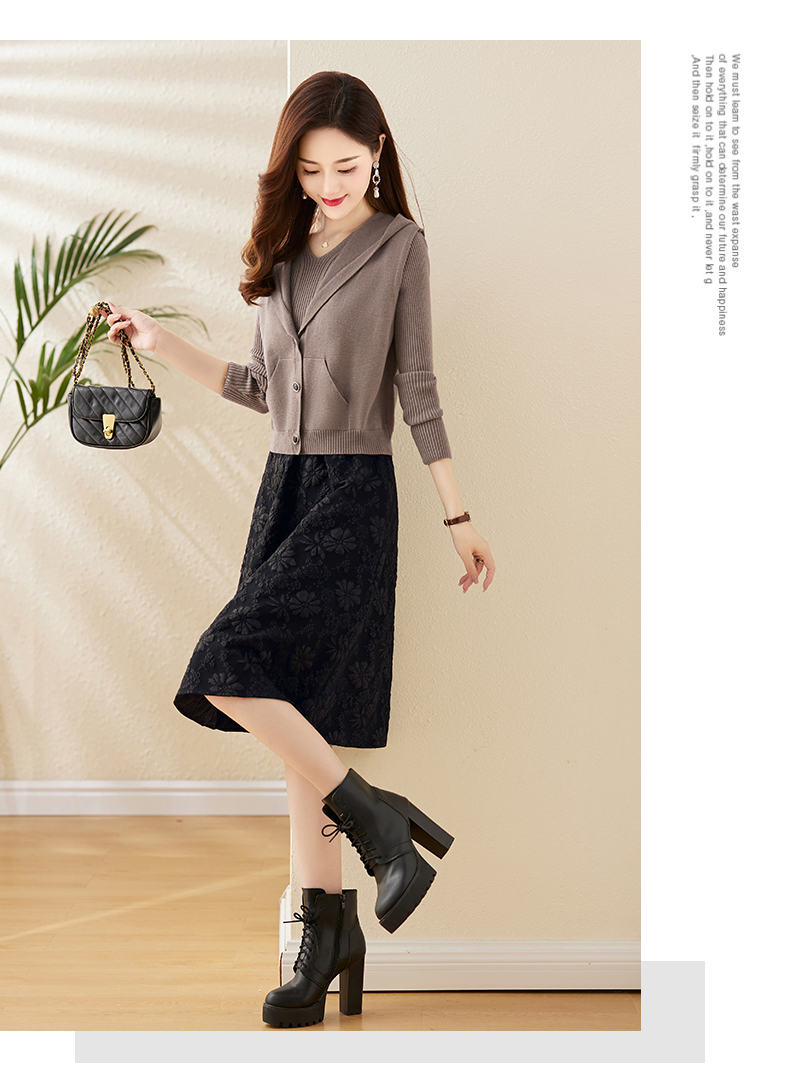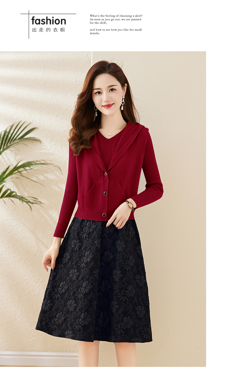 时尚显瘦立体提花,拼接针织两件套连衣裙HR-YBER336