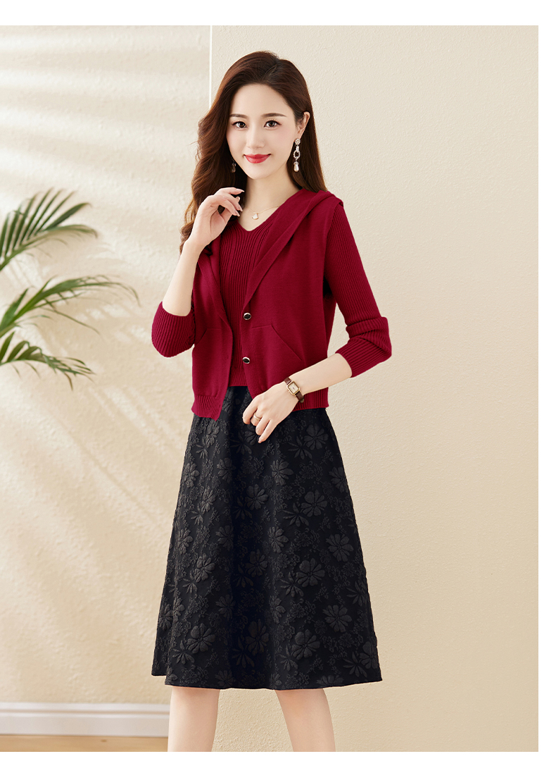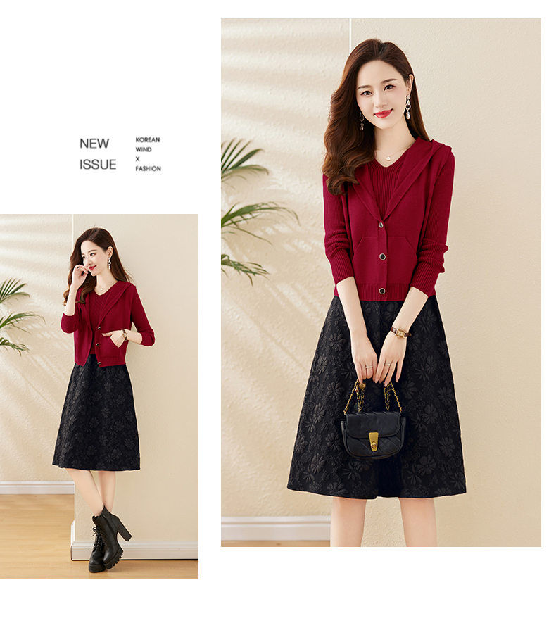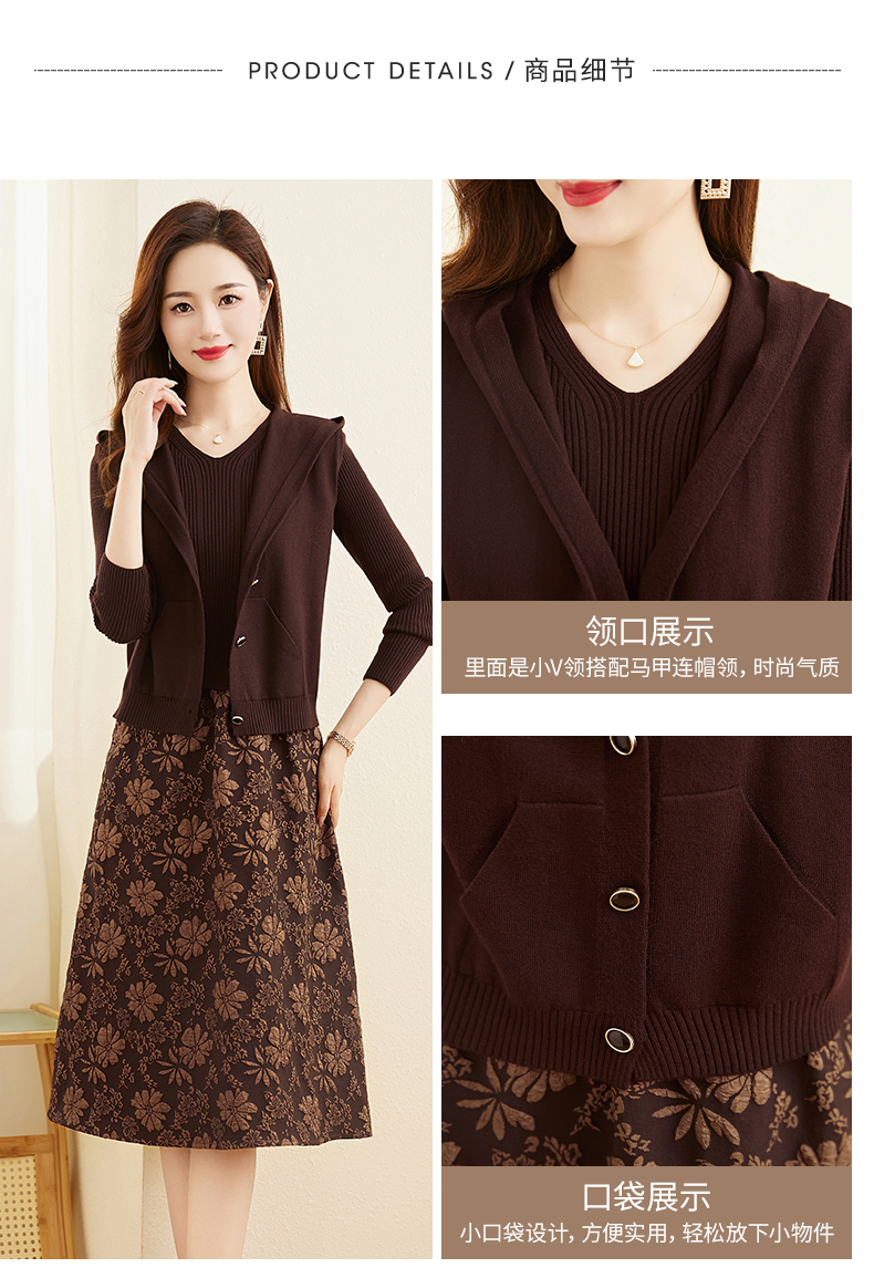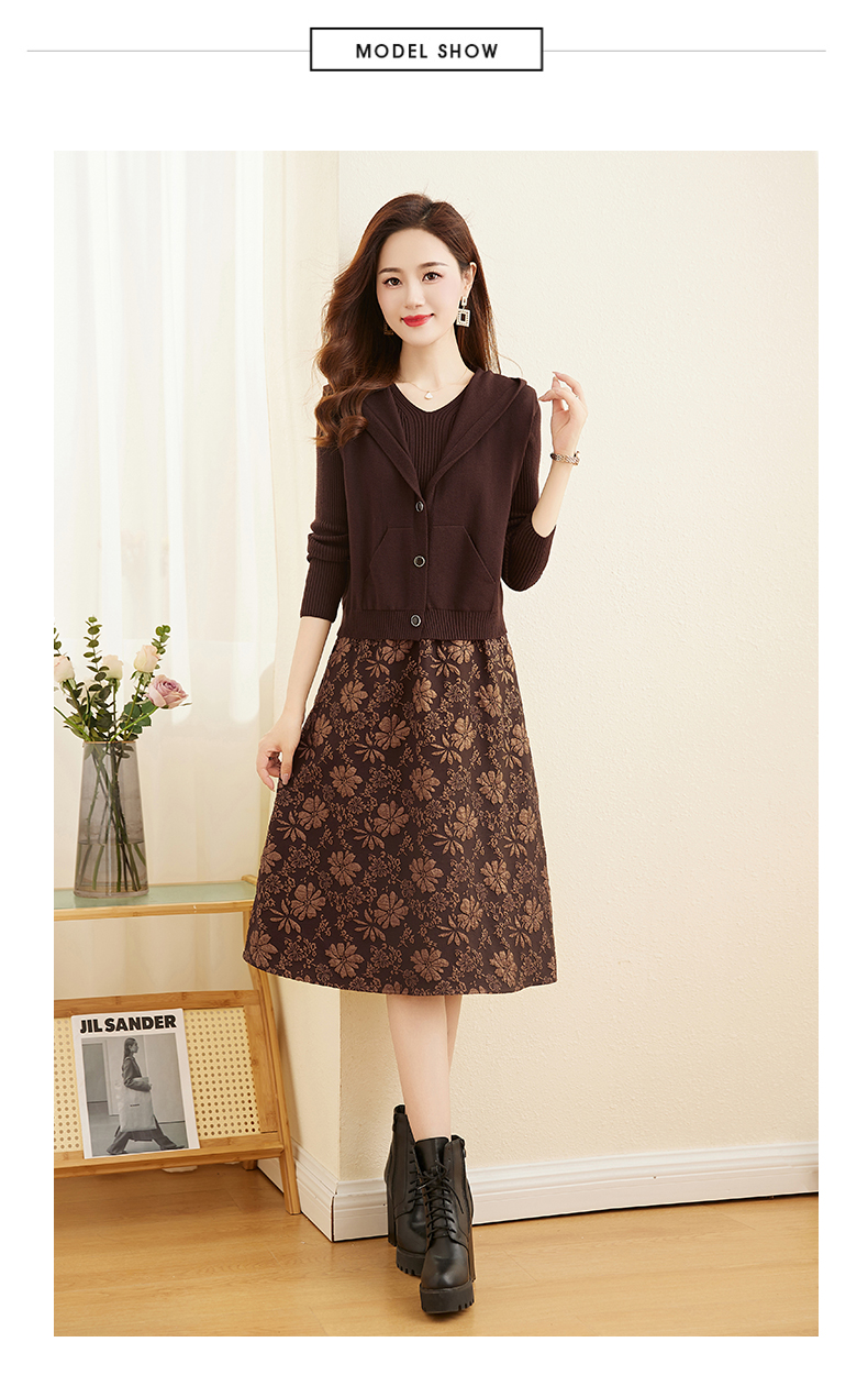 时尚显瘦立体提花,拼接针织两件套连衣裙HR-YBER336