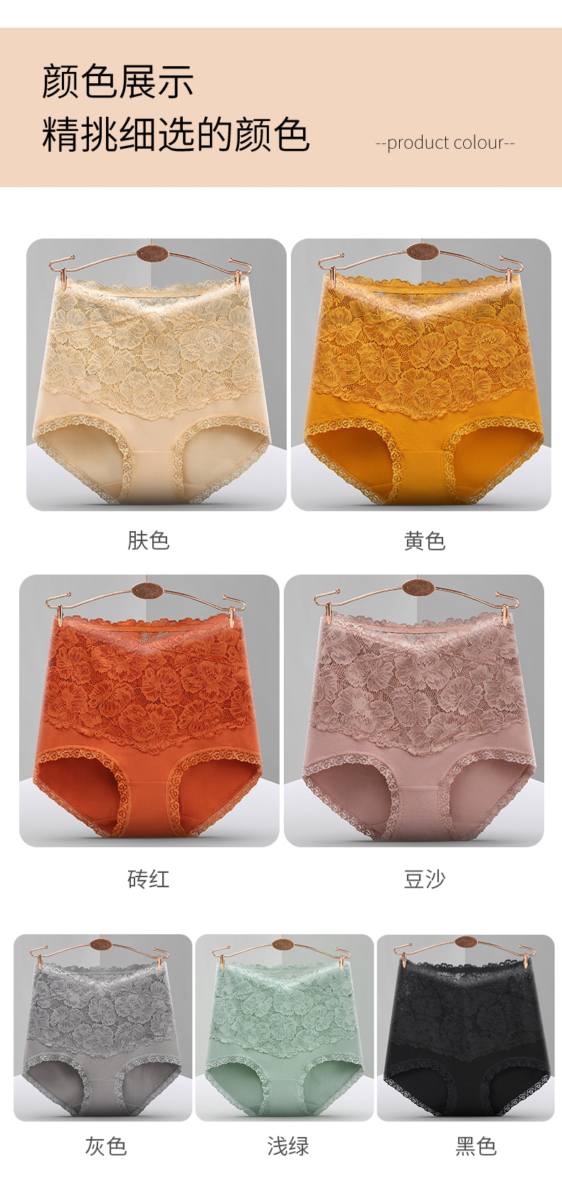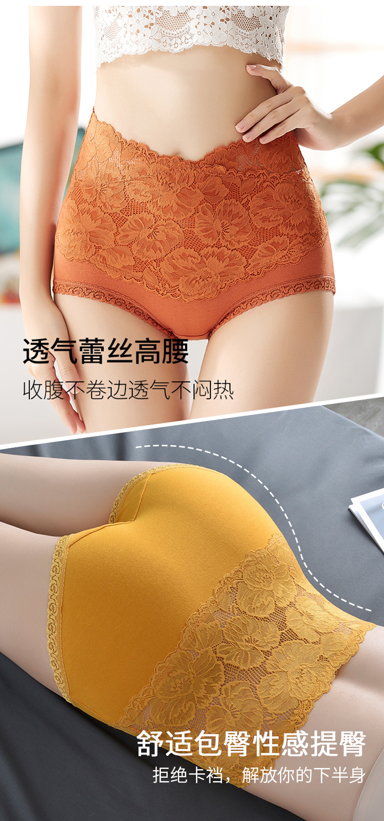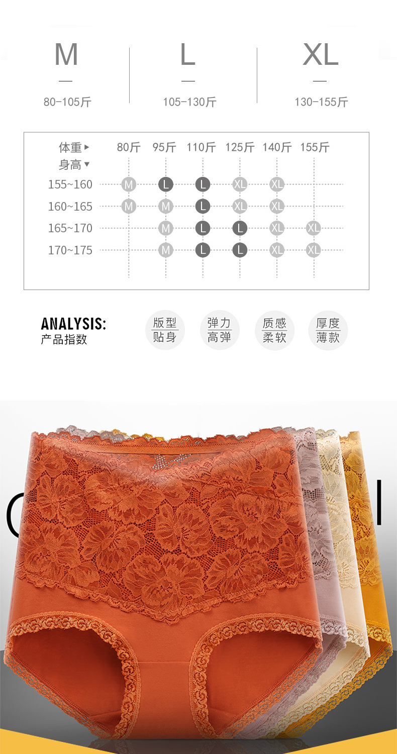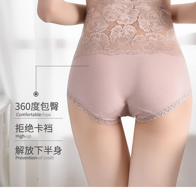【蕾丝收腹抑jun提臀内裤4条装】高腰收腹 蕾丝花边 舒适无痕 纯色精致 大小码可选