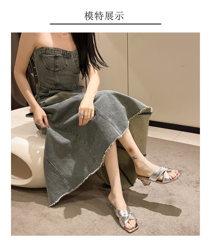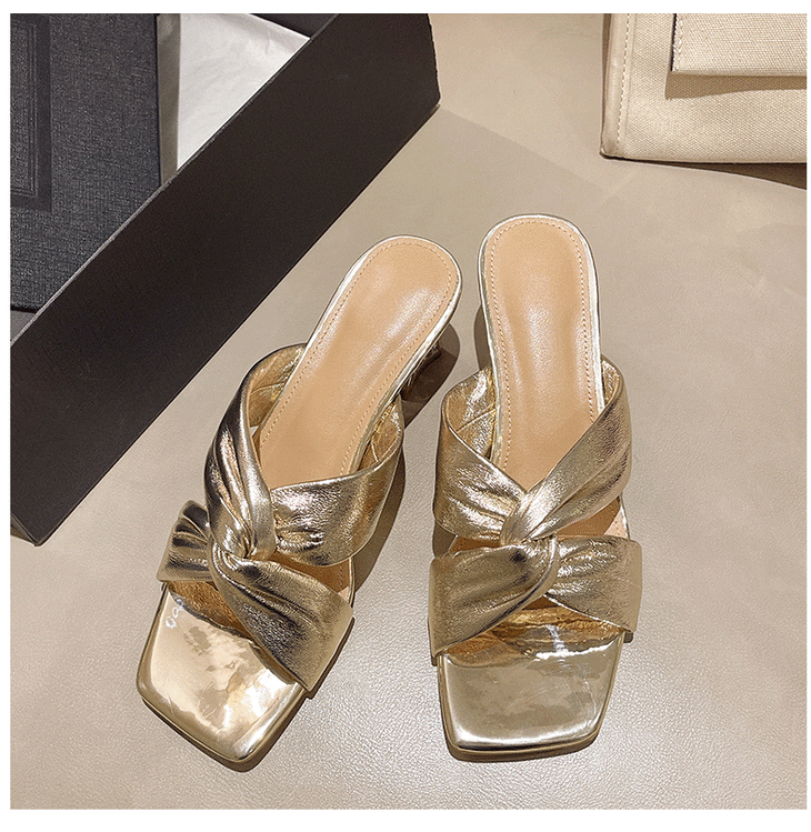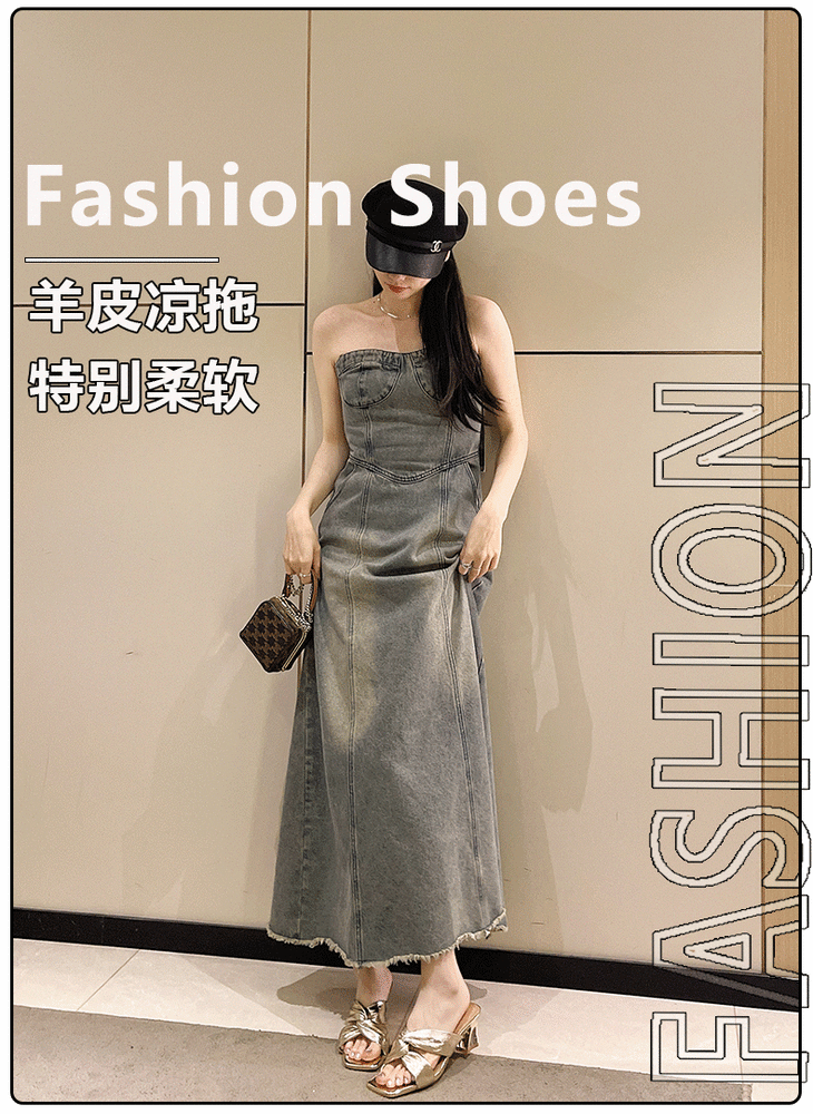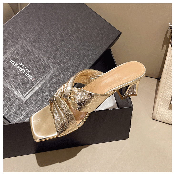 交叉带头层羊皮高跟凉拖鞋舒适柔软MB985