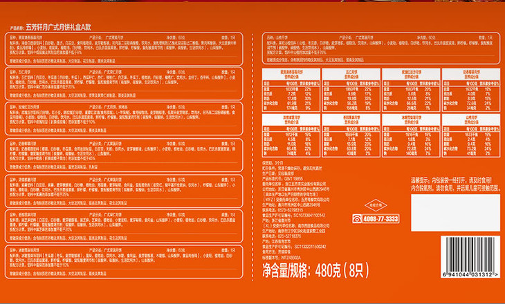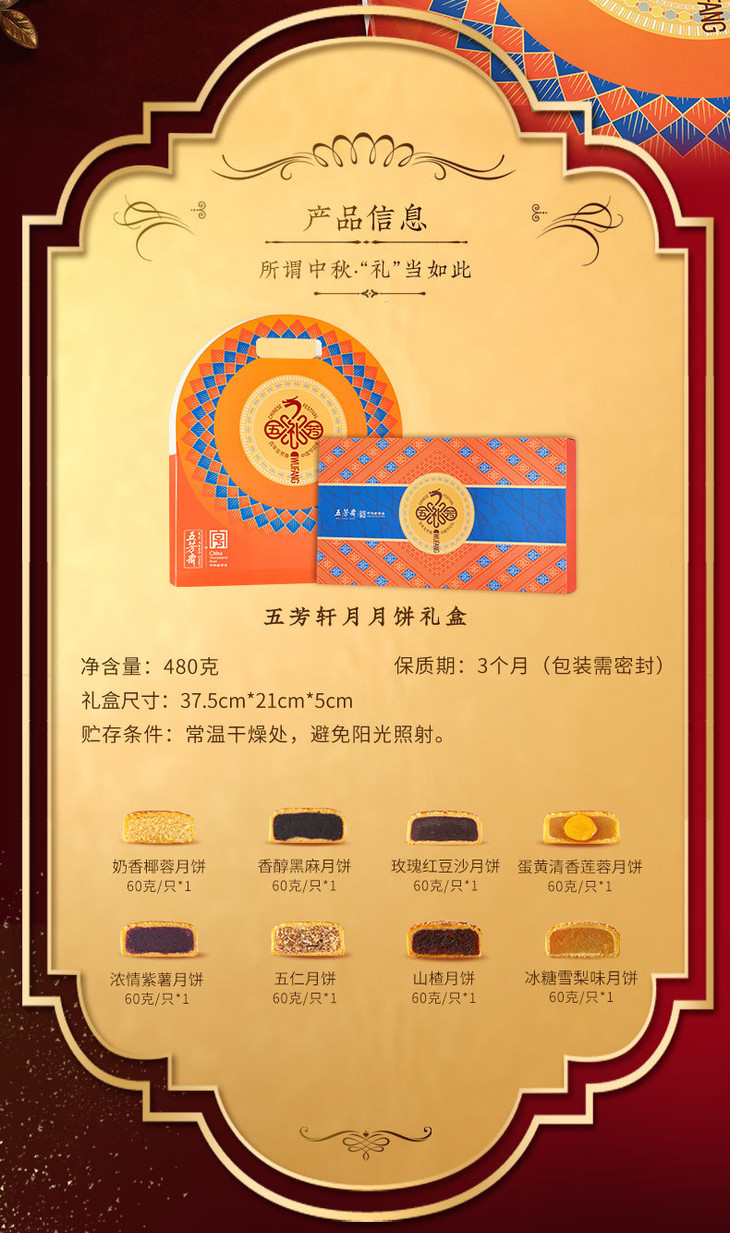 五芳斋【8饼8味480g】五芳轩月广式月饼礼盒 蛋黄莲蓉五仁黑芝麻广式月饼中秋送礼