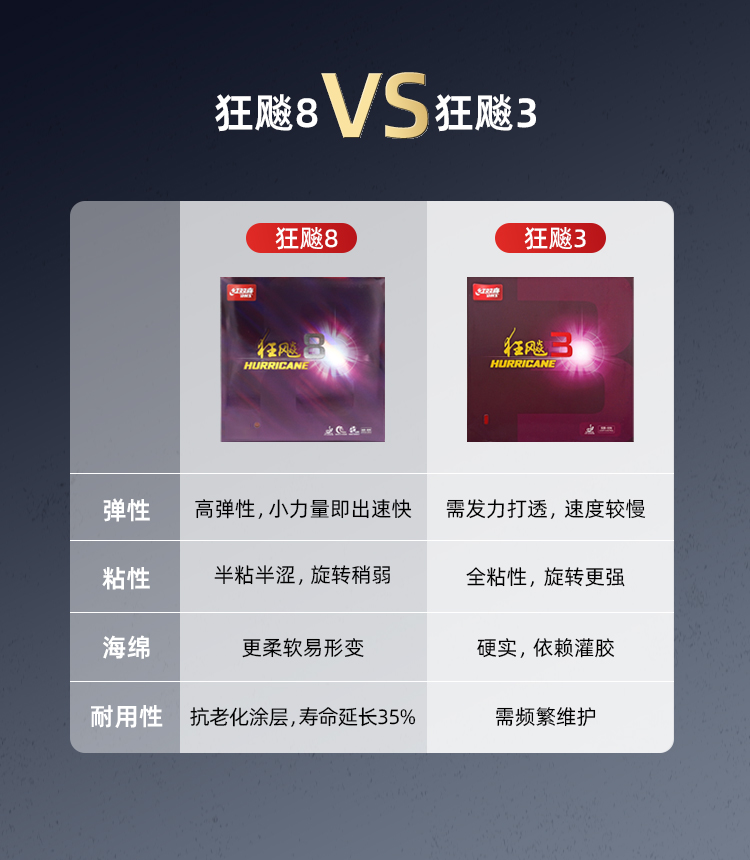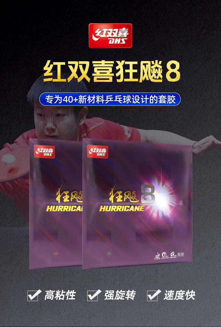 DHS红双喜狂飚8乒乓球胶皮狂飙8狂八粘性反胶乒乓球拍套胶