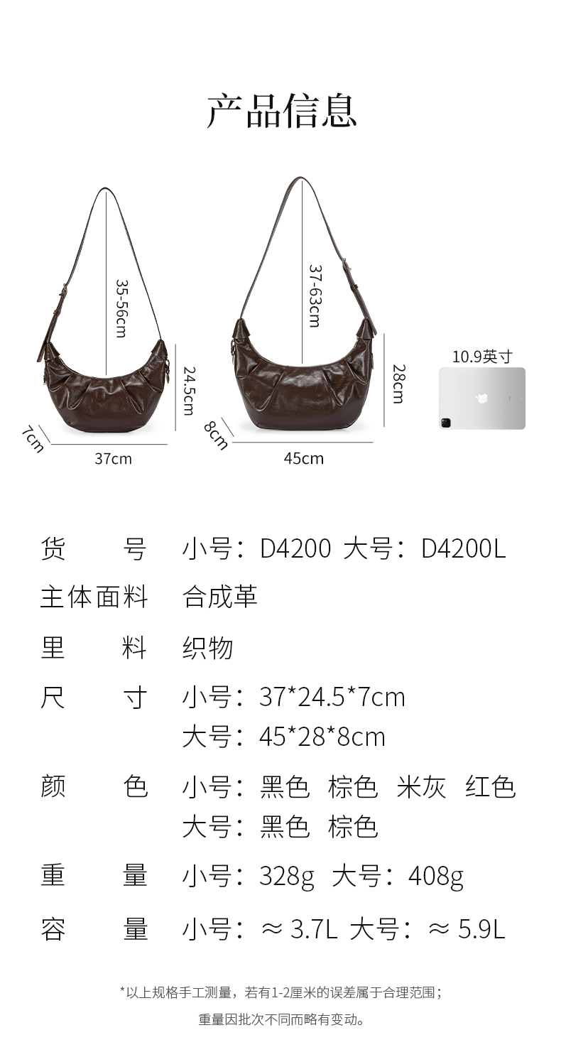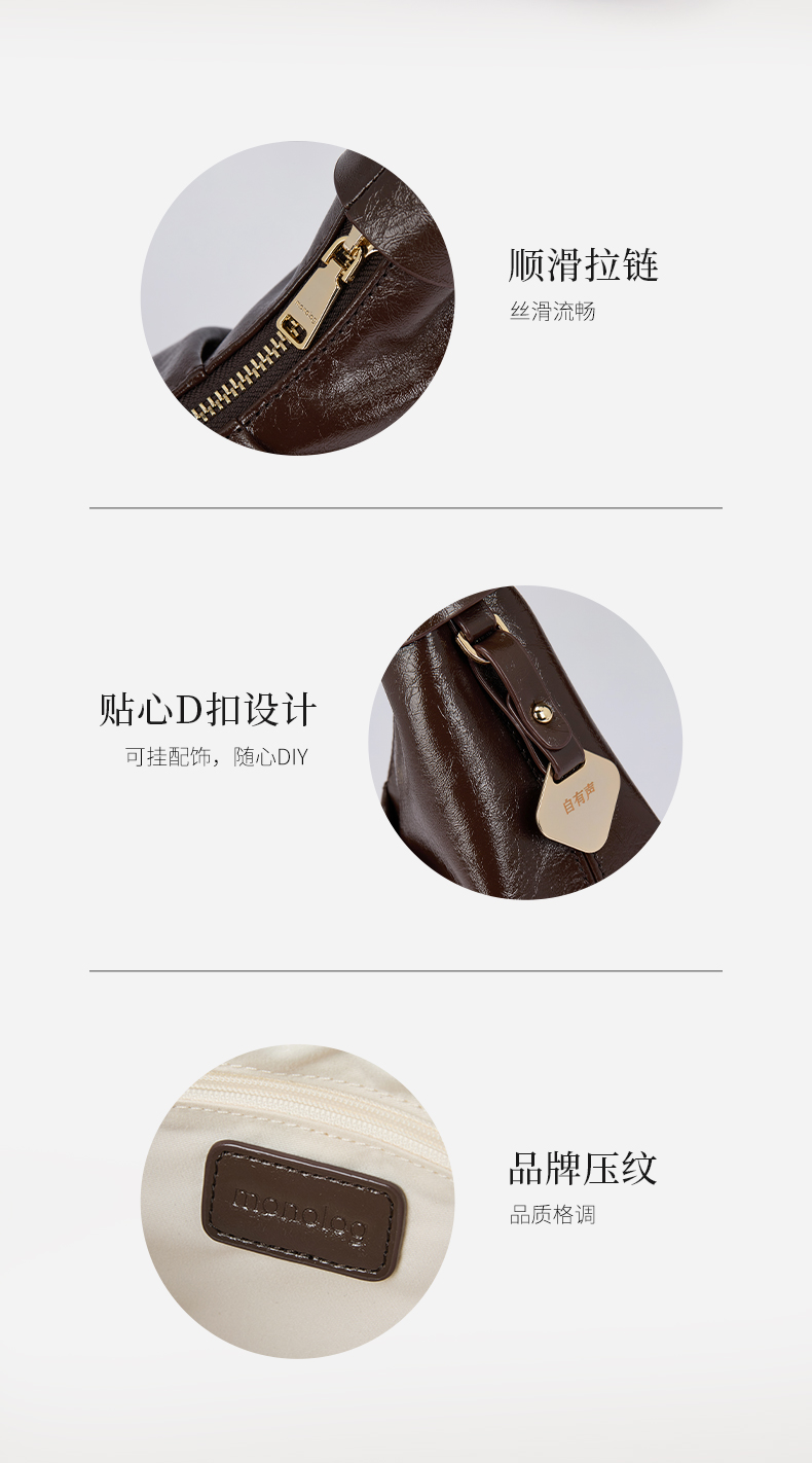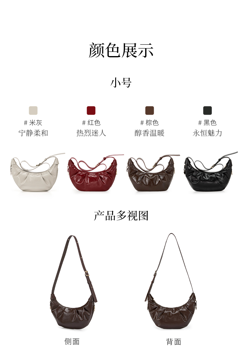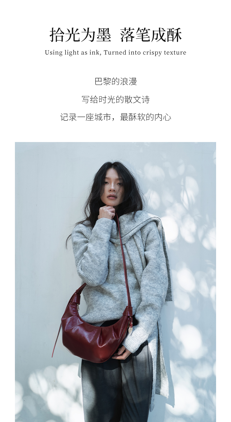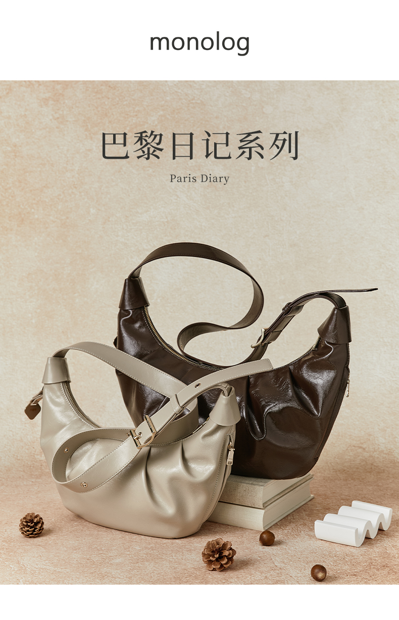【新品首发】独白巴黎日记牛角包时尚油蜡皮单肩斜挎女包D4200/L