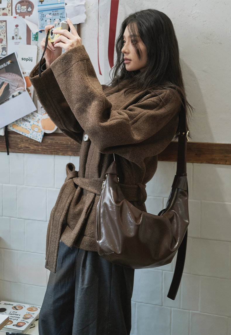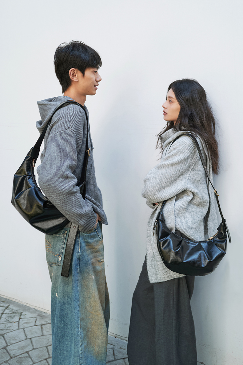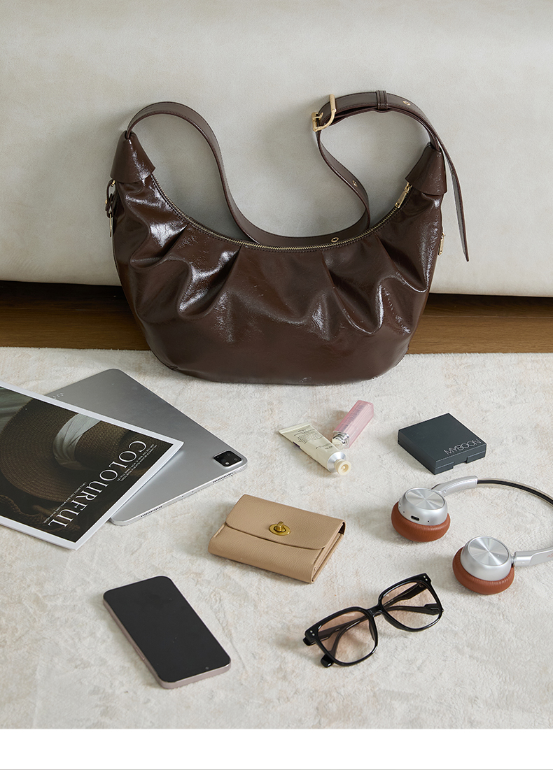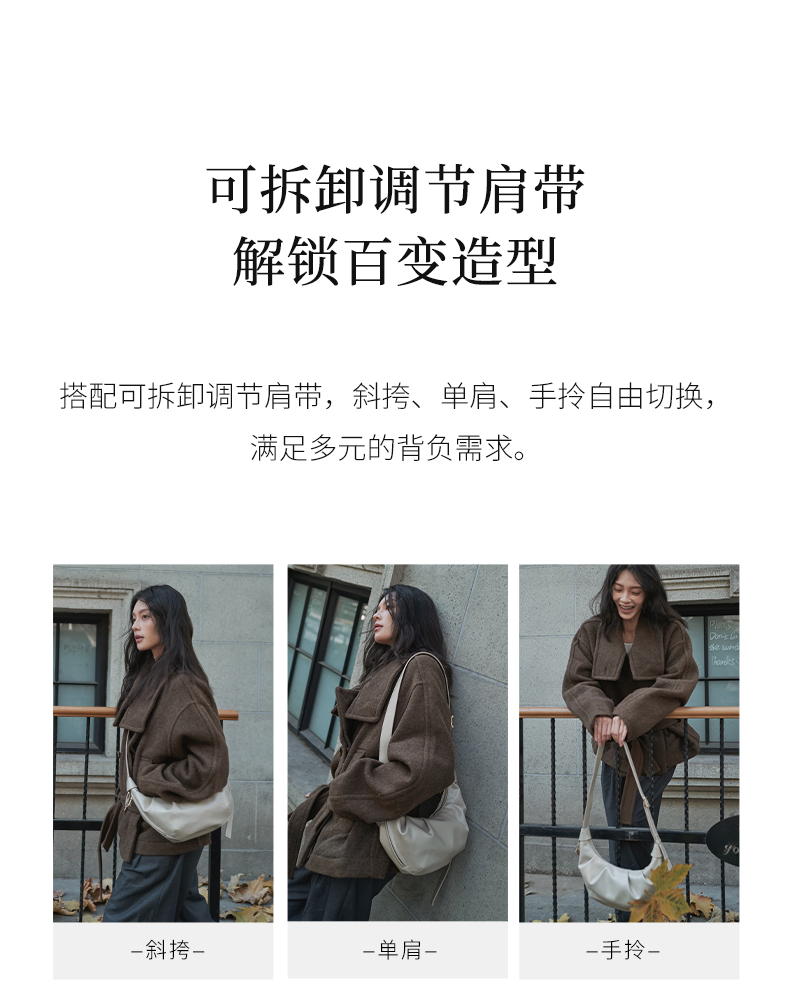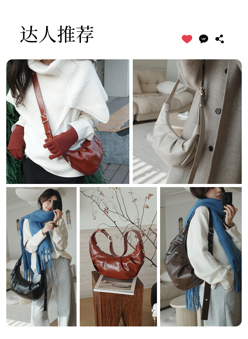 【新品首发】独白巴黎日记牛角包时尚油蜡皮单肩斜挎女包D4200/L