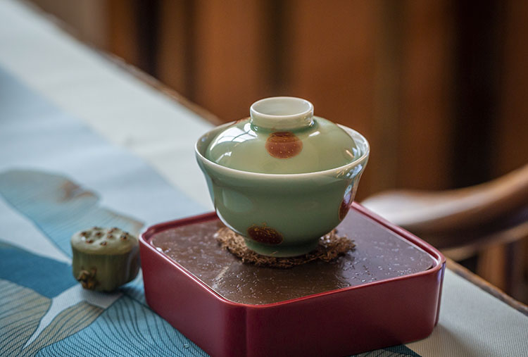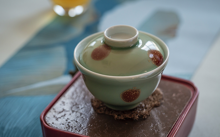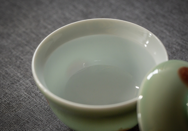 这也使得这款手绘盖碗的釉水尤为均匀和干净,