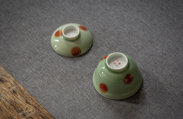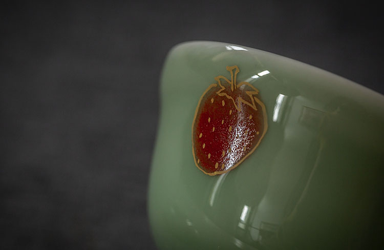 草莓款则在杯壁点釉,任釉水自然滴垂挂下,