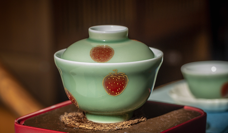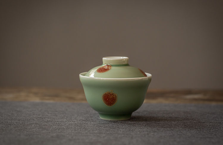 远远望去,好一个娇俏可爱的草莓盖碗。