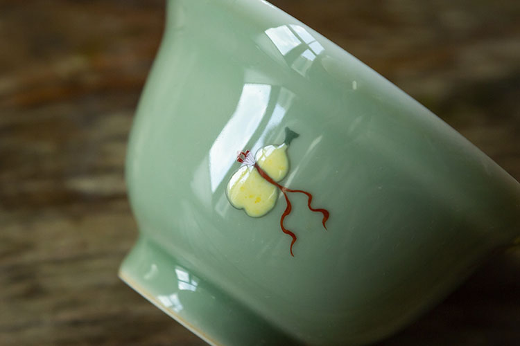 于杯壁上绘有鲜艳憨萌的葫芦。
