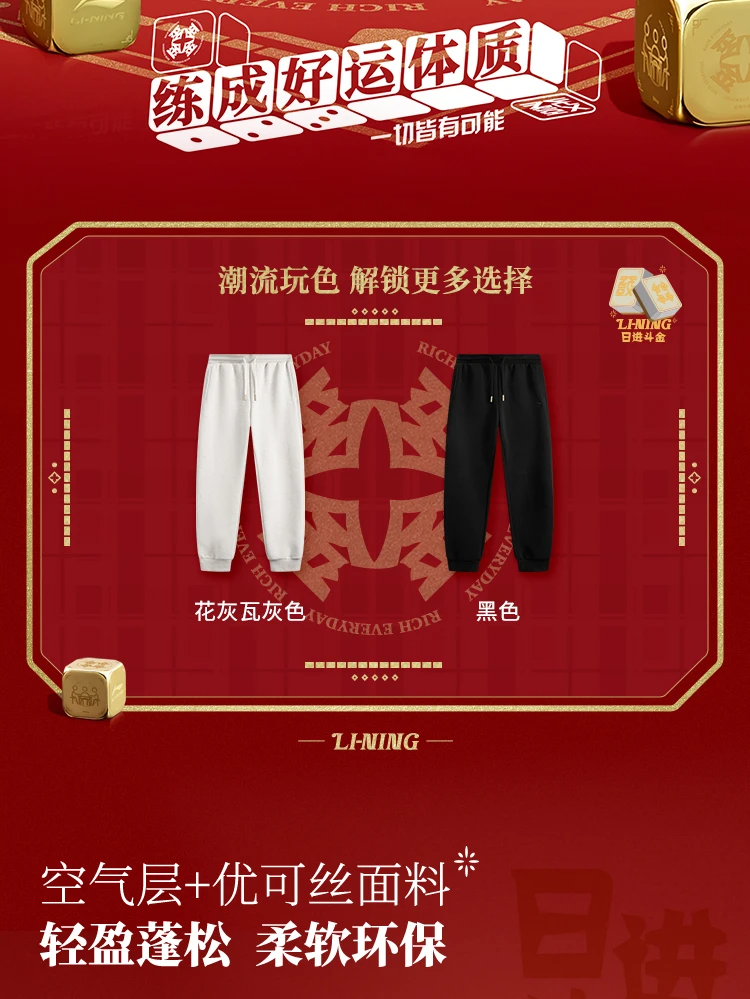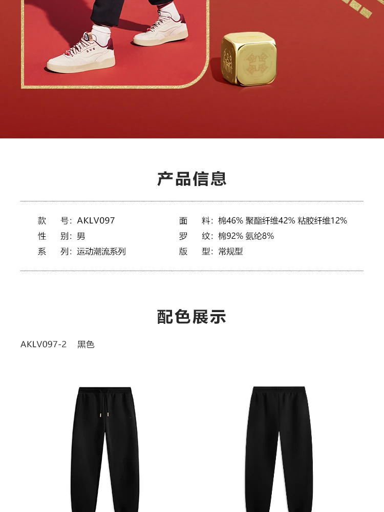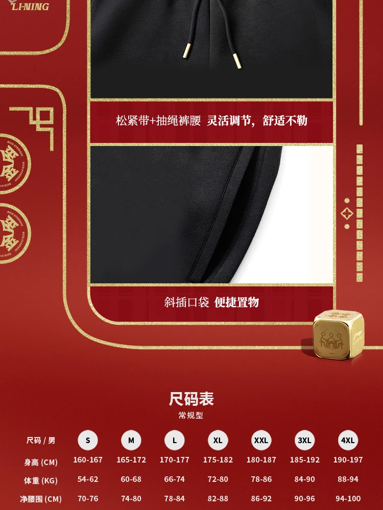 【抄底!299任选2件】李宁日进斗金系列男子束脚卫裤AKLV097