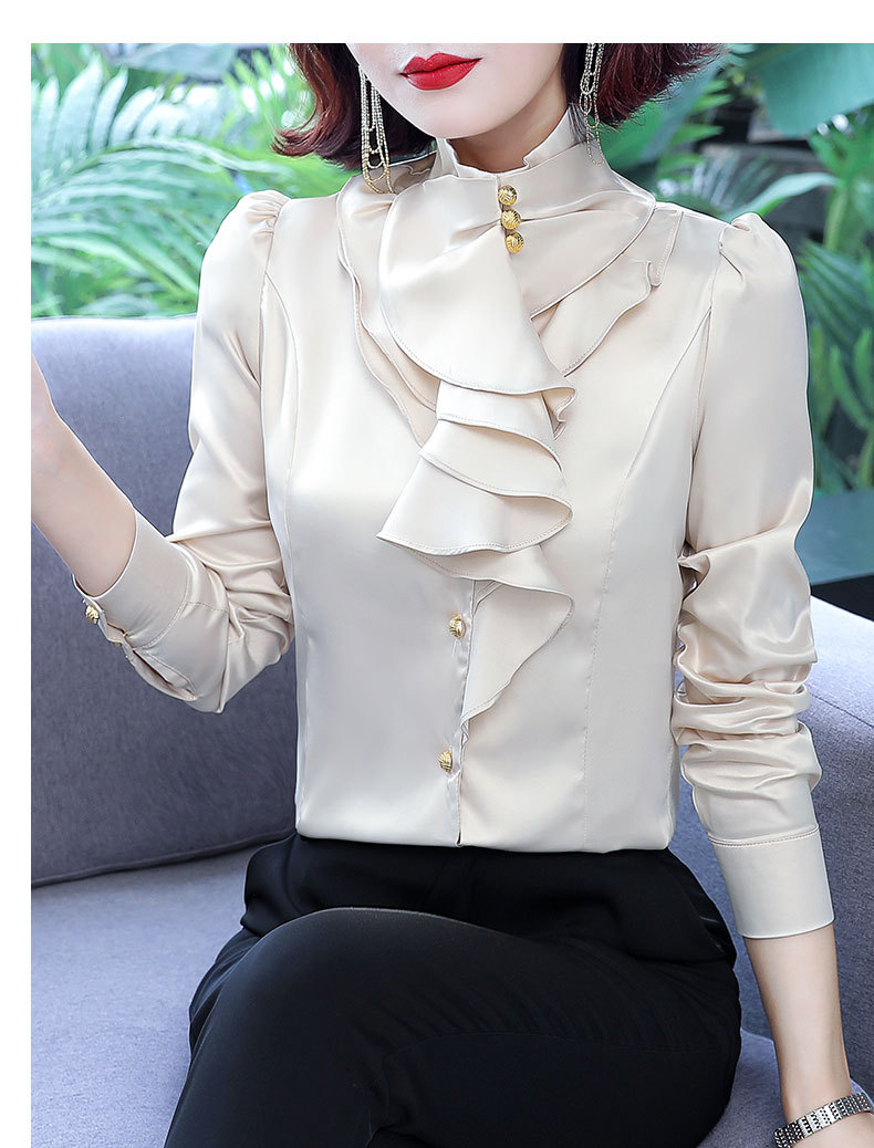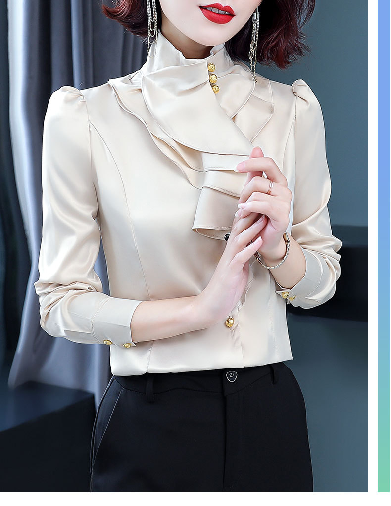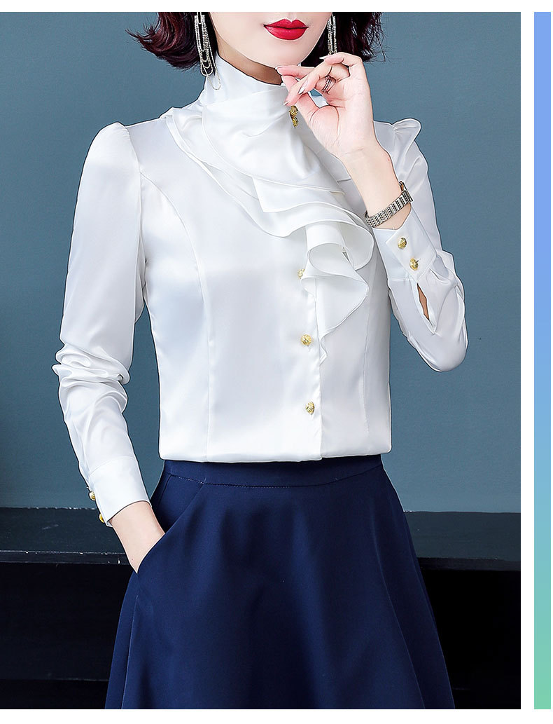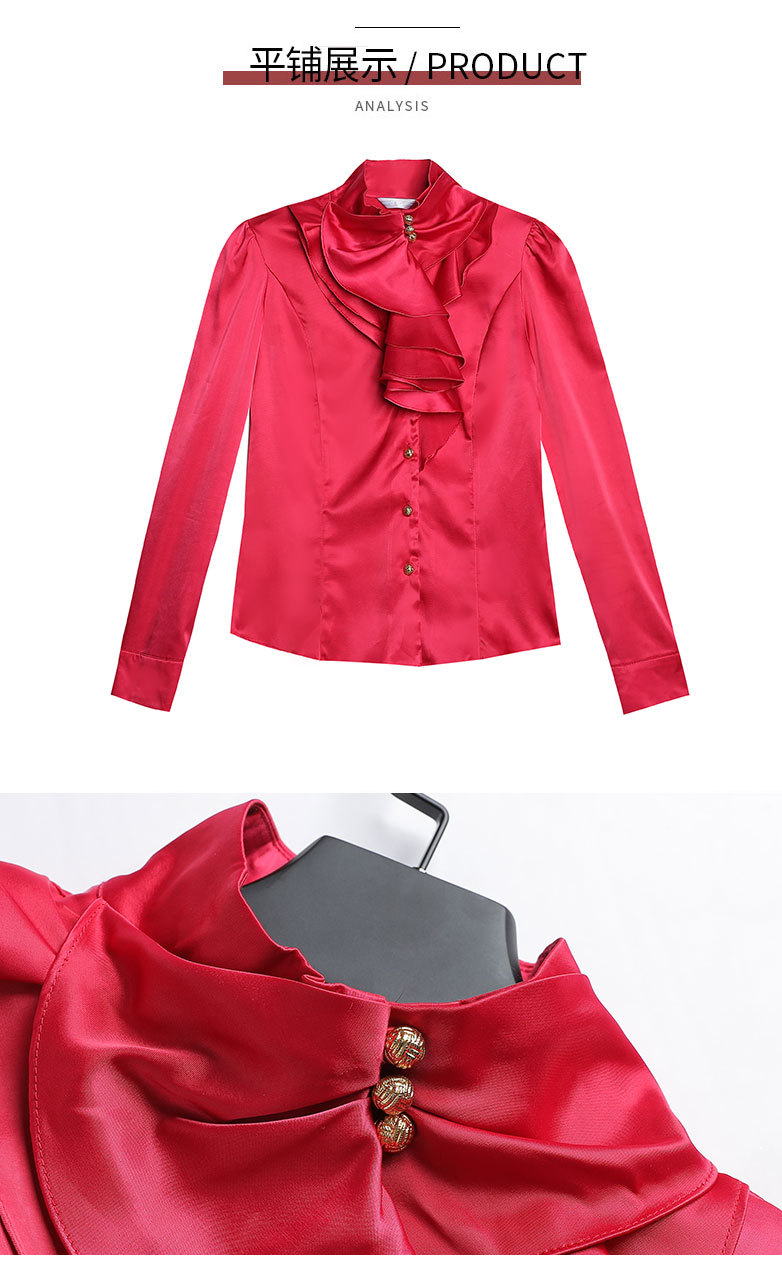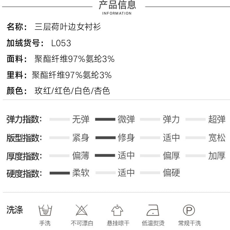 SQJ-L053秋冬女加绒保暖衬衫三层荷叶边优雅风纯色
