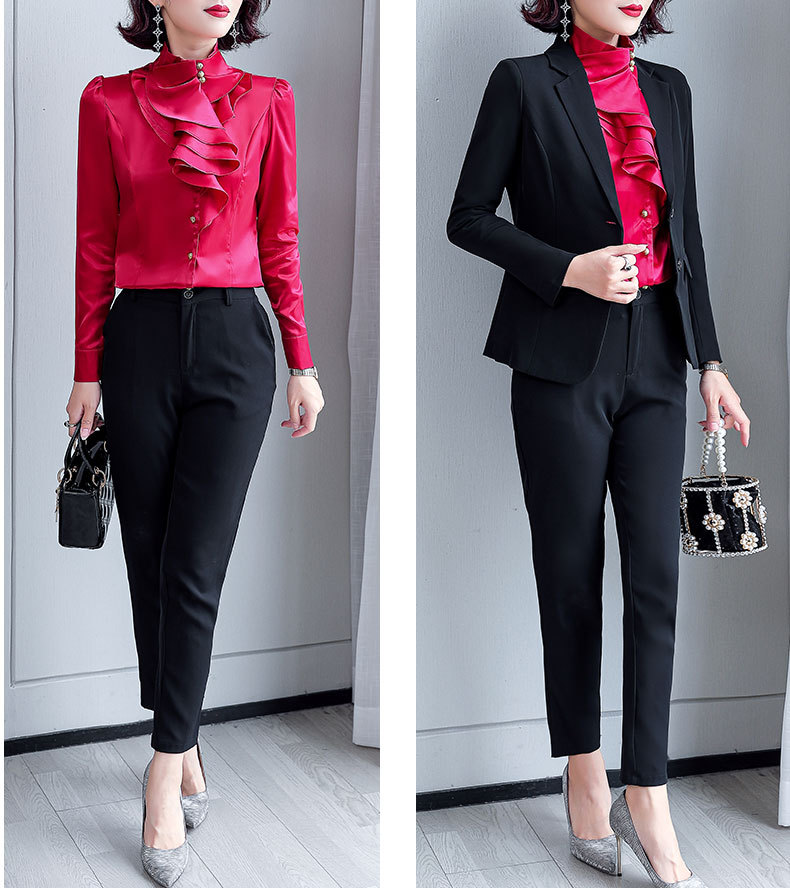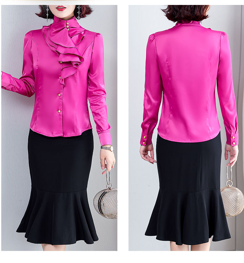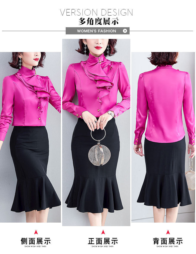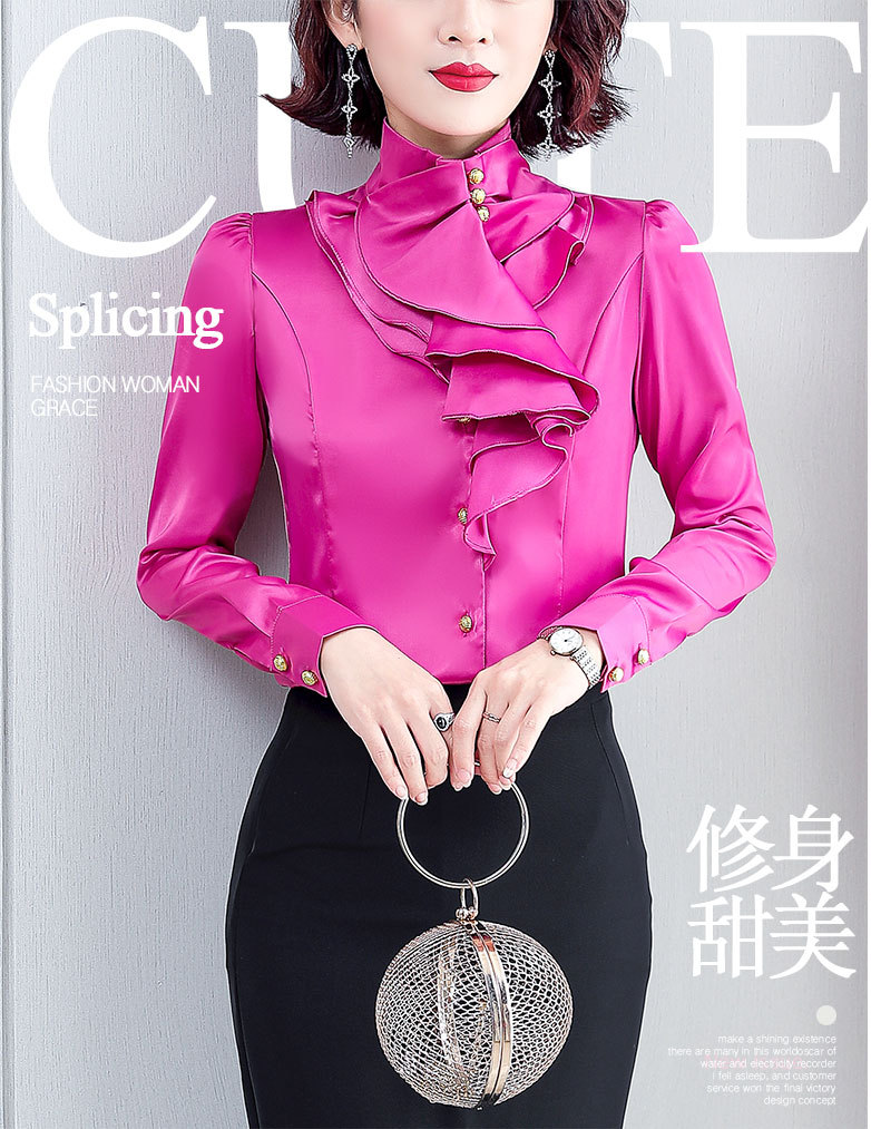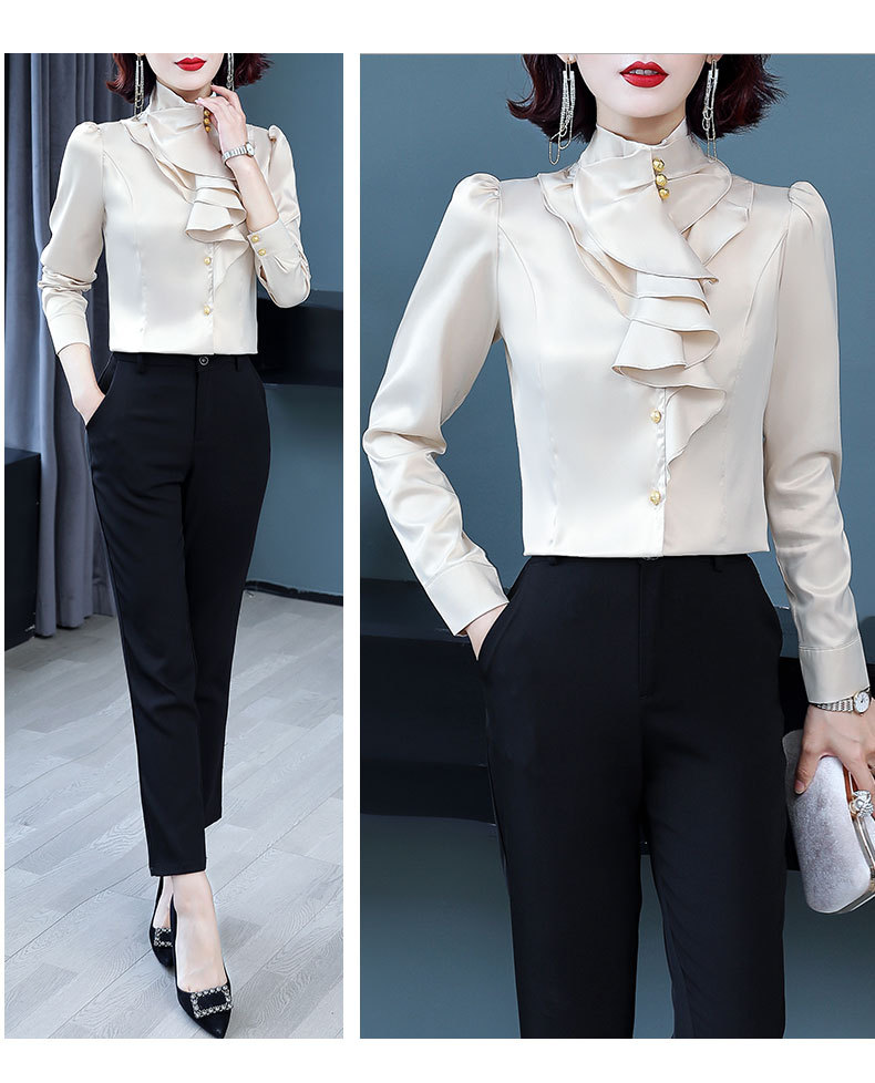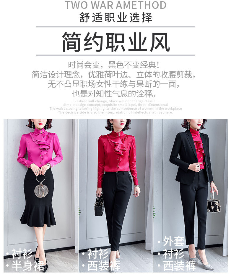 SQJ-L053秋冬女加绒保暖衬衫三层荷叶边优雅风纯色