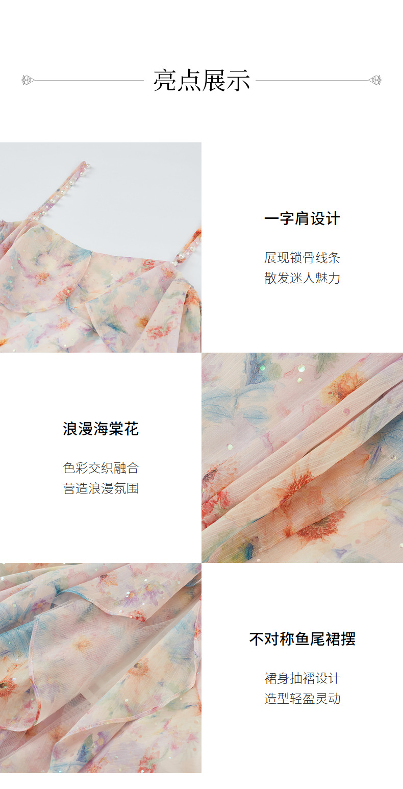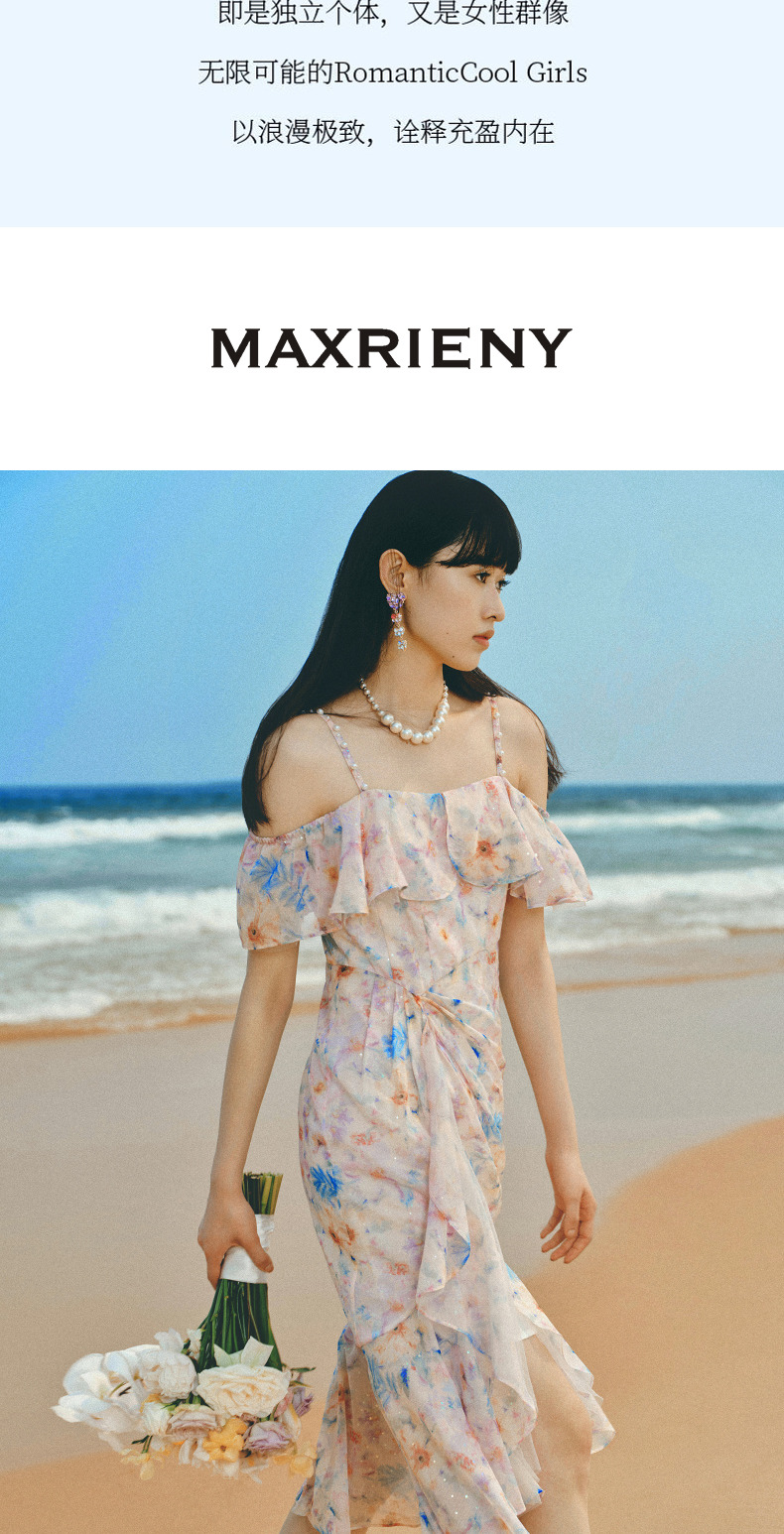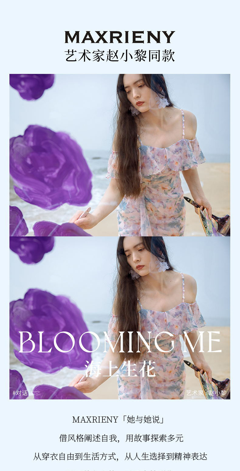 【浪漫当夏】MAXRIENY日落橙花连衣裙浪漫郁金香吊带连衣裙碎花裙(货号:MS88DR277)
