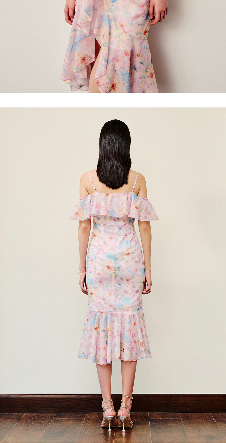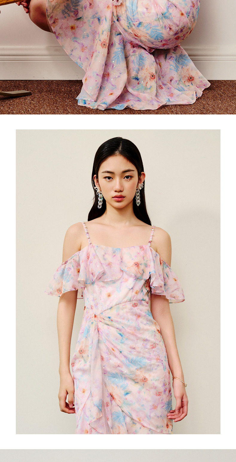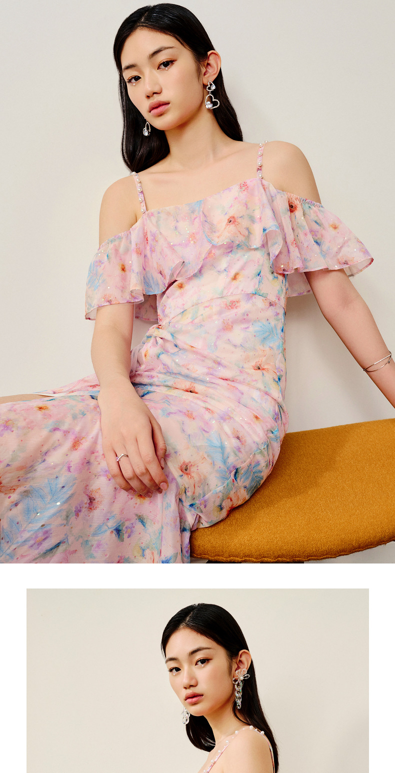 【浪漫当夏】MAXRIENY日落橙花连衣裙浪漫郁金香吊带连衣裙碎花裙(货号:MS88DR277)