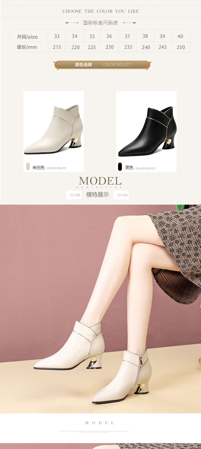 货号:A09鞋面材质:头层牛皮内里材质:单里、绒里跟高:5.5cm鞋底:橡胶底颜色:黑色、米白色尺码:33-41(大小定制不退换)