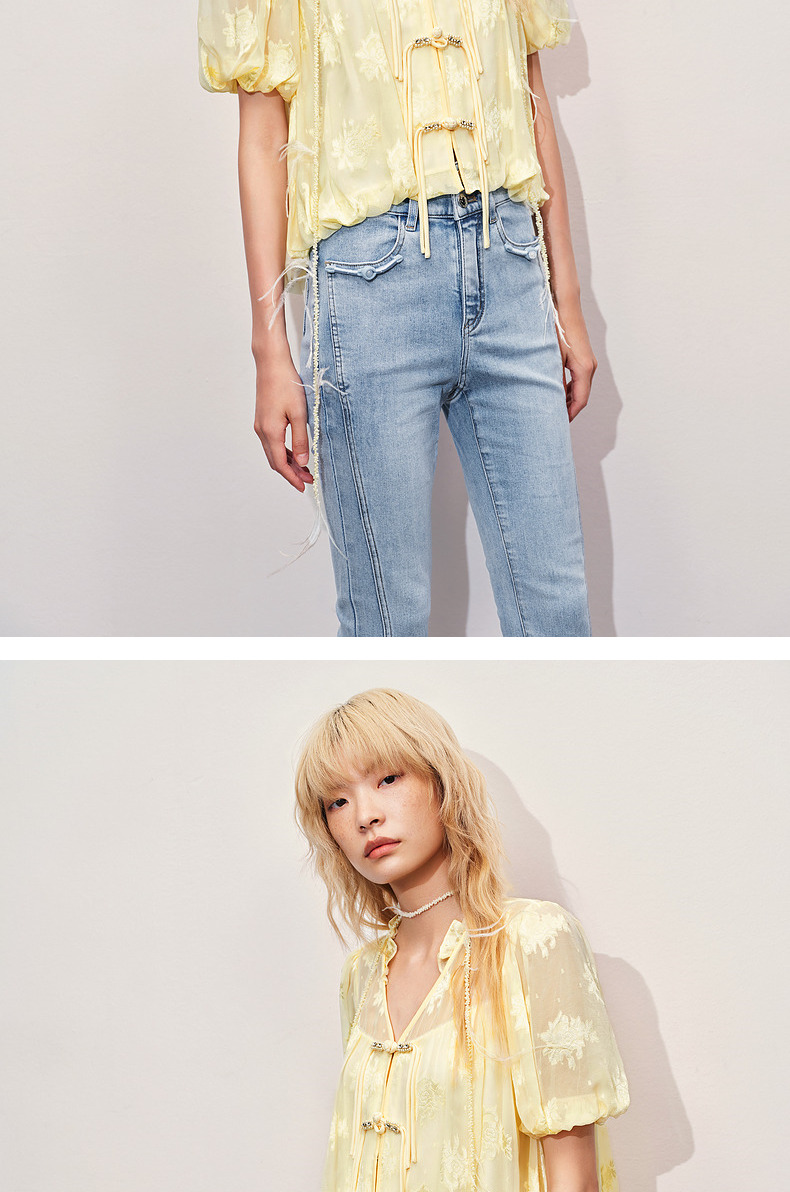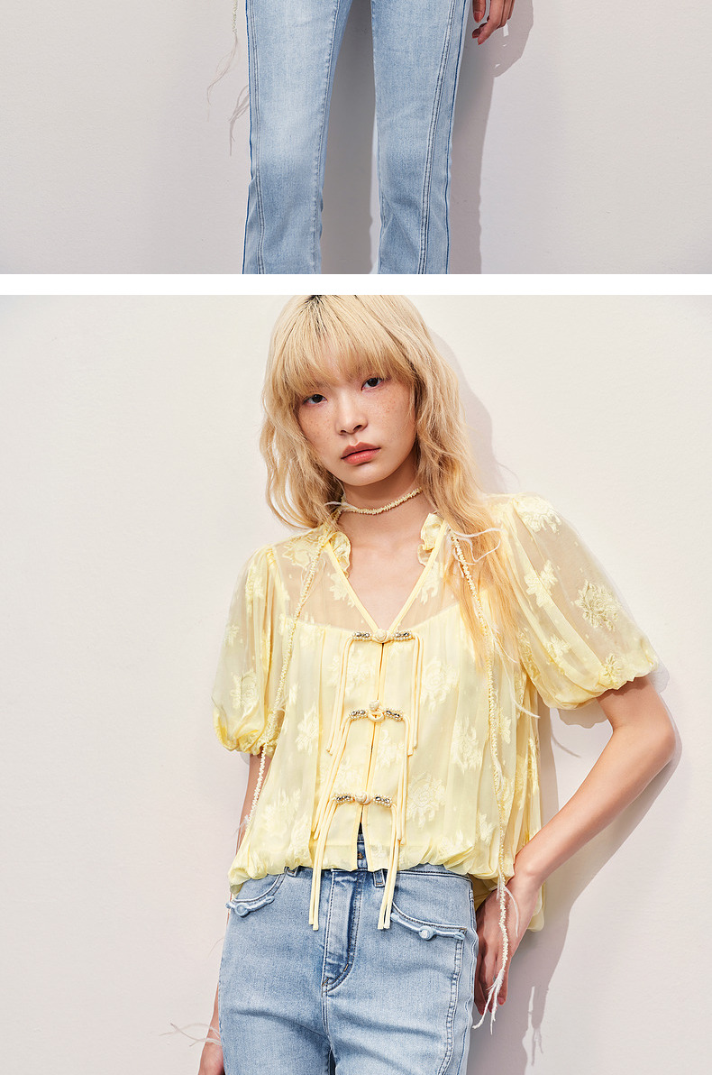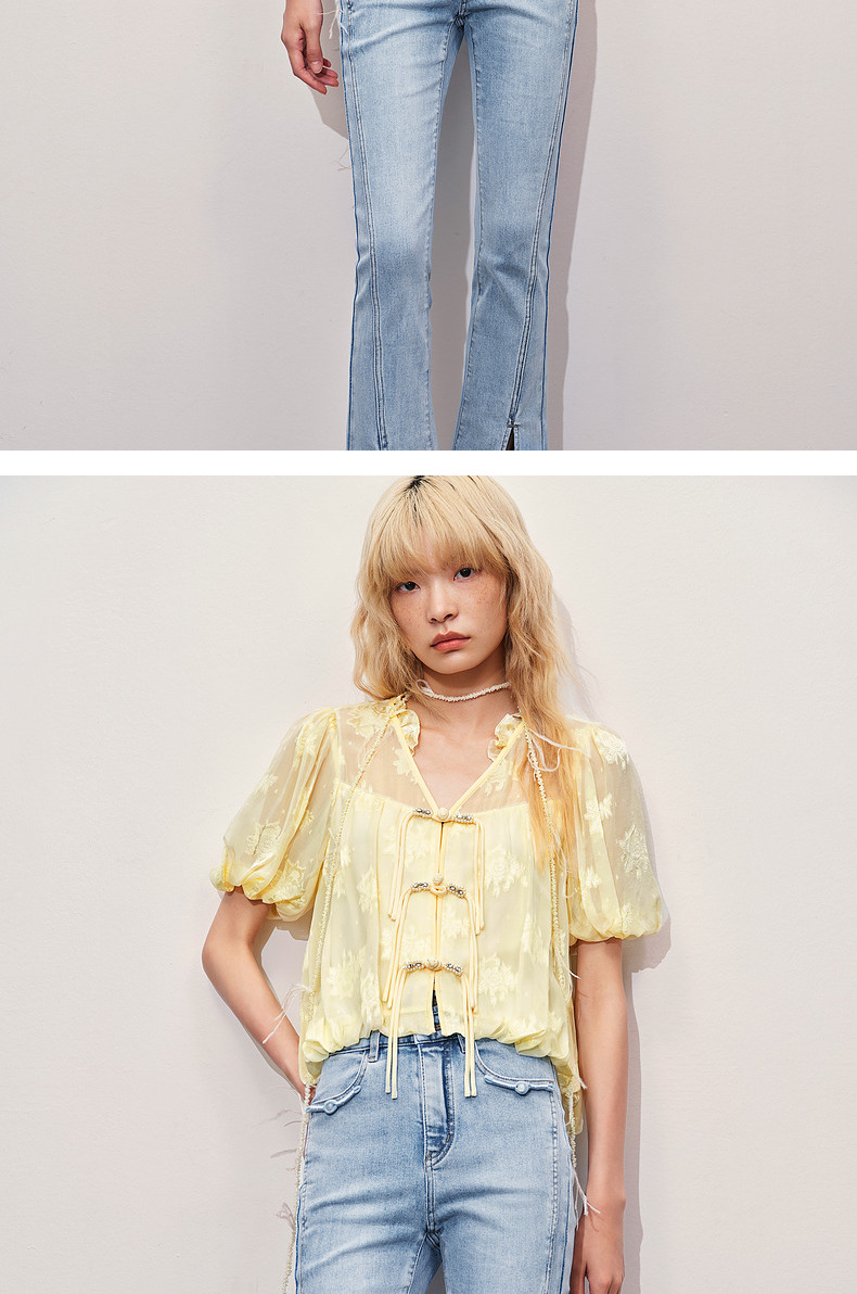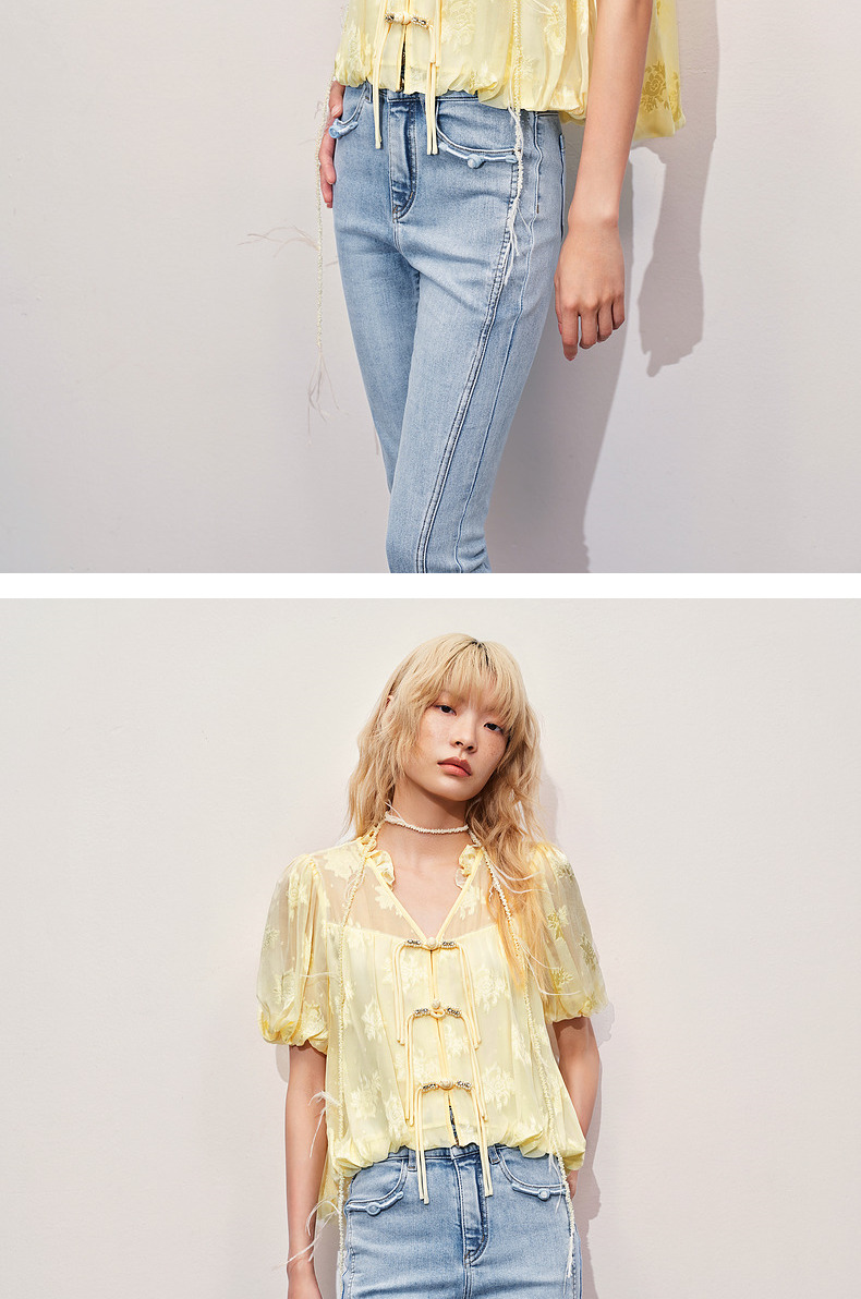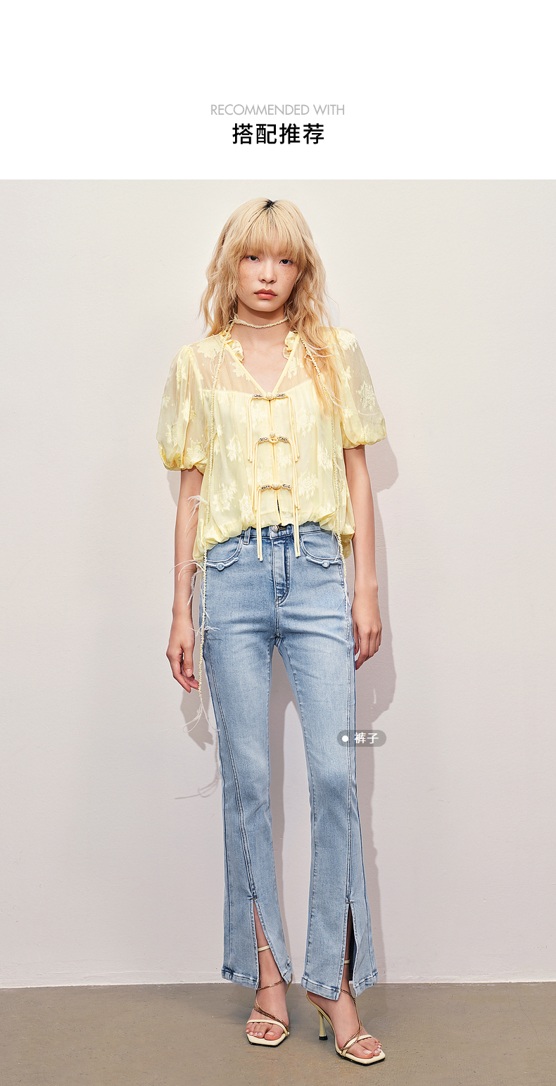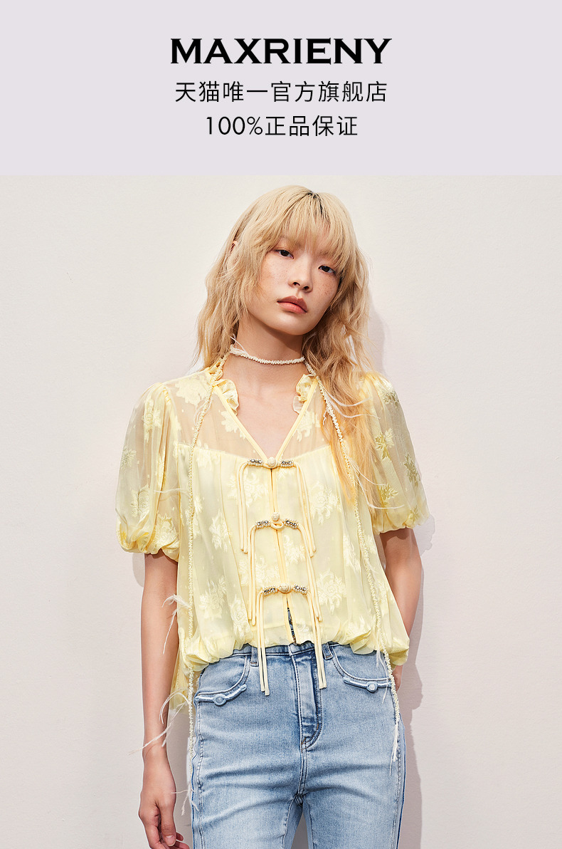 玛克门店发货:MAXRIENY清冷新中式钉珠挖肩上衣修身显瘦(货号:MC85TP325)
