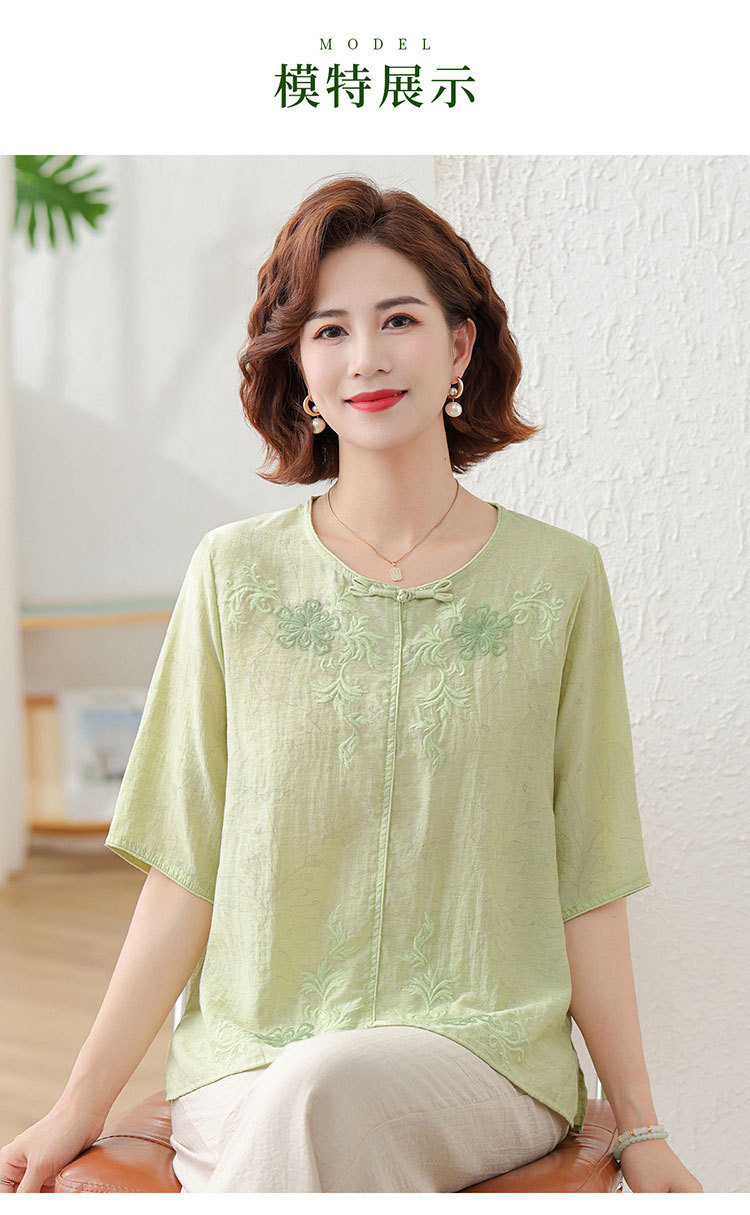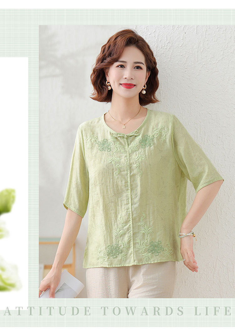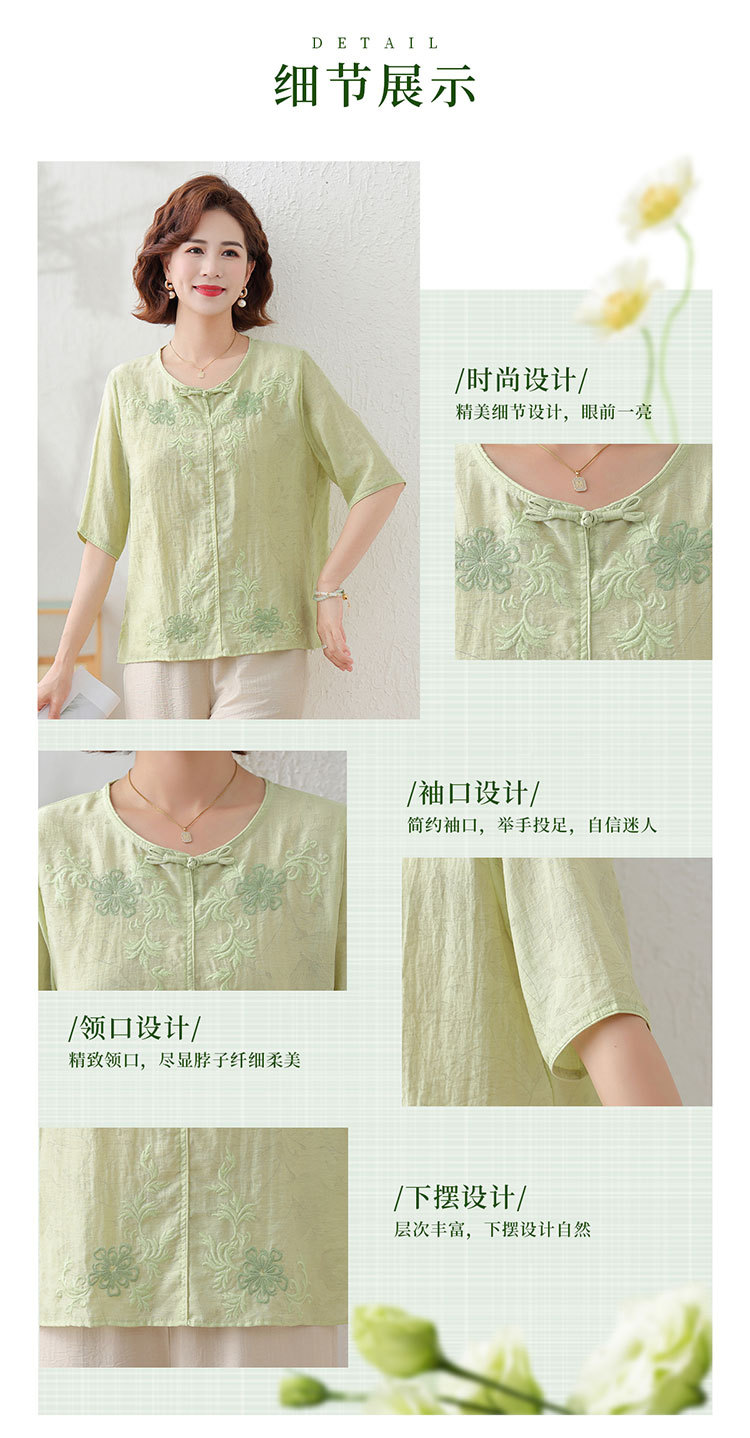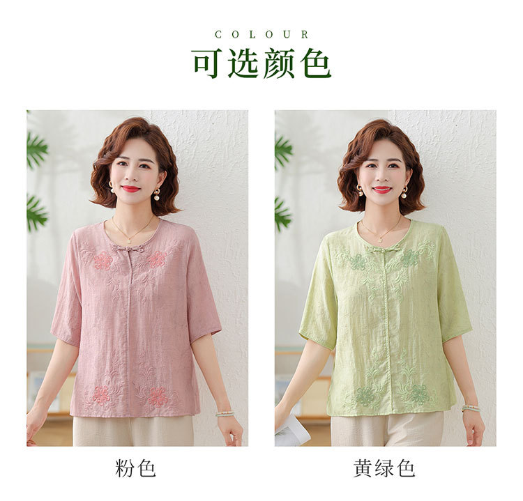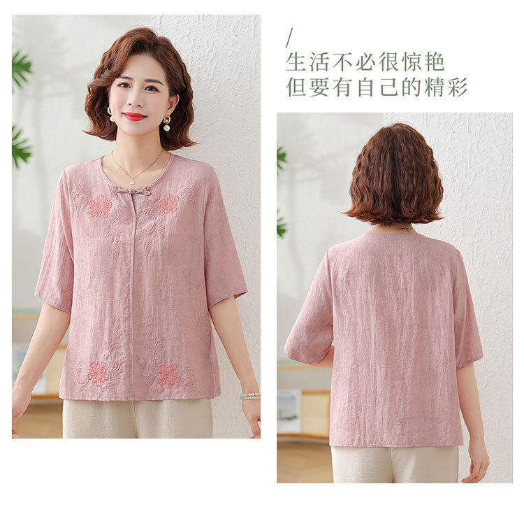 W574-25032单件上衣-80-138妈妈装夏装T恤薄款洋气小衫高贵中老年女母亲衣服国风新中式上衣