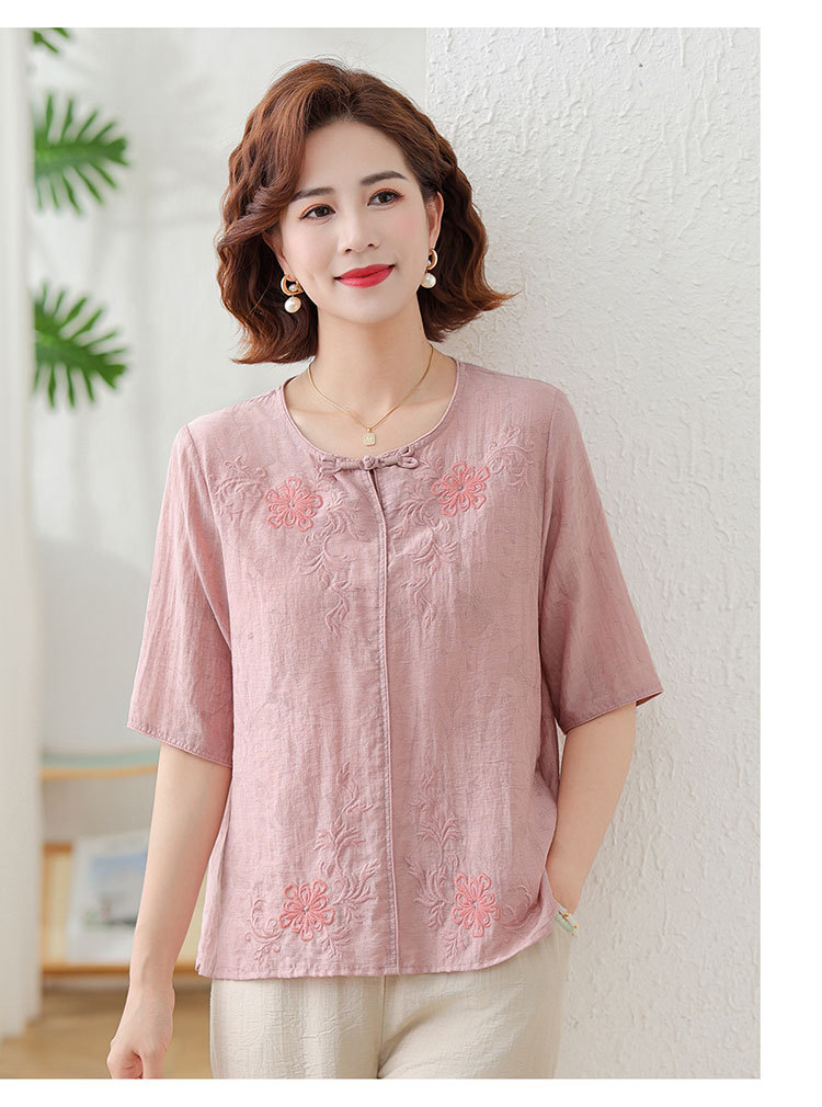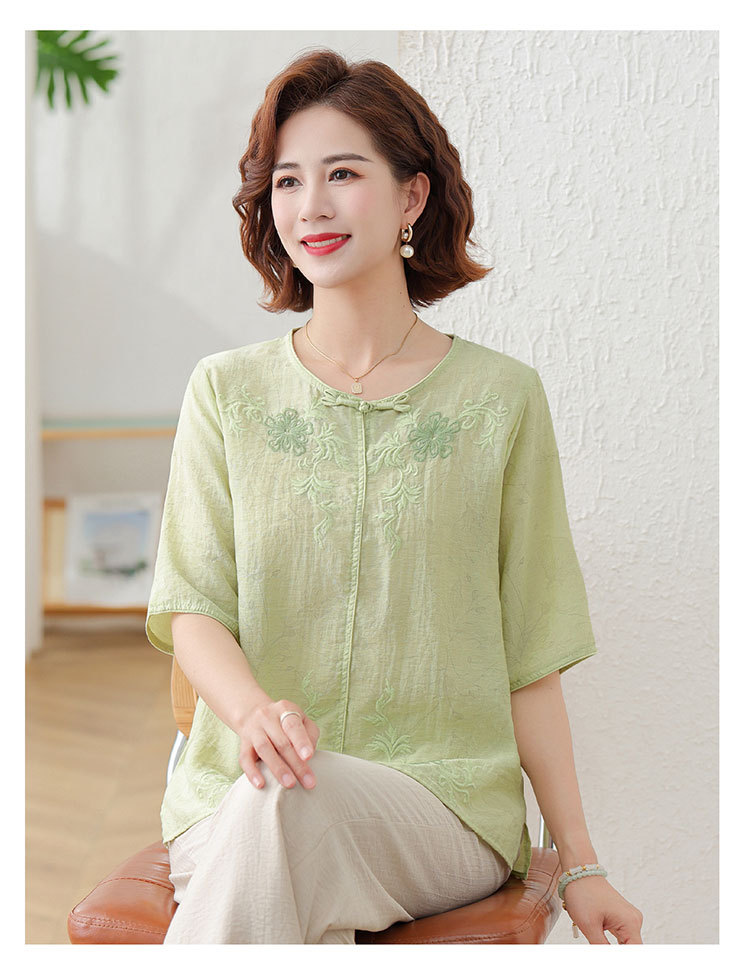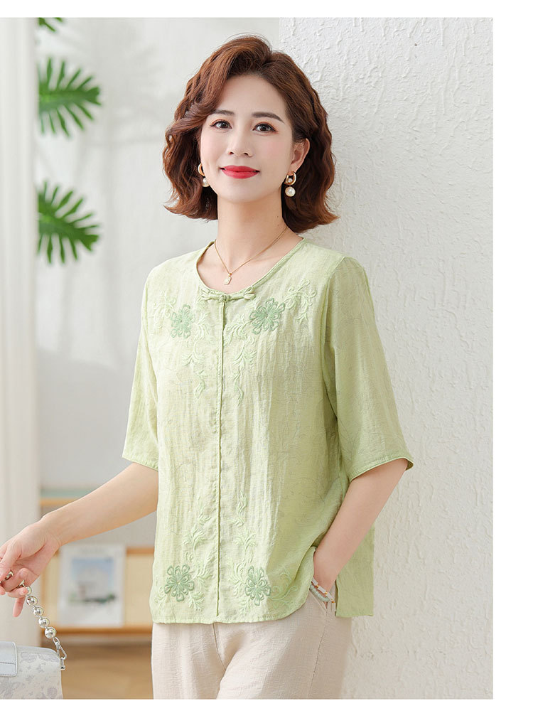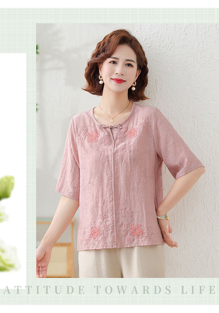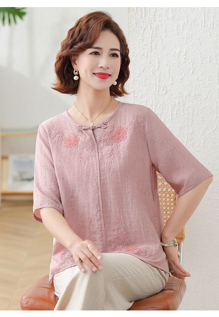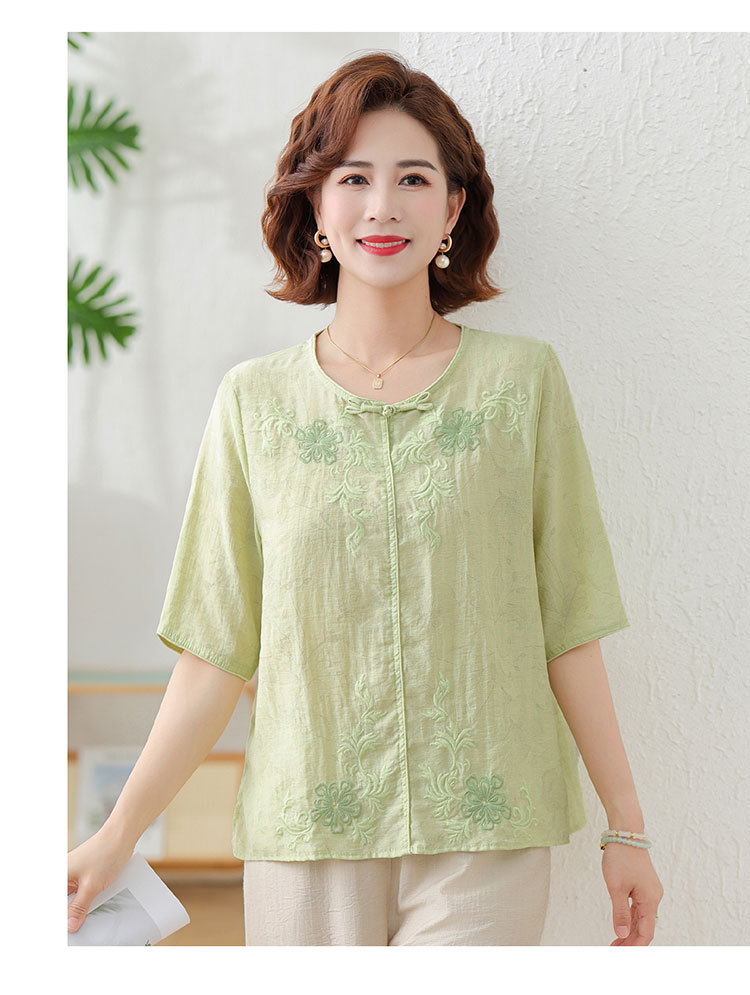 W574-25032单件上衣-80-138妈妈装夏装T恤薄款洋气小衫高贵中老年女母亲衣服国风新中式上衣