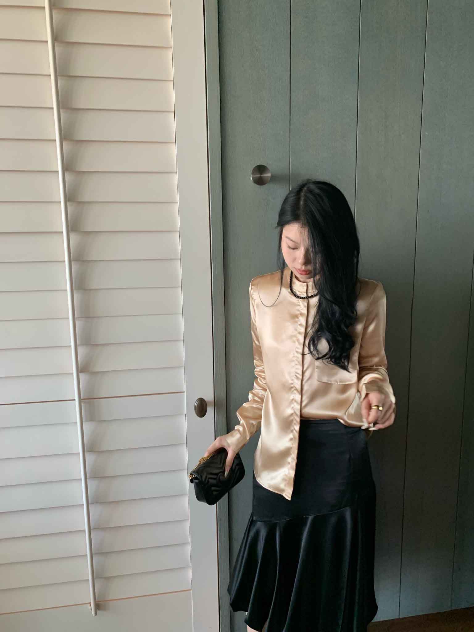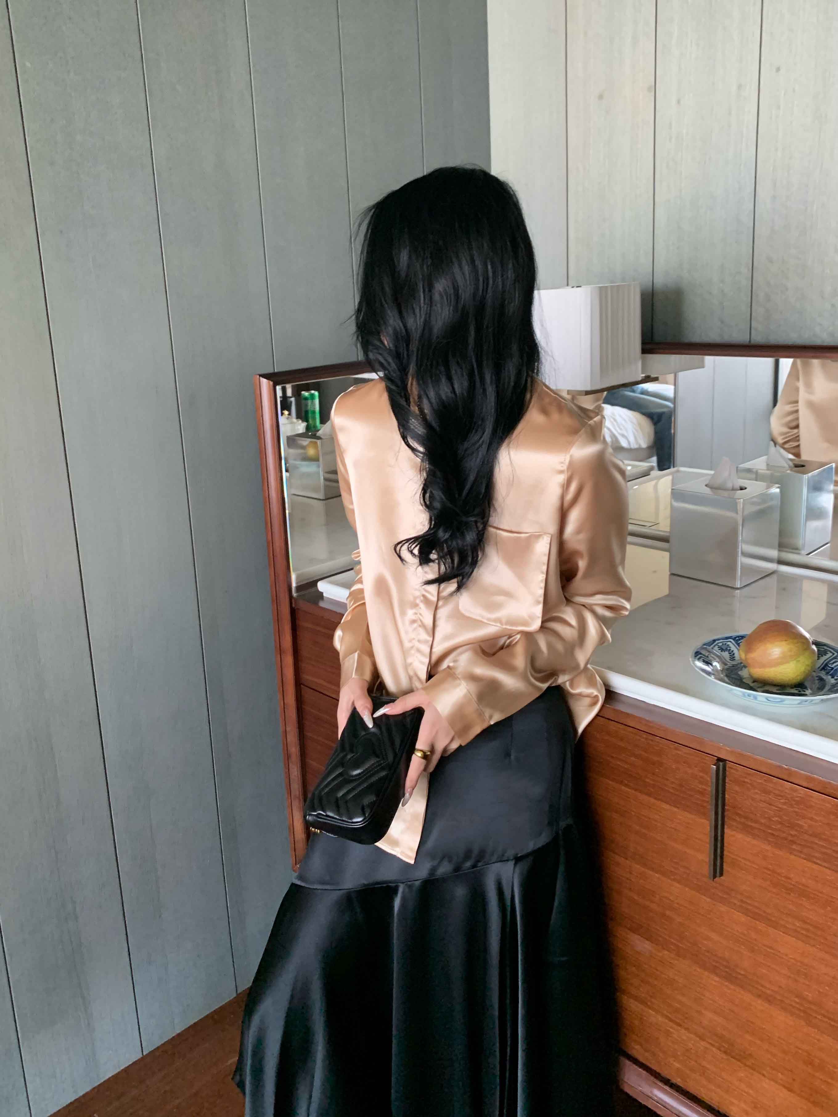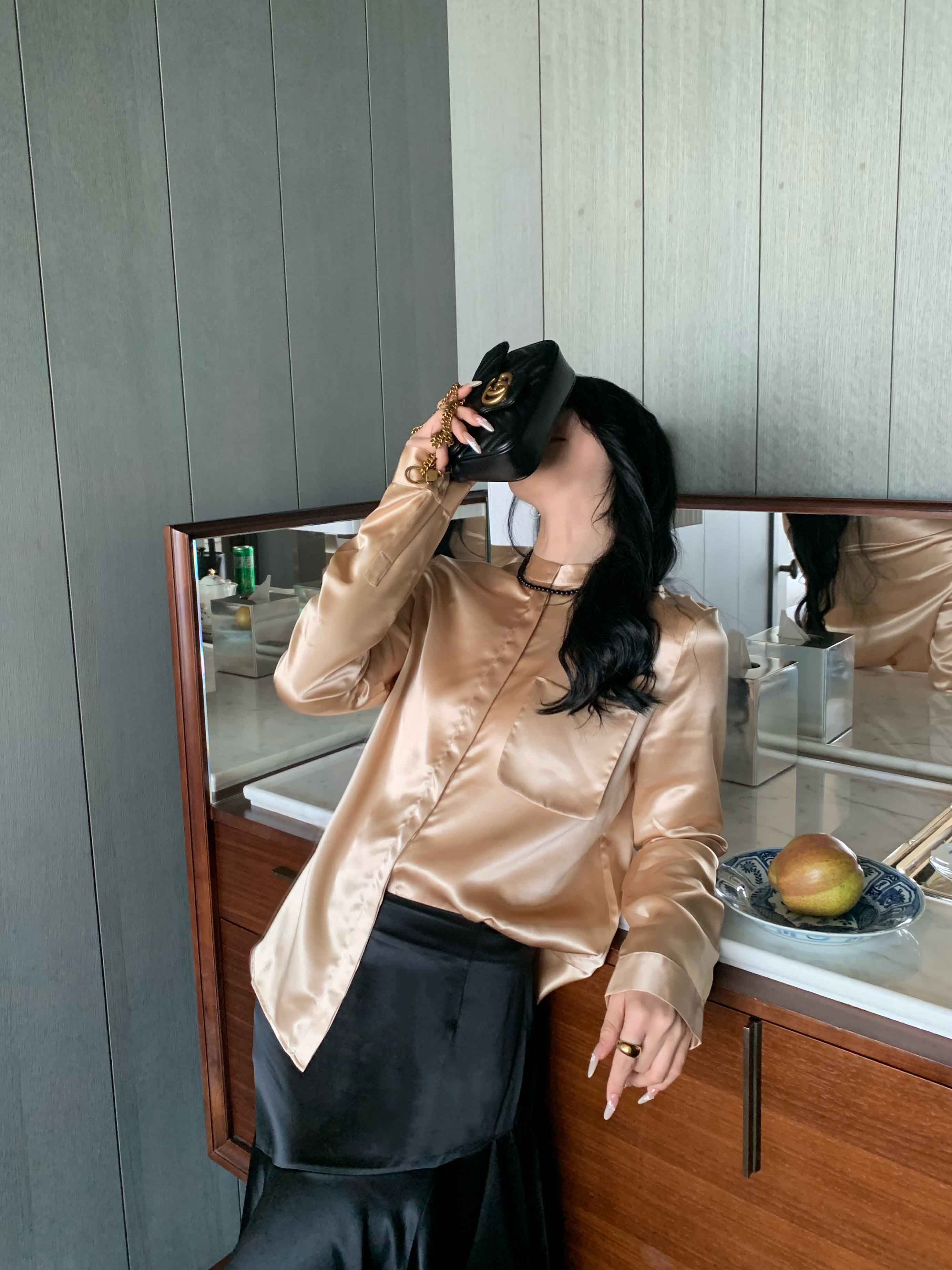 顺丰包邮洛诗琳13842春季设计感口袋衬衫2025新款醋纤上衣20357