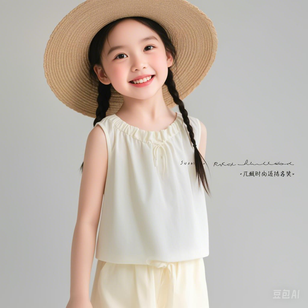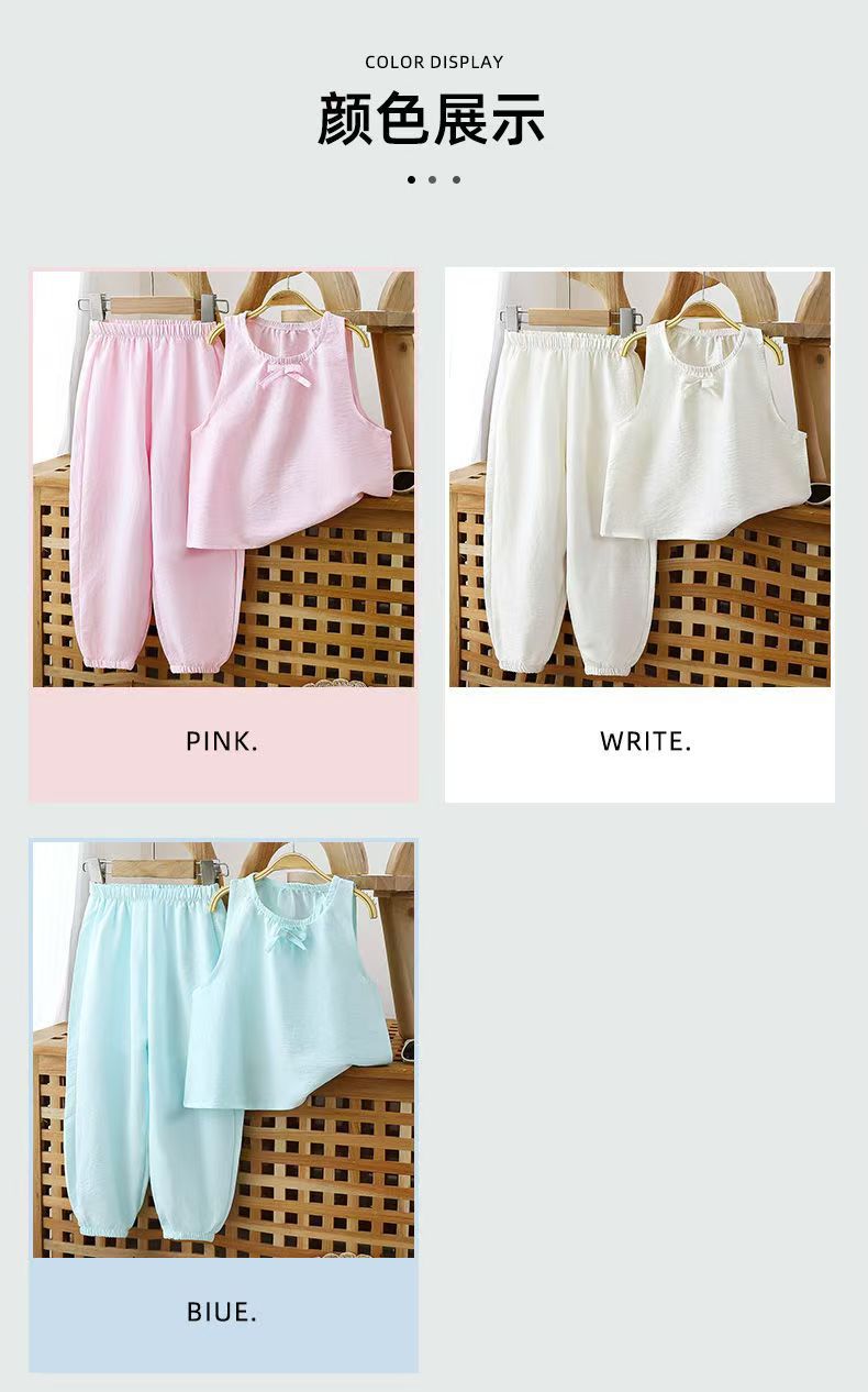 【甜美新款套装,夏日必备!】[女童套装甜美背心上衣加长裤夏装 女孩可爱休闲睡衣空调服两件套装-QA