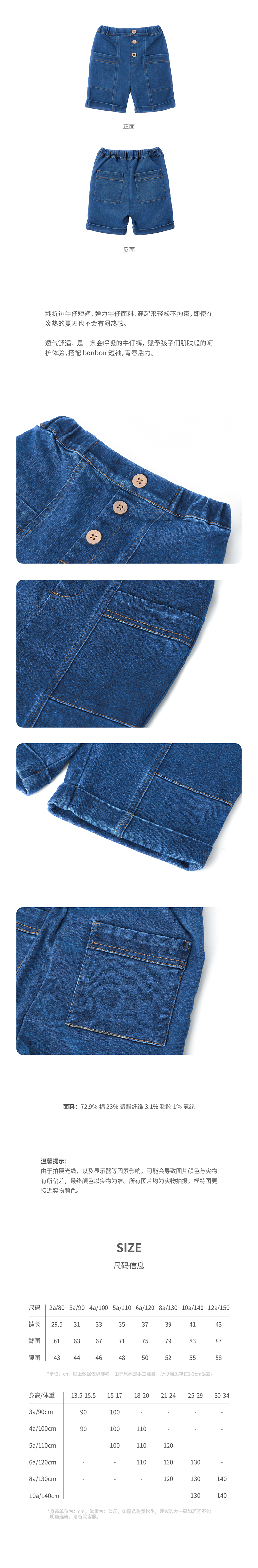 翻折边大口袋丹宁短裤
