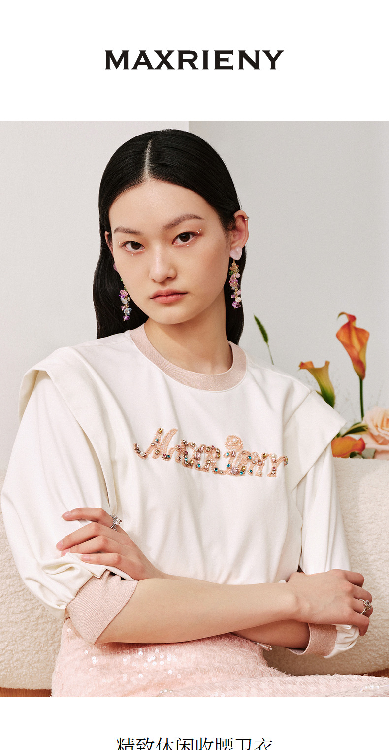 MAXRIENY简约镶钻设计感截短坎肩卫衣(货号:MC88TS502)
