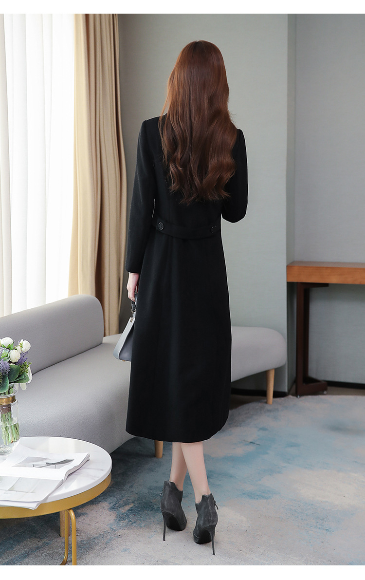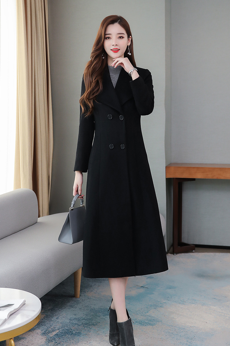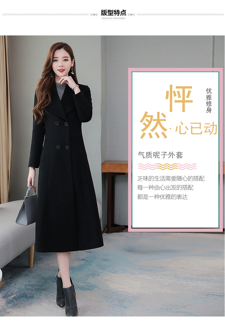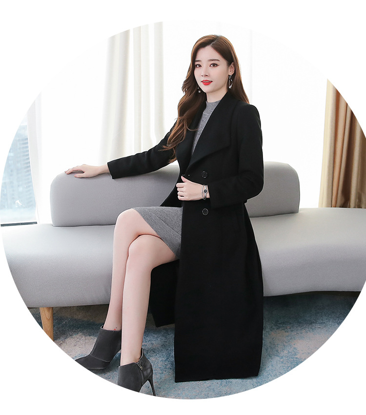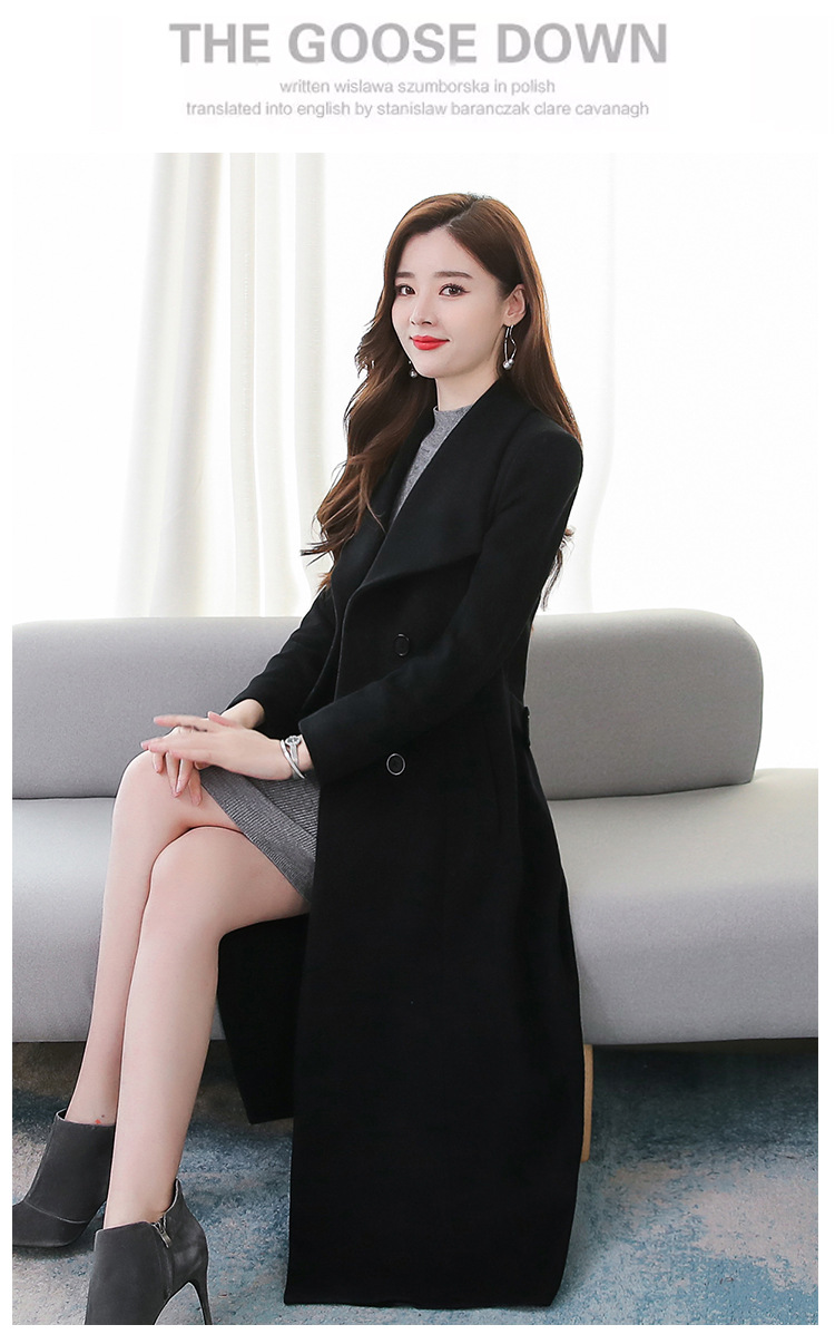 SYG-C18BN108659冬季新款羊毛大衣女翻领超长款修身外套