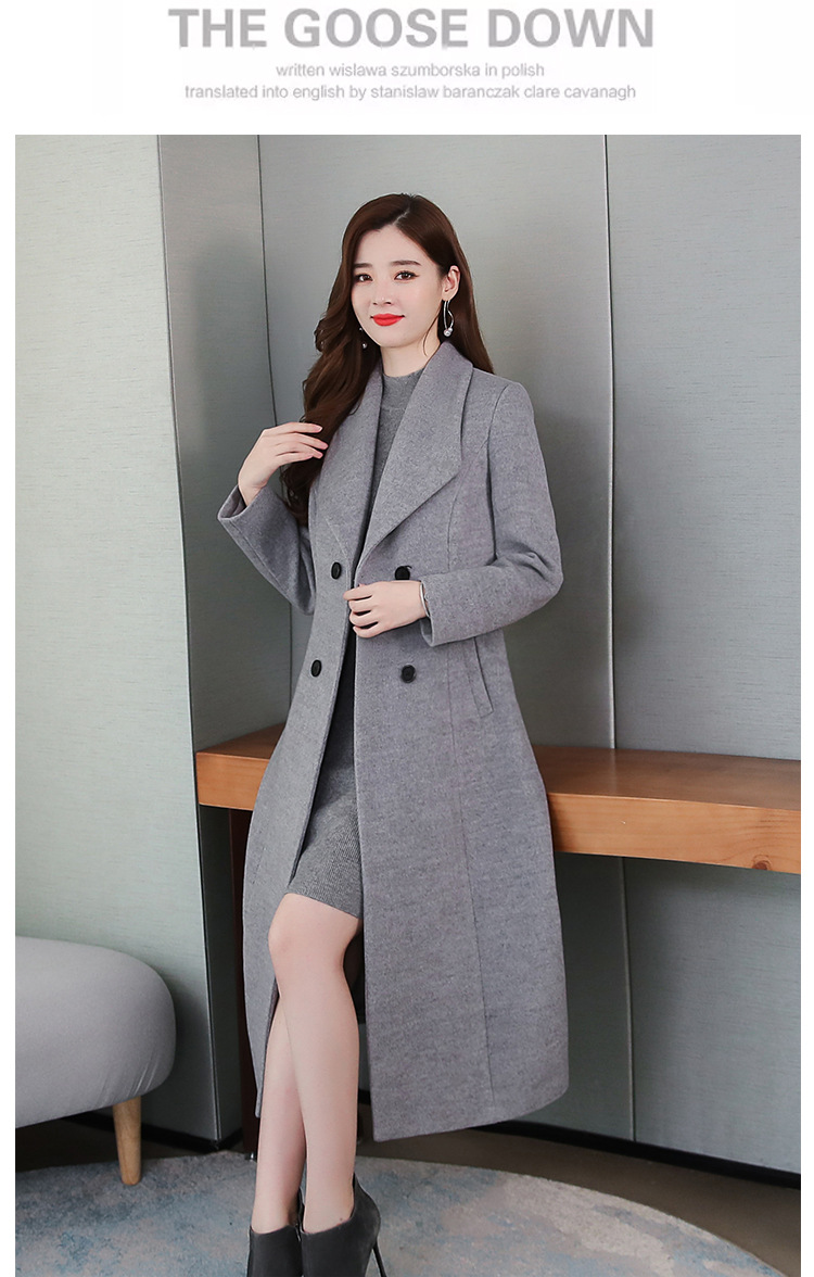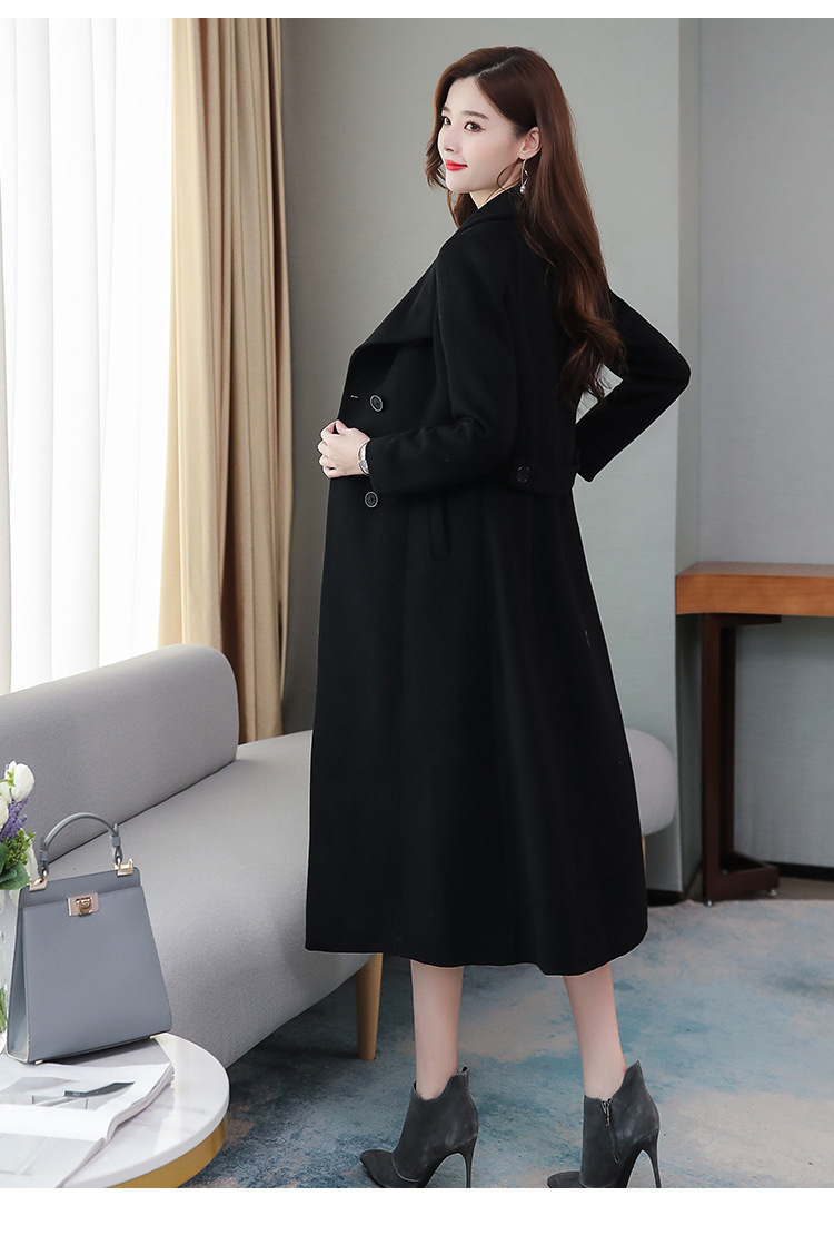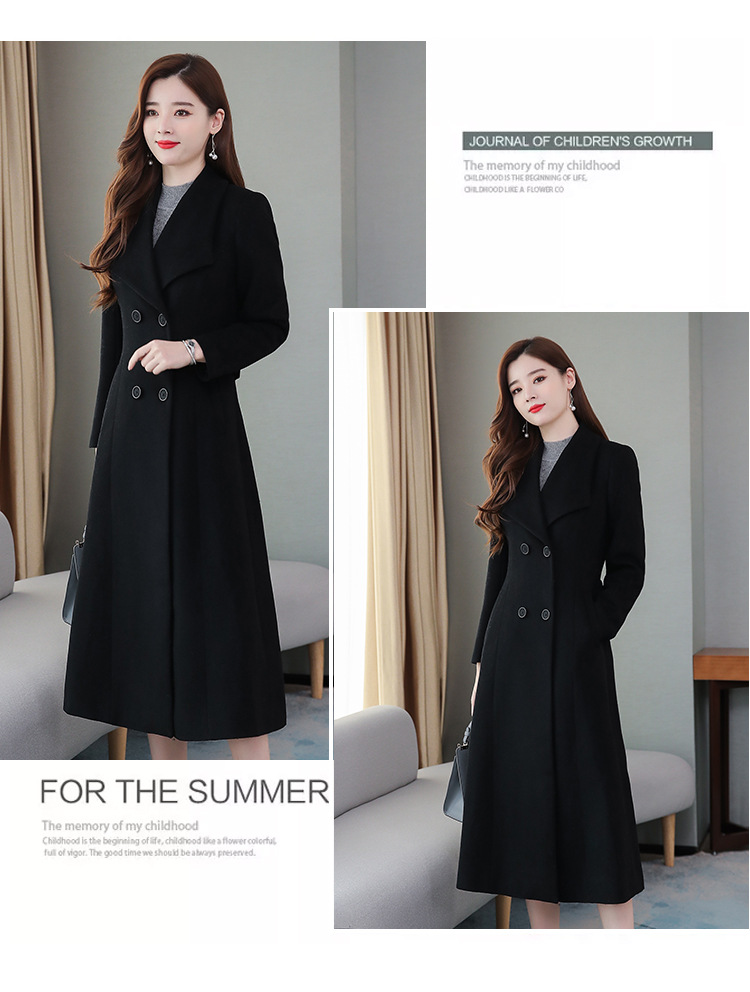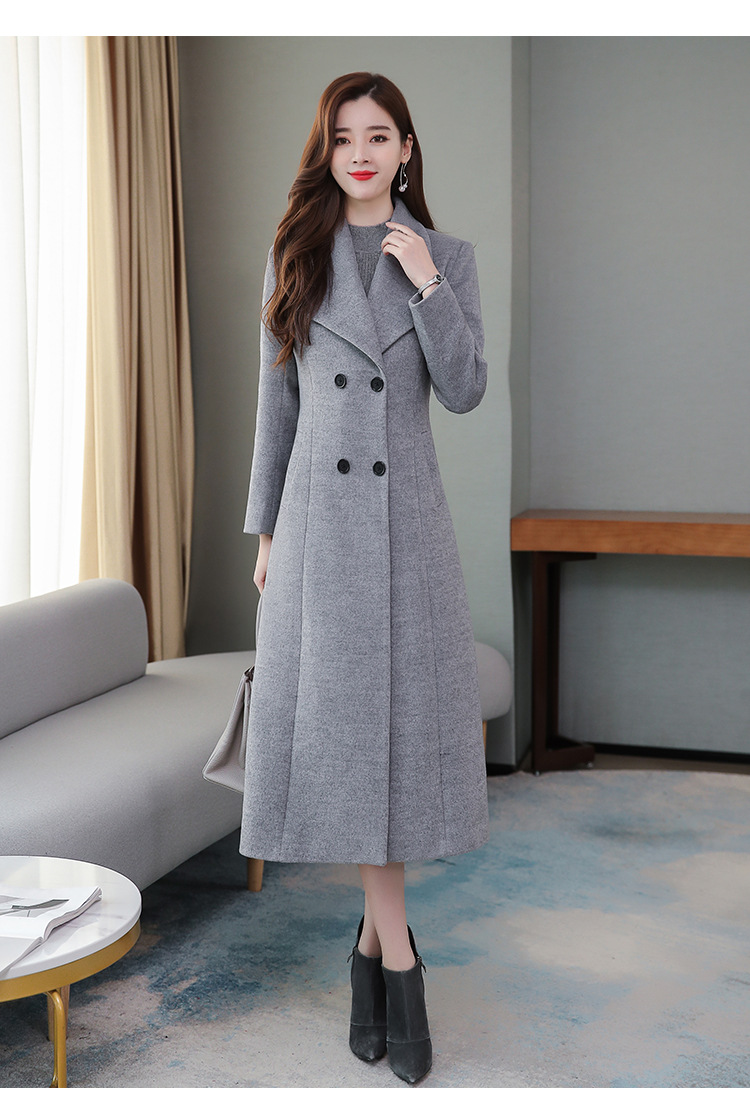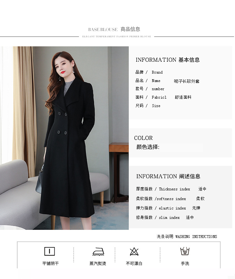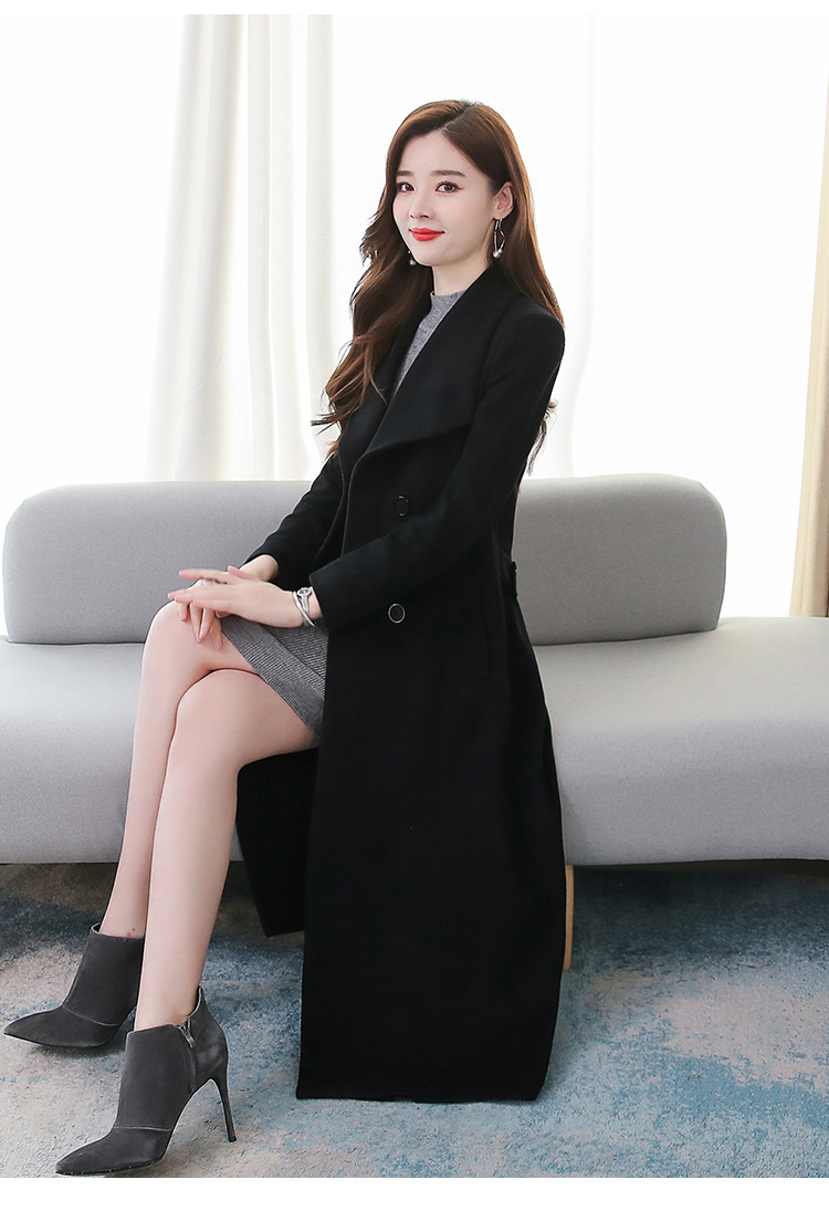 SYG-C18BN108659冬季新款羊毛大衣女翻领超长款修身外套