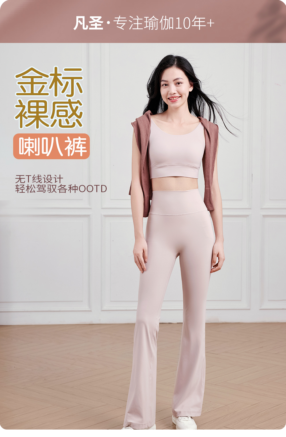 凡圣瑜伽金标裸感系列无尴尬线喇叭长裤/九分裤FC14976W
