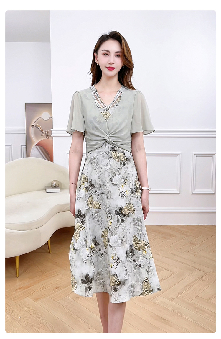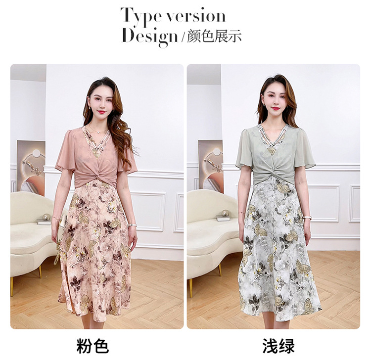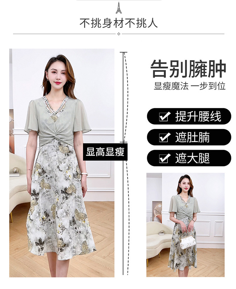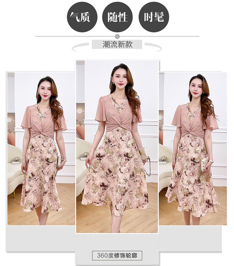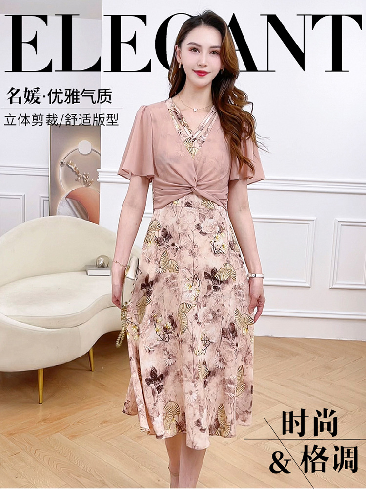 修身时尚雪纺裙,荷叶袖通勤洋气假两件连衣裙QYM-XQD-53A2449-L