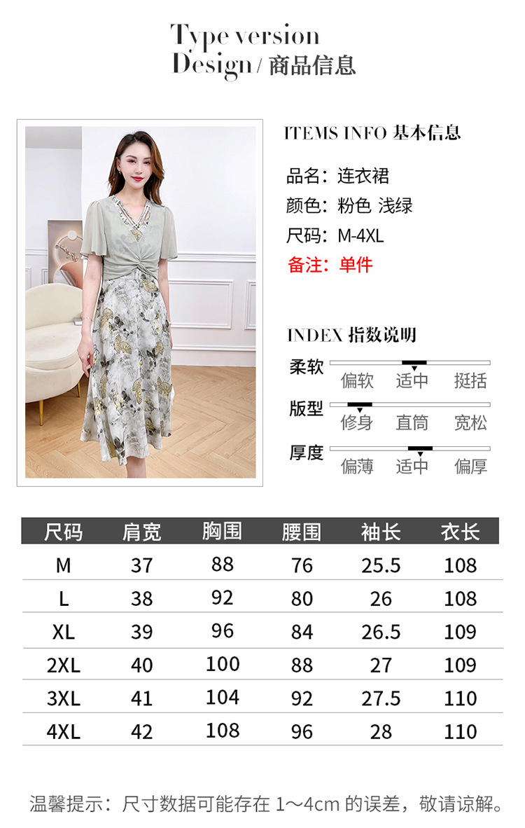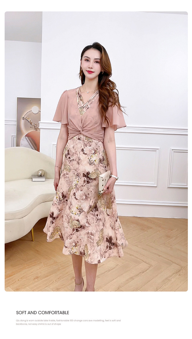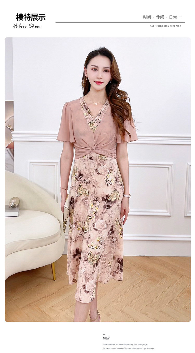 修身时尚雪纺裙,荷叶袖通勤洋气假两件连衣裙QYM-XQD-53A2449-L
