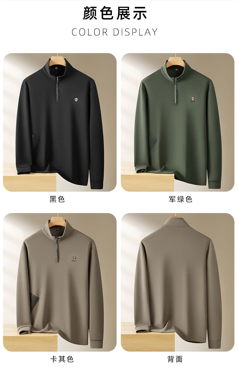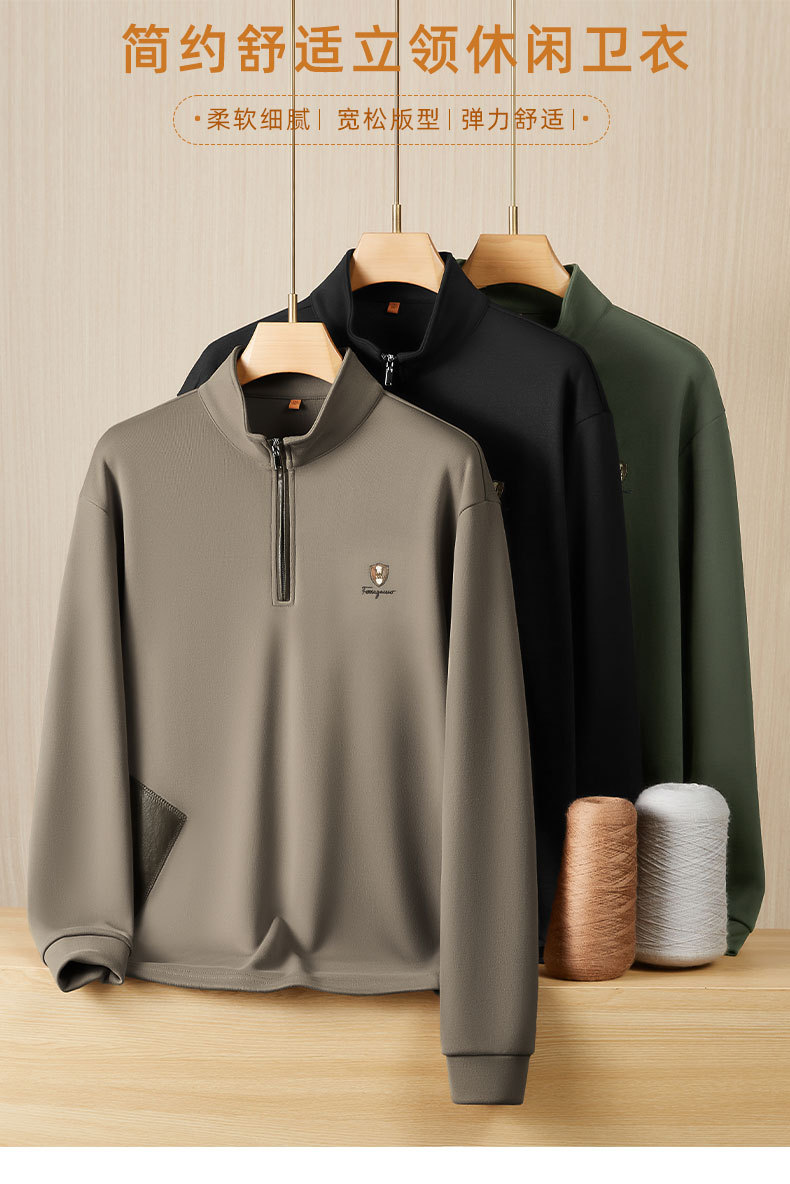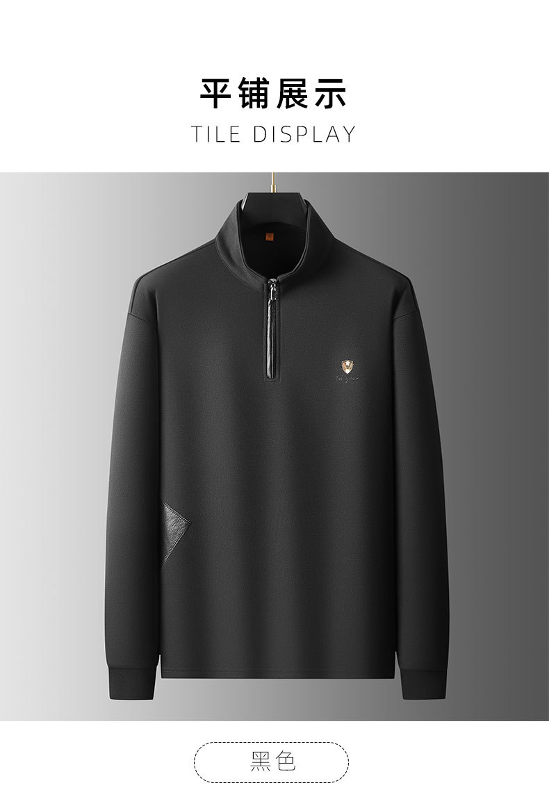 【DWP】大依优型大码男士卫衣长袖舒适立领休闲卫衣宽松百搭拼接设计新款男青年潮胖时尚休闲立领半拉链长袖T恤男打底衫