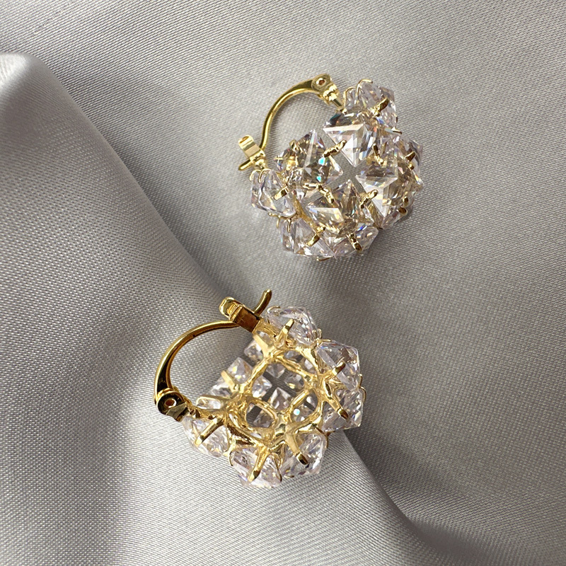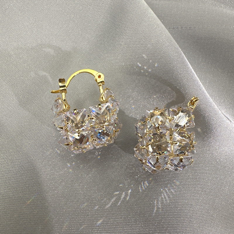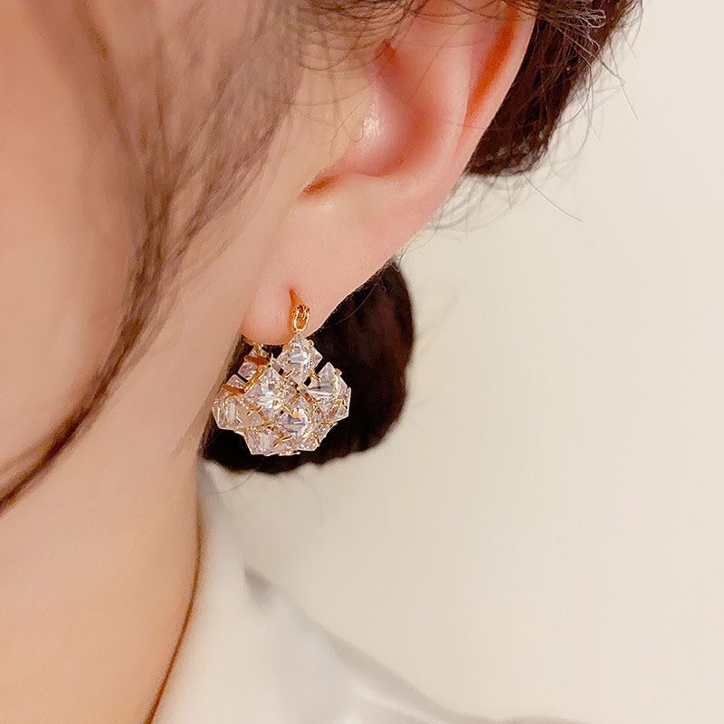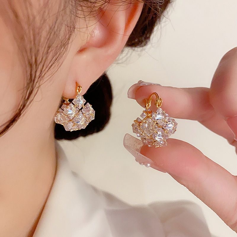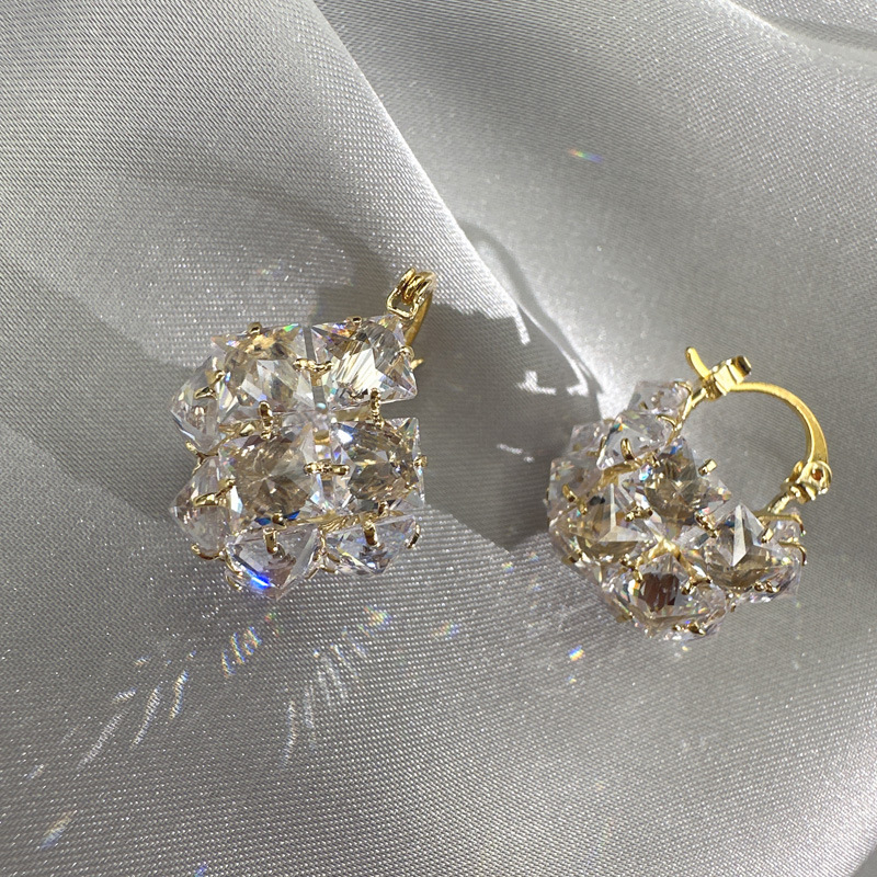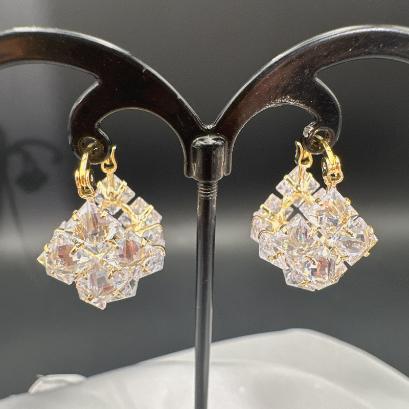 丁摩 超闪时尚轻奢锆石立体方块耳环女气质耳饰耳扣5ZF-4545