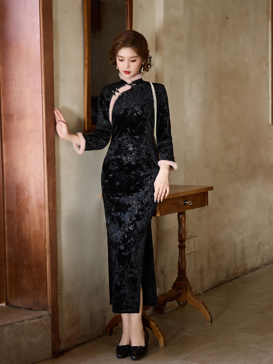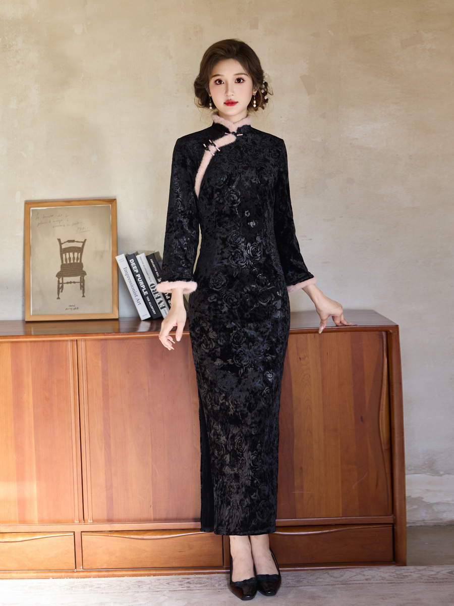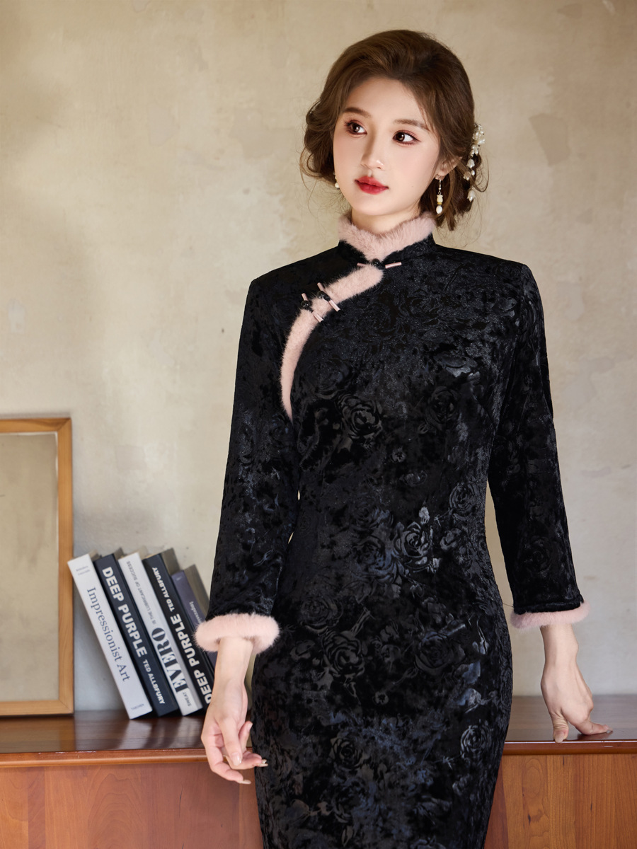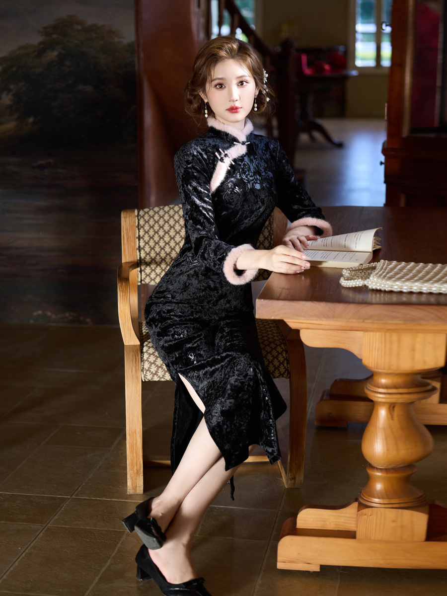 MYJ 加绒加厚冬装国风新中式长袖旗袍