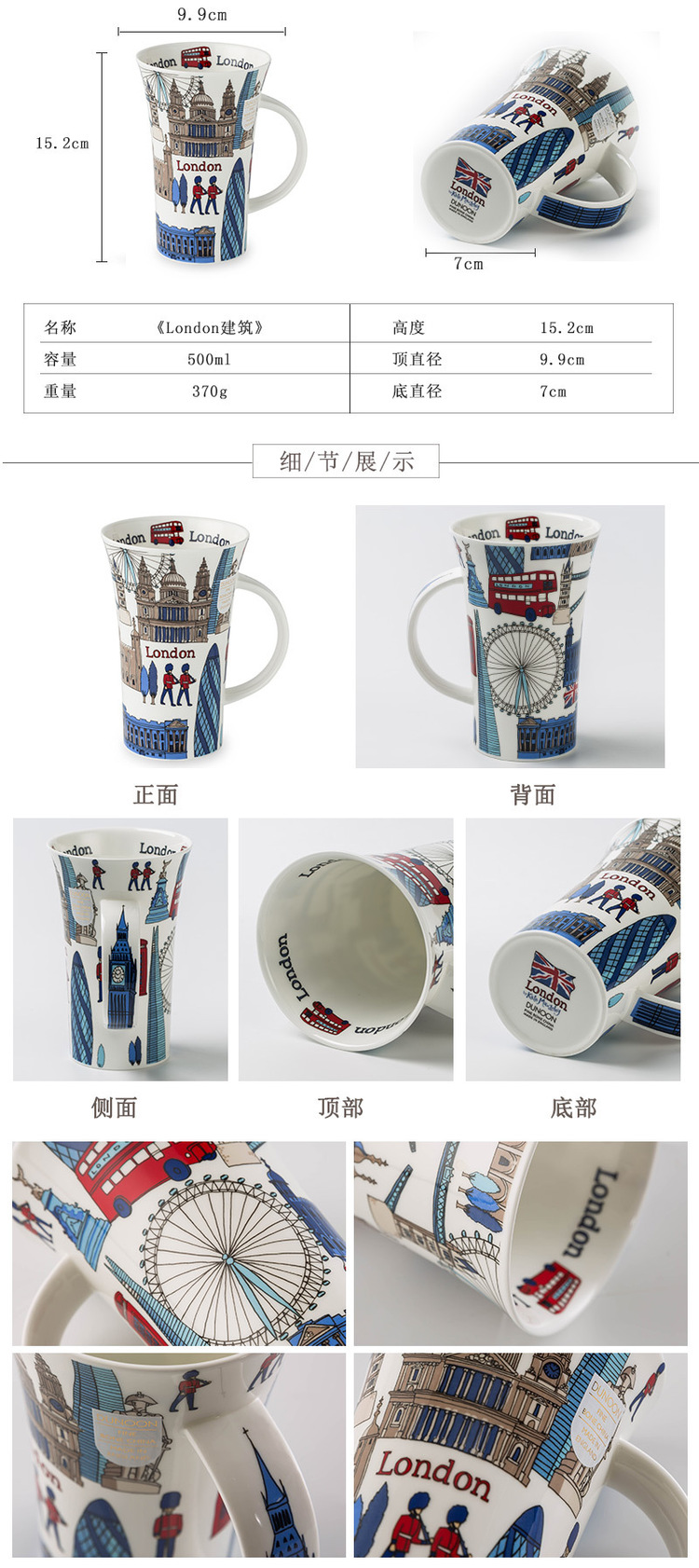 英国DUNOON丹侬峡谷型马克杯异国风情之建筑 黑色礼盒
