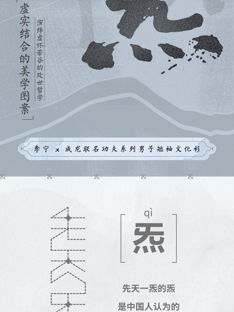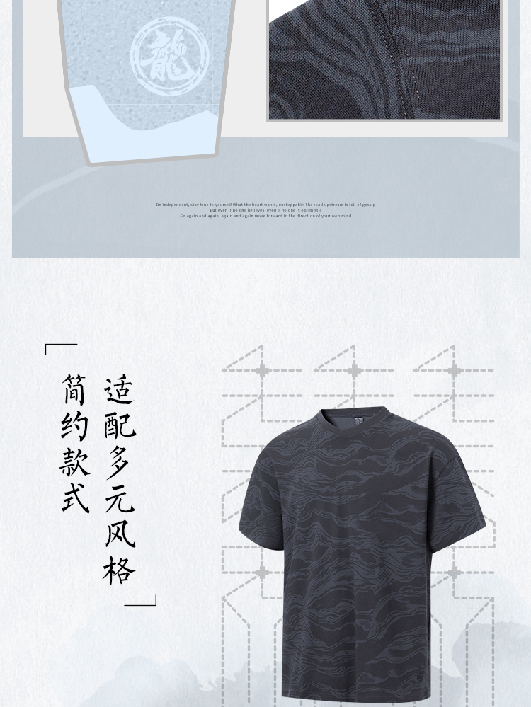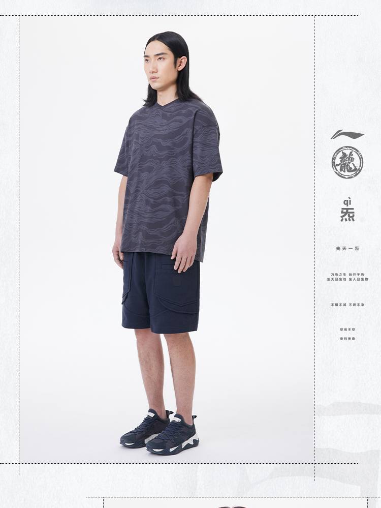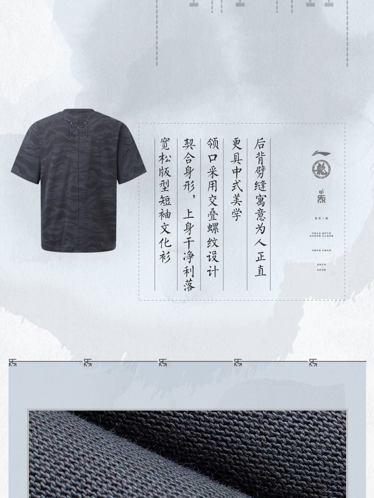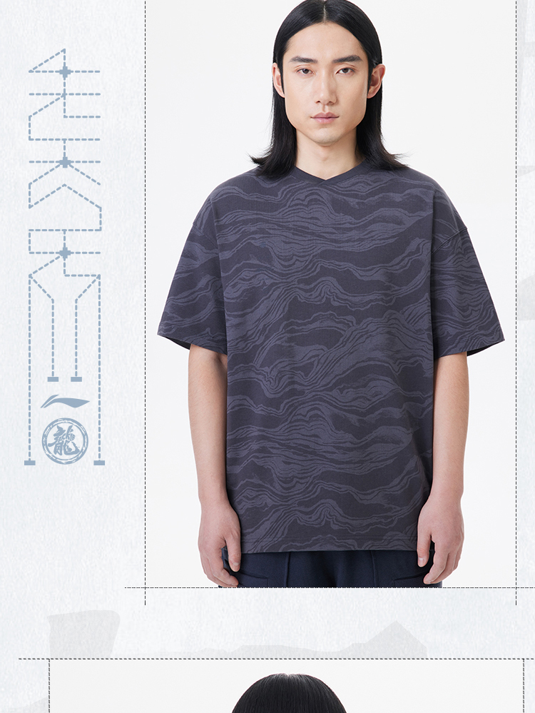 中国李宁2023新款男子短袖夏季功夫系列透气宽松休闲文化衫 AHST065