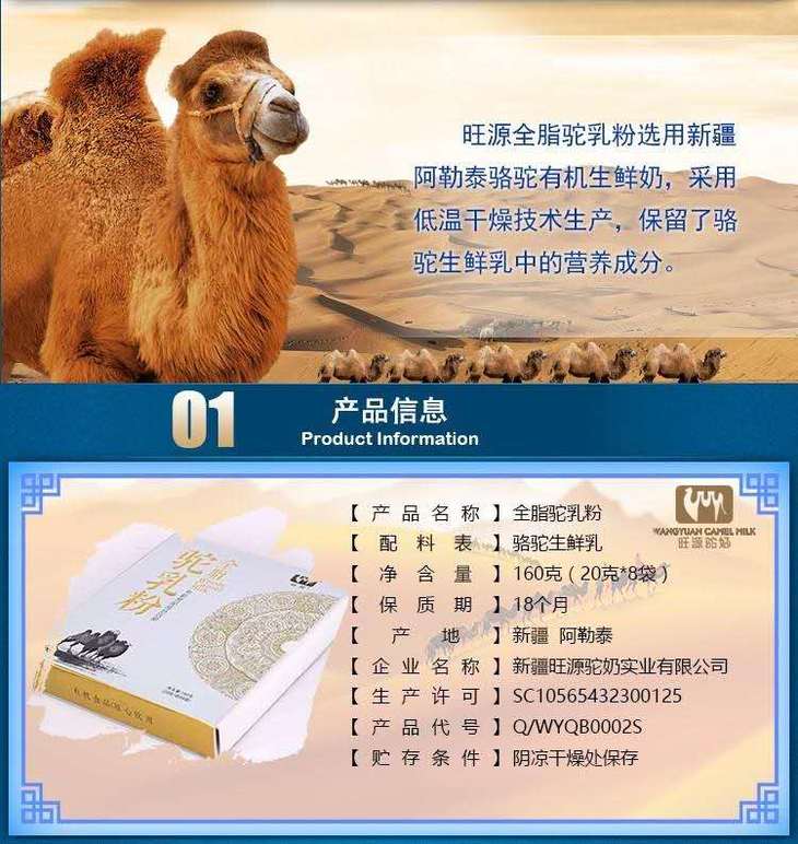 旺源驼奶粉礼盒装160g(20g*8袋)