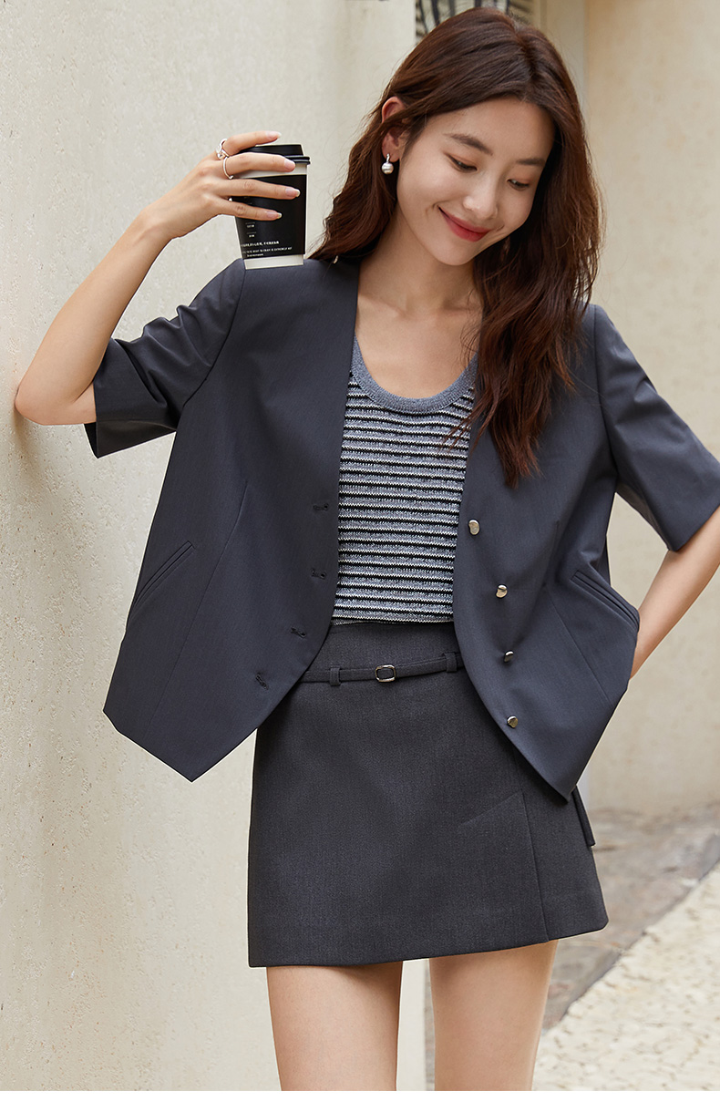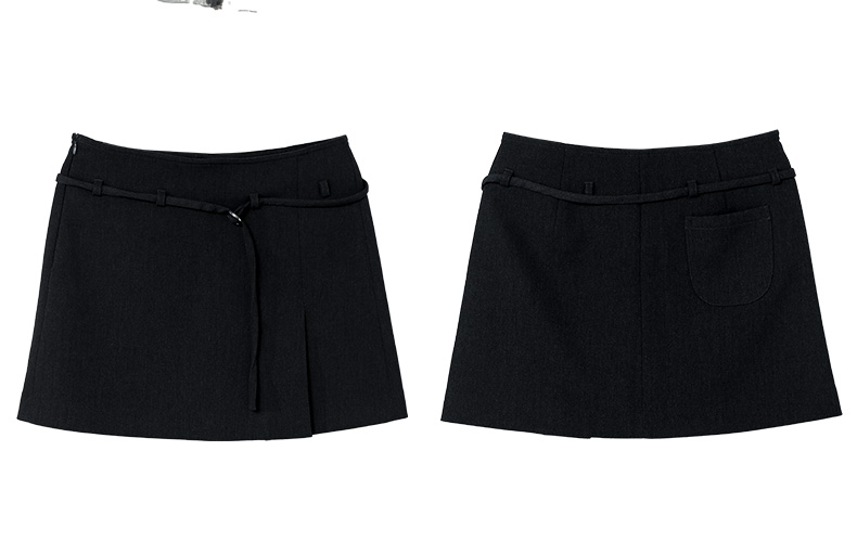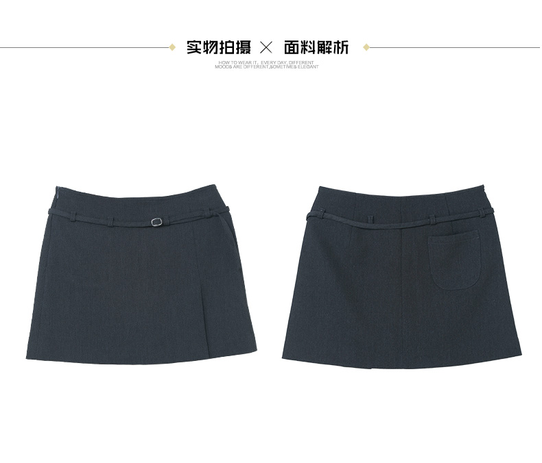 干练精致 深灰色高腰短裙 腰带设计 通勤日常 小短裙