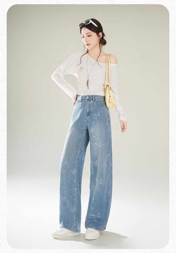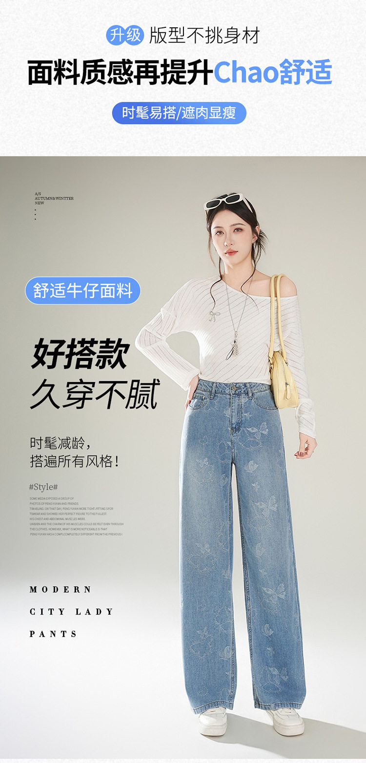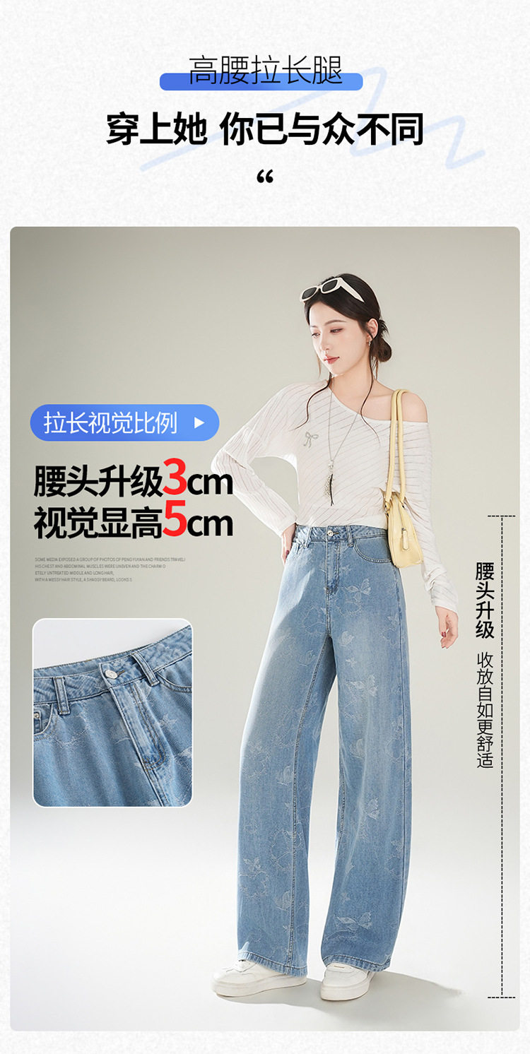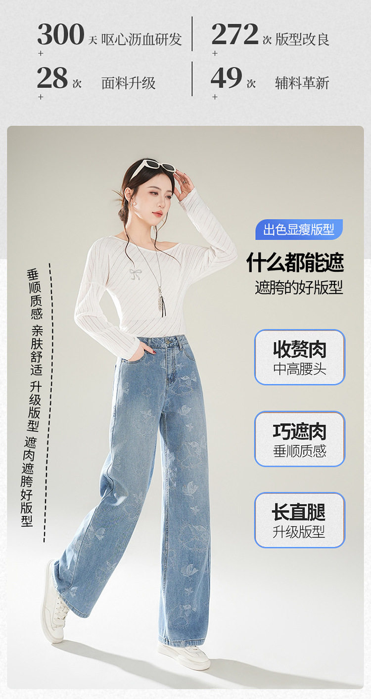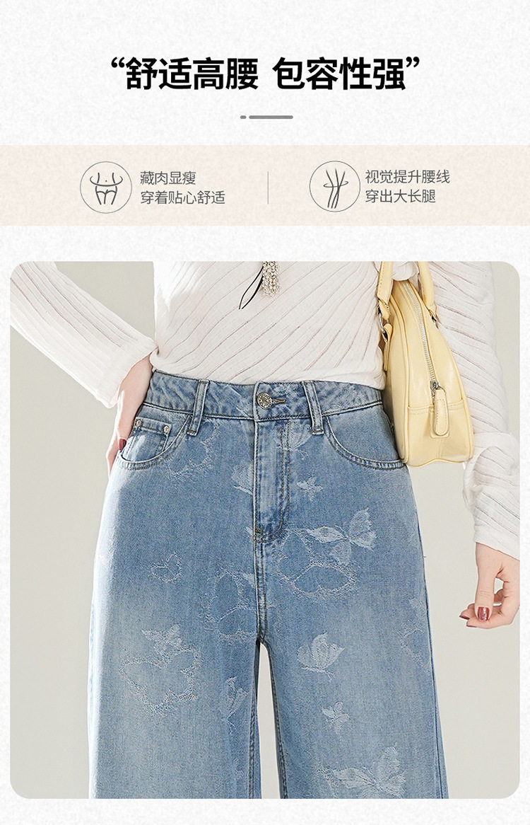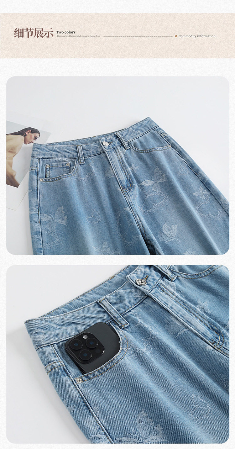 「自」全新升级【铂金会员174/天猫229/差价55】(11945)洛诗琳美式复古蓝色牛仔裤2026春季新款蝴蝶印花显瘦阔腿直筒裤