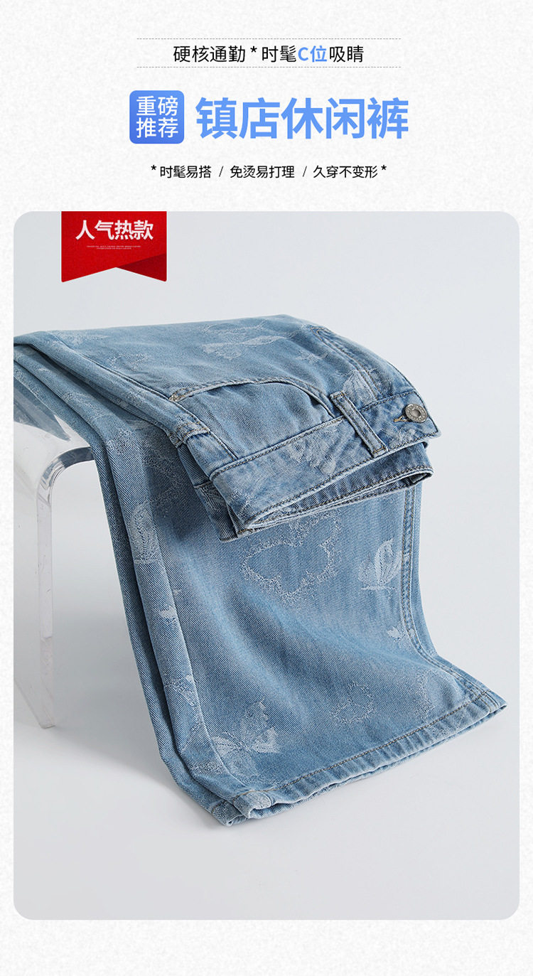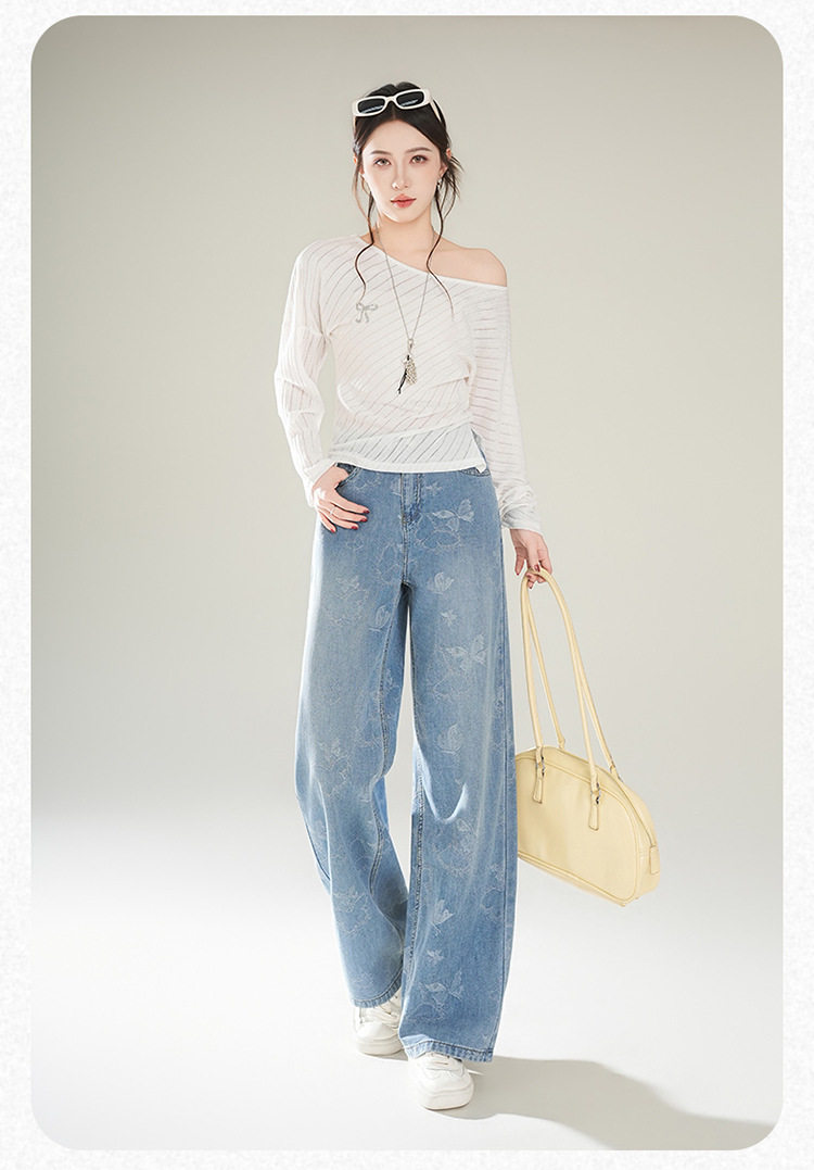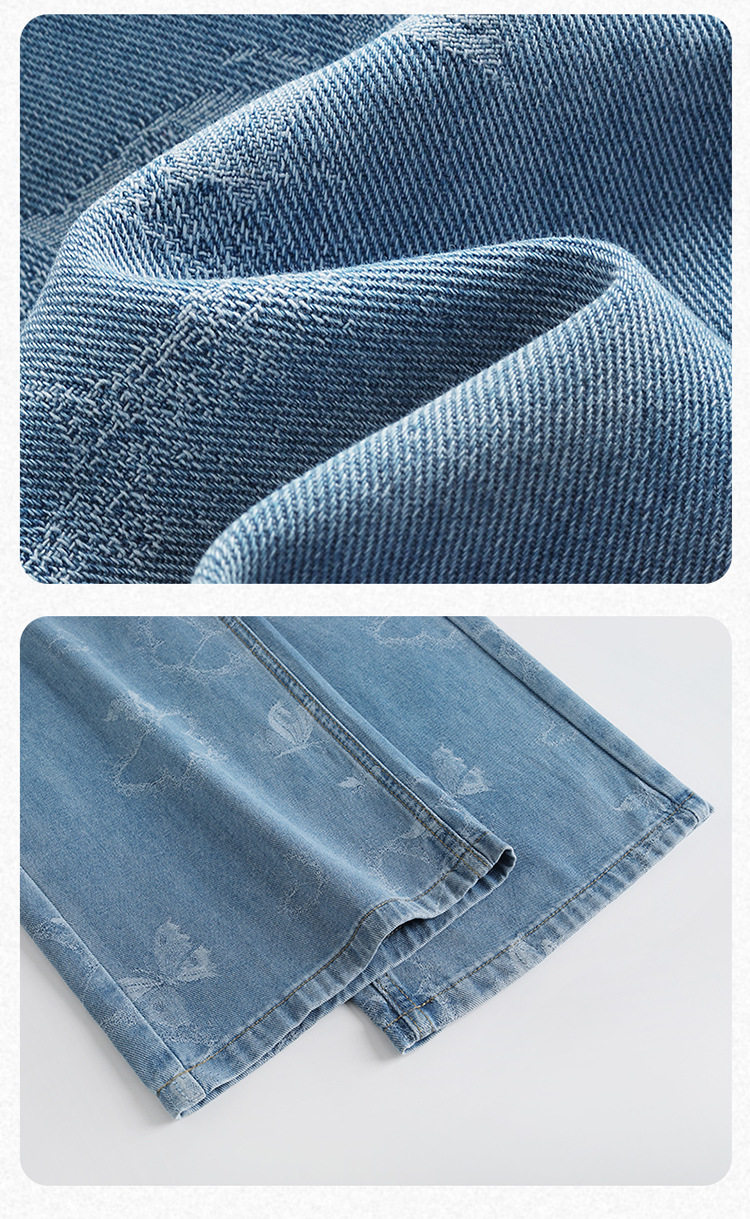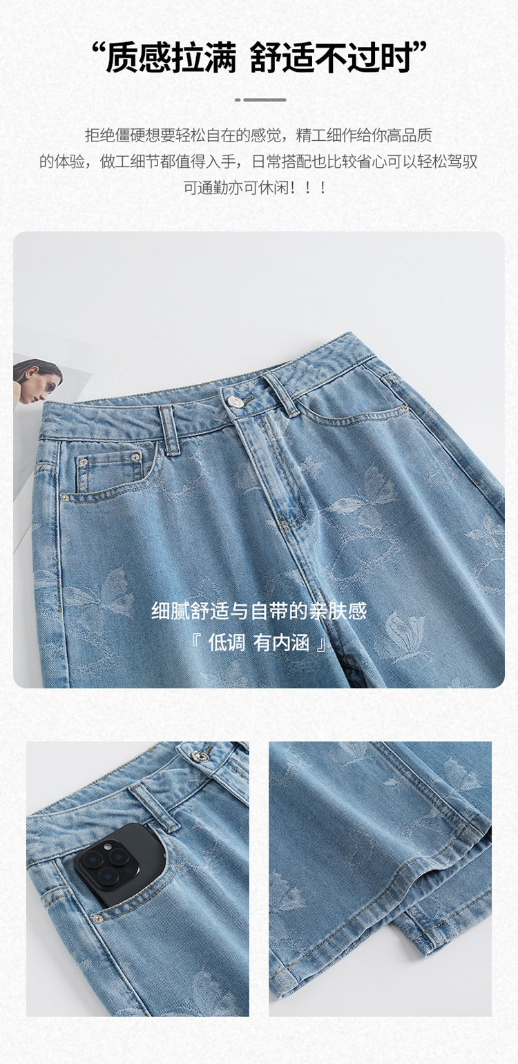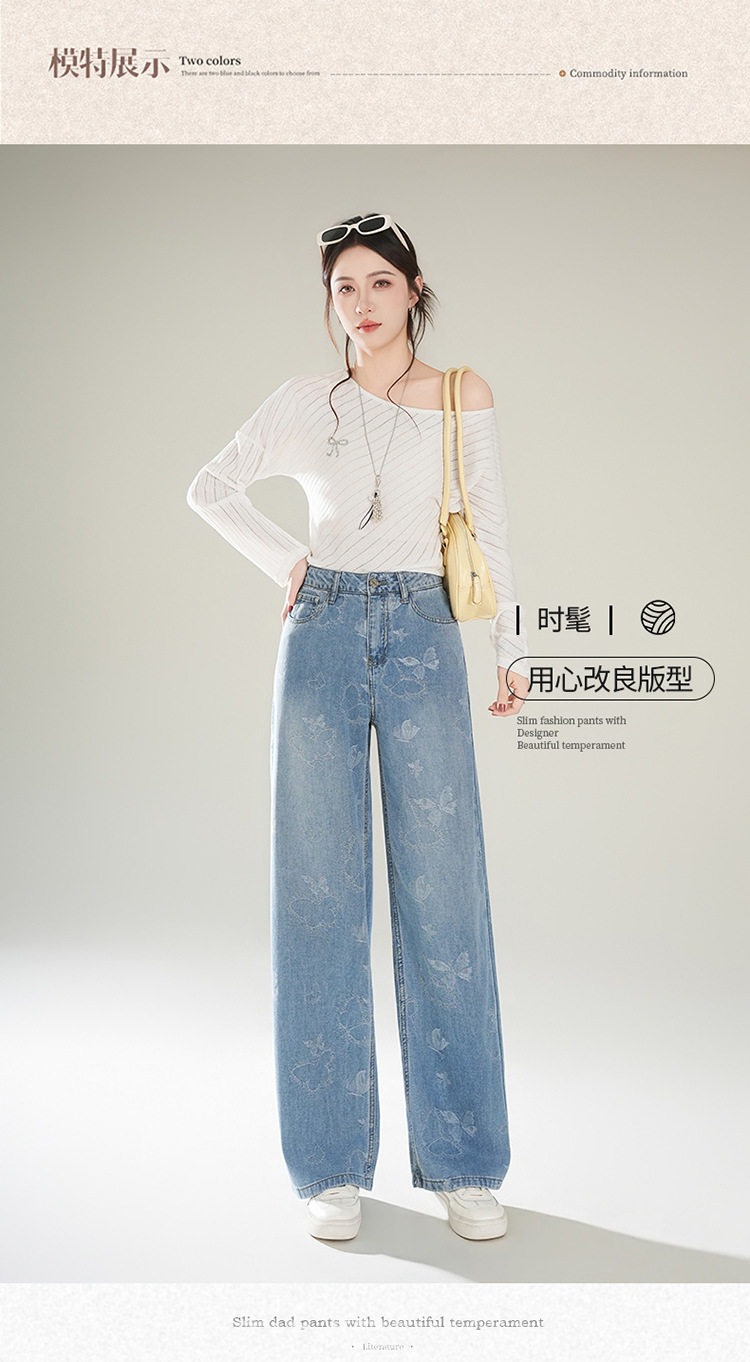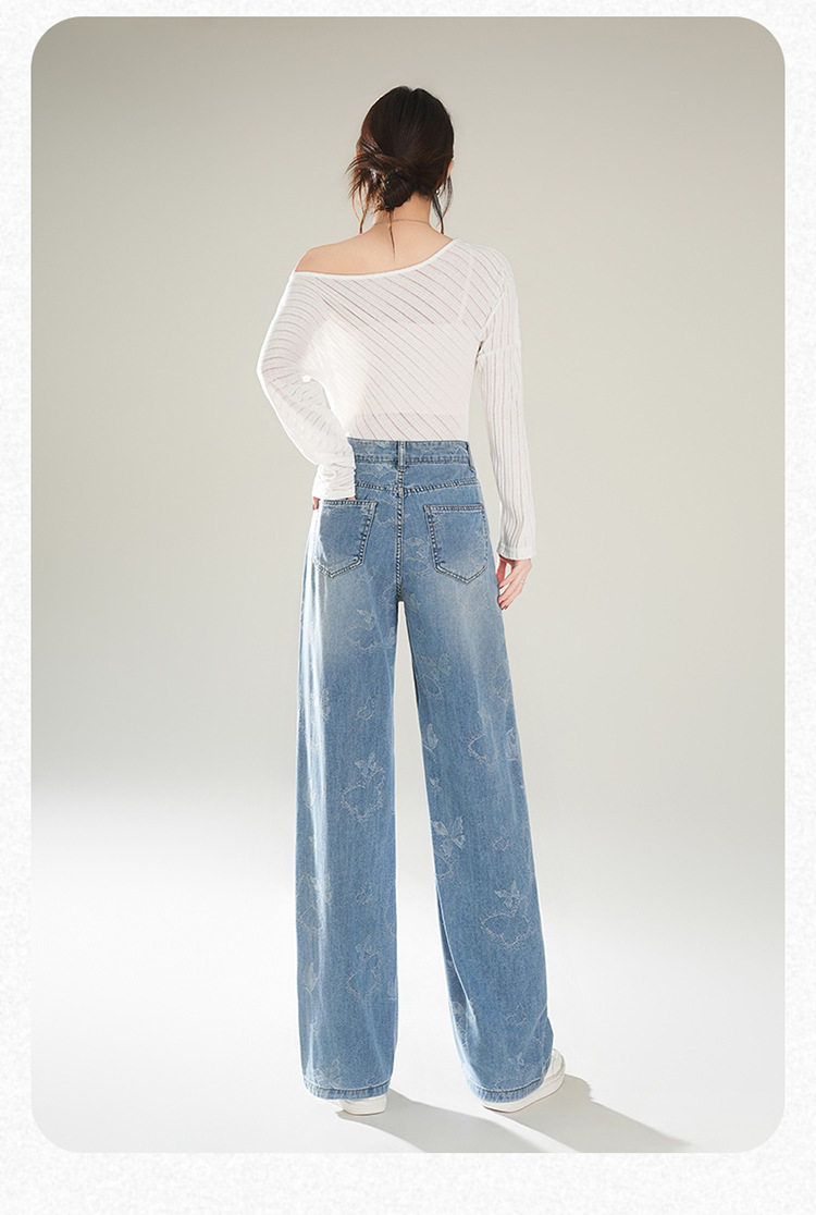 「自」全新升级【铂金会员174/天猫229/差价55】(11945)洛诗琳美式复古蓝色牛仔裤2026春季新款蝴蝶印花显瘦阔腿直筒裤
