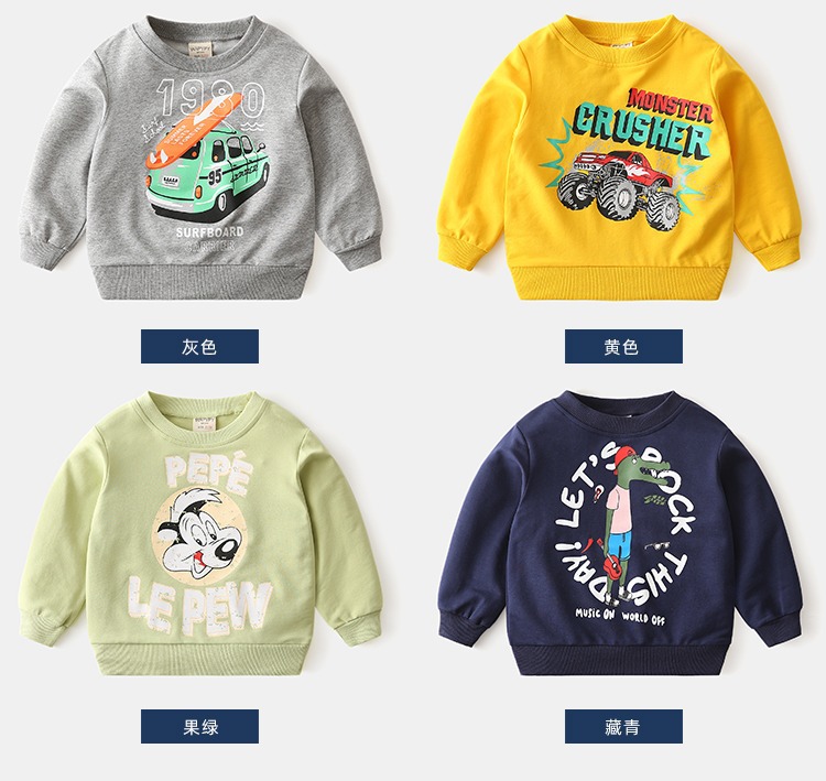 【时尚新品!潮流休闲】童装春季新款韩版儿童卫衣卡通男童套头衫宝宝上衣女童服装潮,大众简约的潮领,舒适版型。给宝宝带来舒适的感觉-QQ