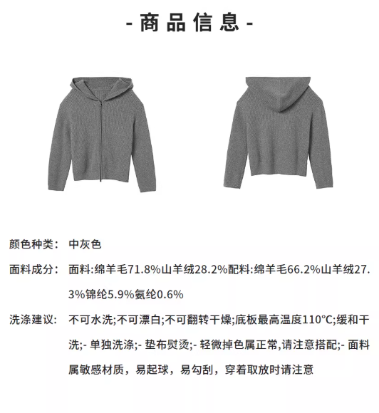 朗姿【 羊毛羊绒】连帽针织衫毛衣外套LSJH05KCD469