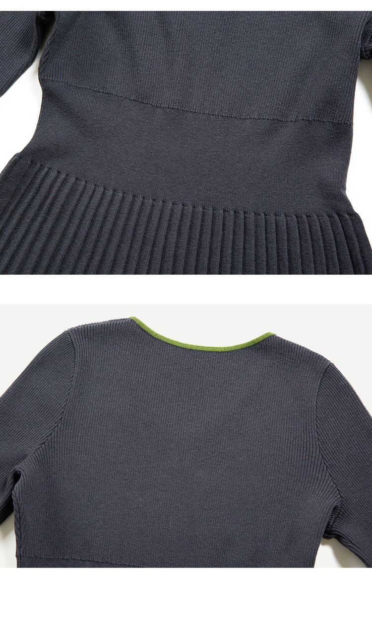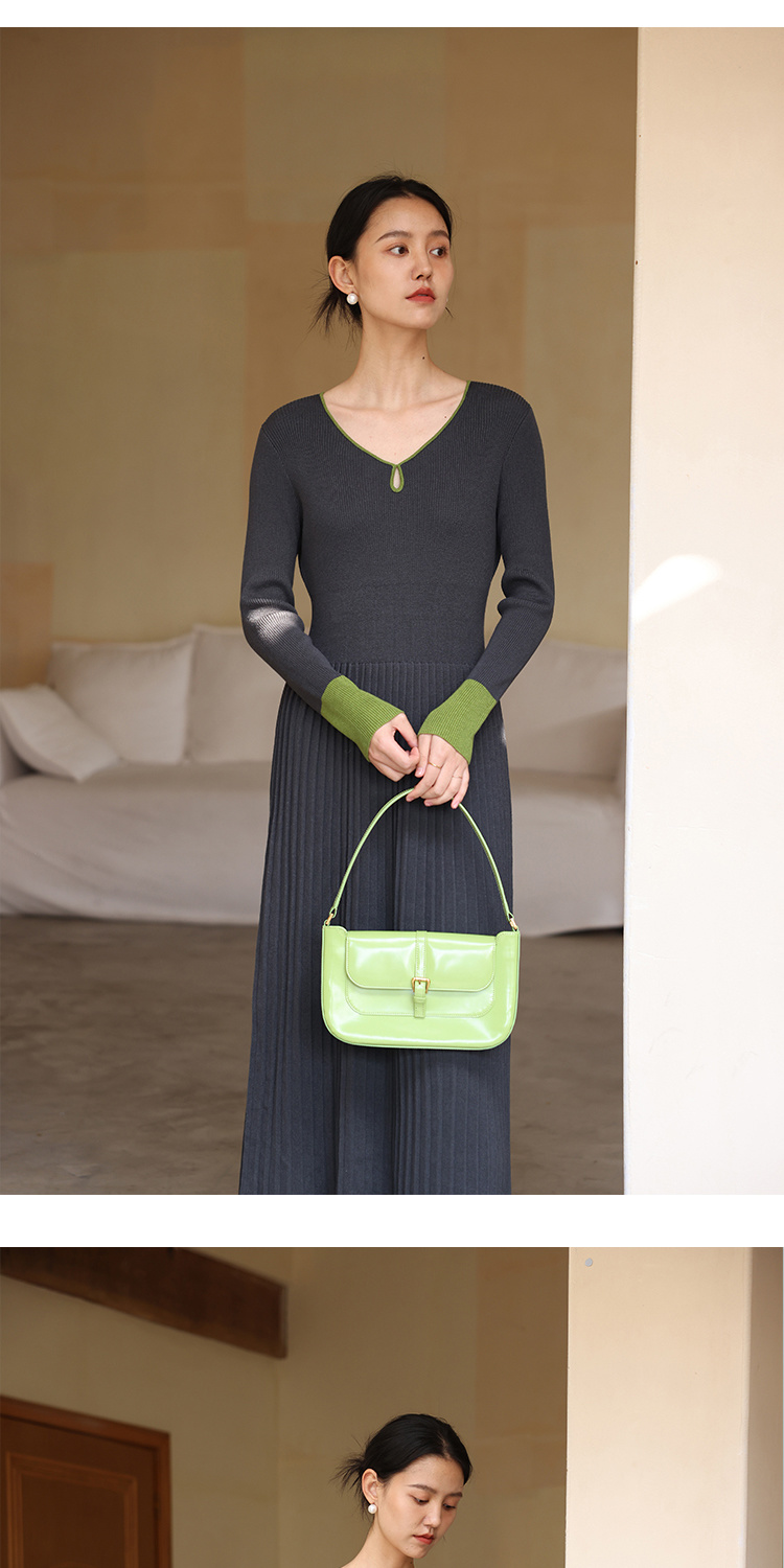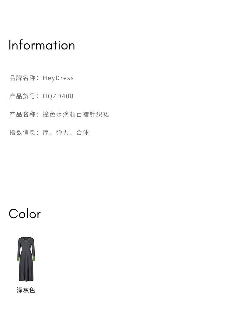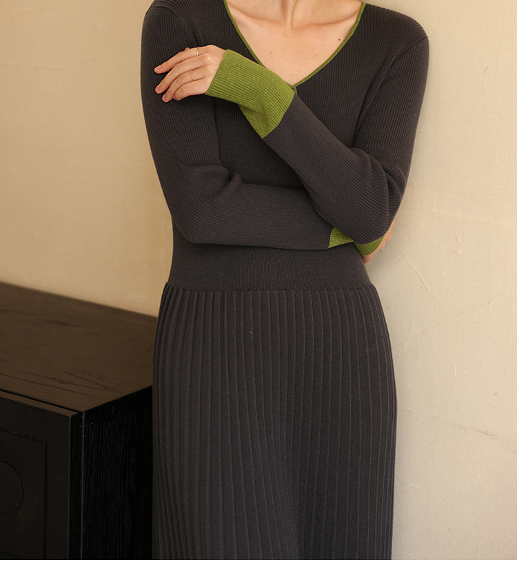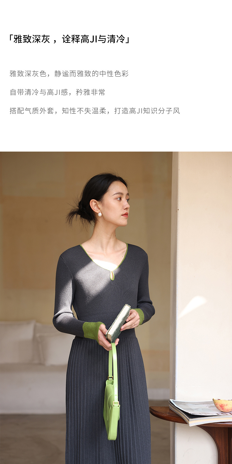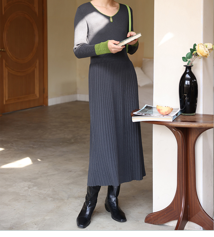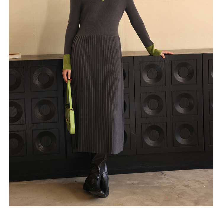 HeyDress水滴领针织羊毛连衣裙女秋冬法式复古收腰a字百褶长裙子