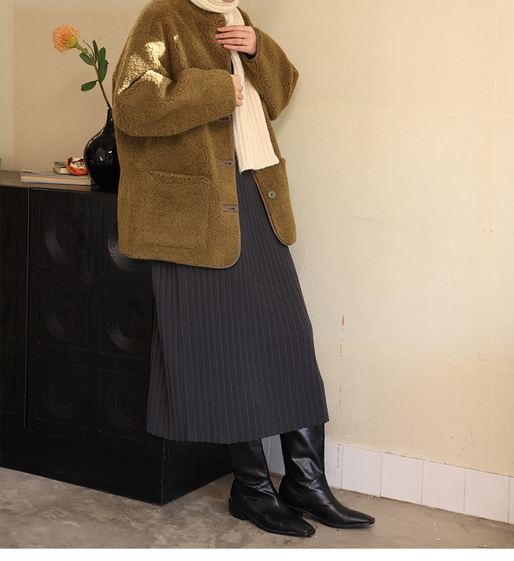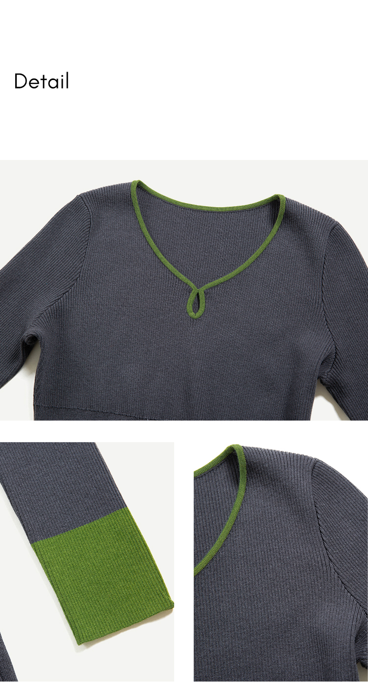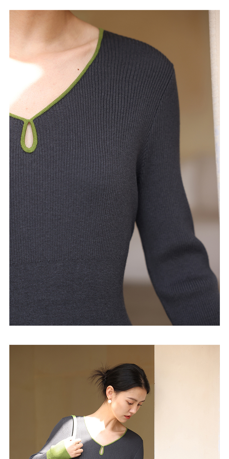 HeyDressV领开衩宽松羊毛毛衣/茧形针织松紧腰半裙